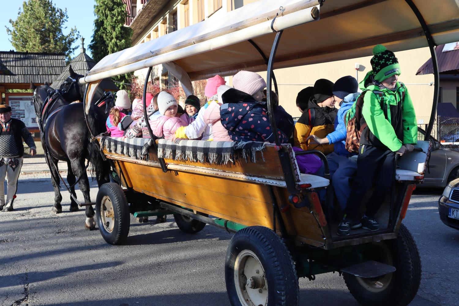 31 października 2025 roku pierwszoklasiści z Bukowiny Tatrzańskiej wyruszyli fasiągami na wyjątkową przejażdżkę po swojej miejscowości w ramach projektu „Tu uczymy się inaczej”.
