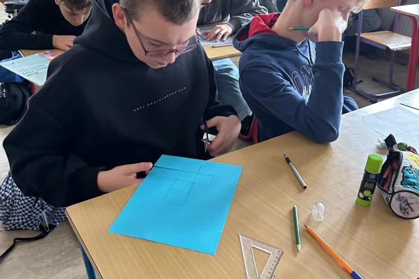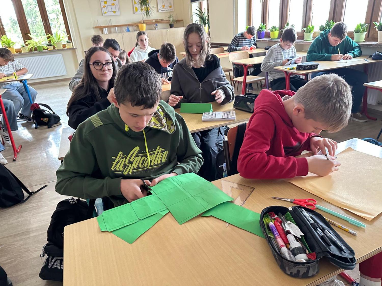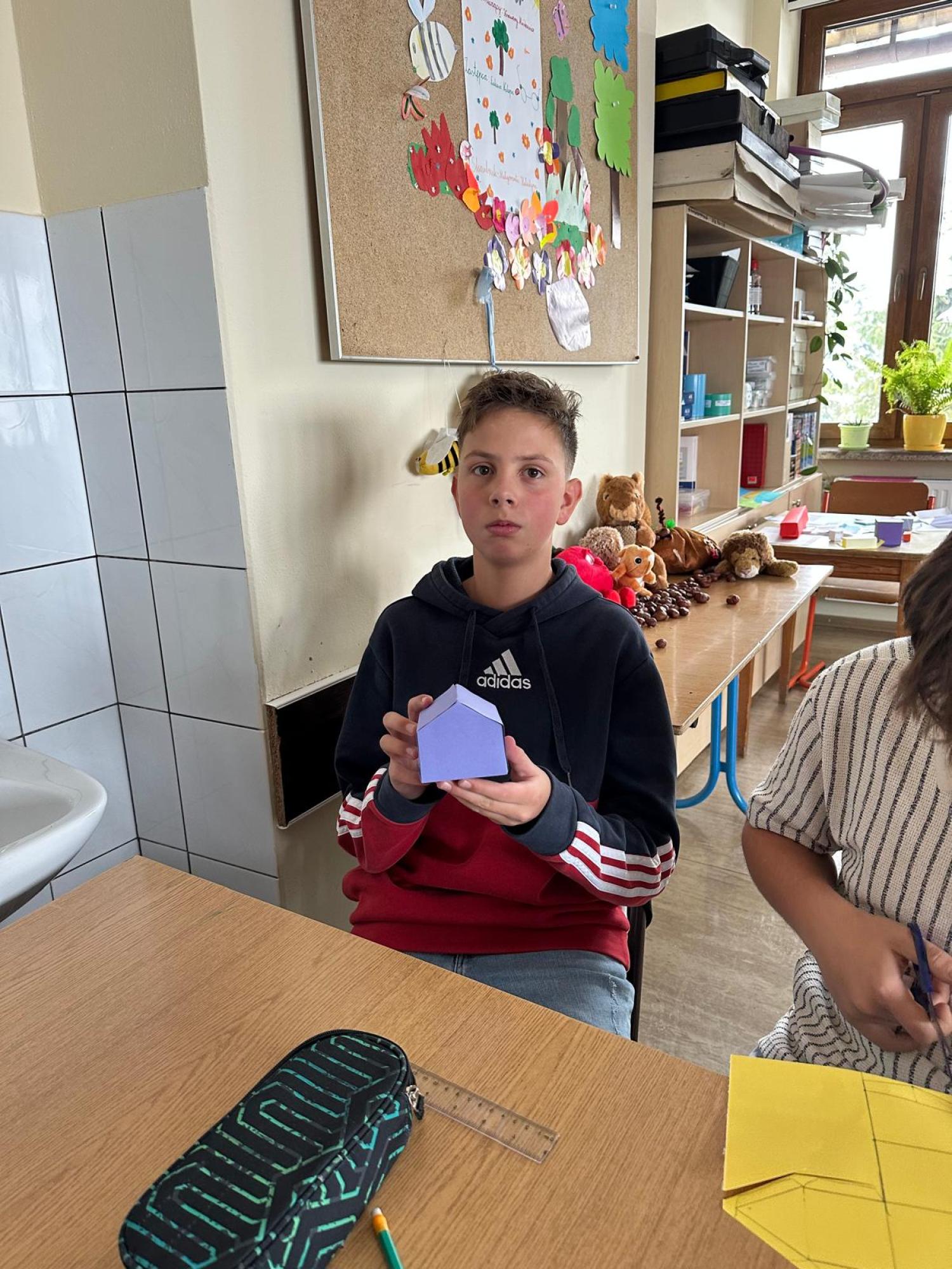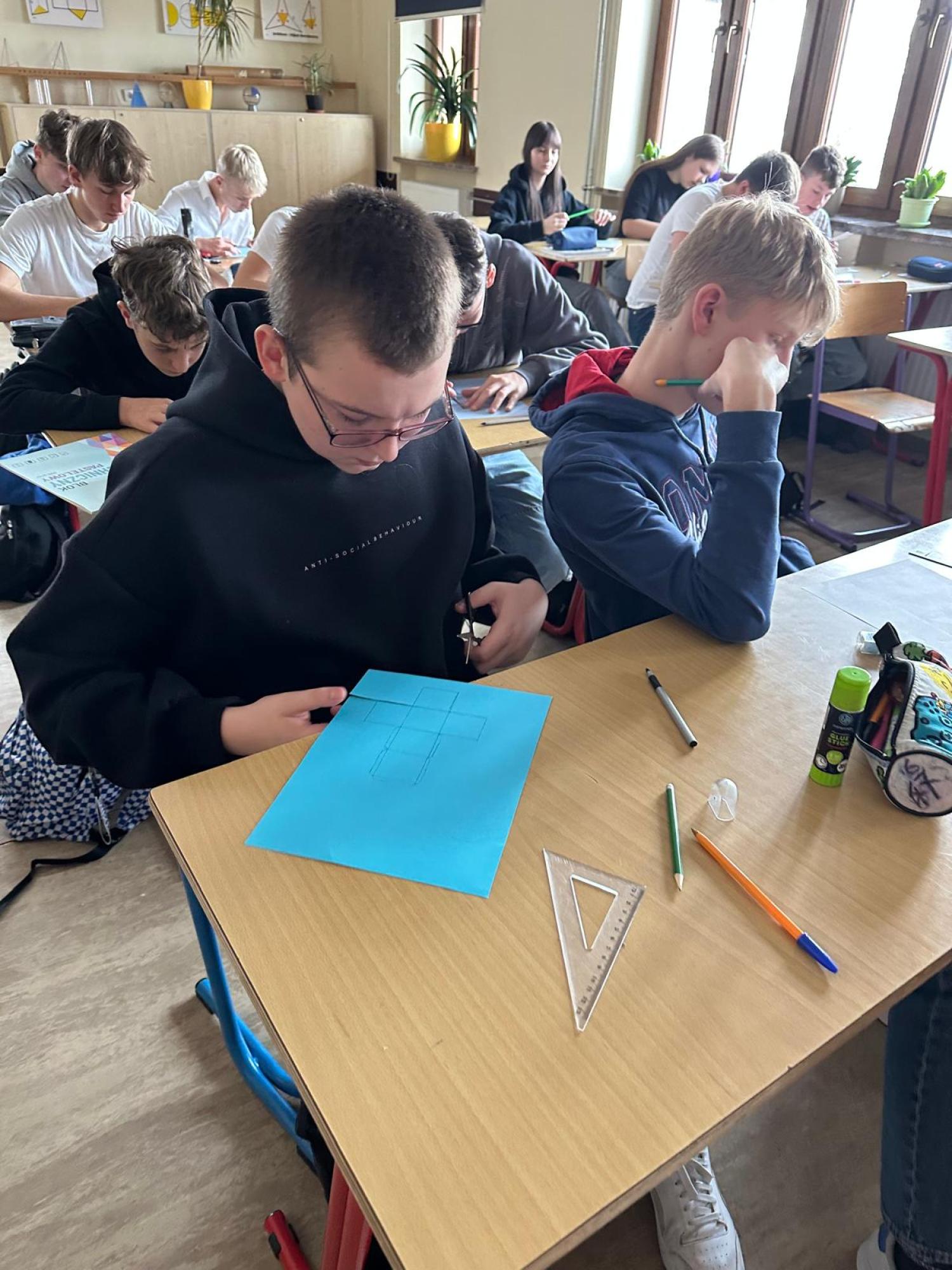 W tym tygodniu uczniowie klas ósmych wzięli udział w wyjątkowej lekcji matematyki, podczas której teoria spotkała się z praktyką. Tematem zajęć były graniastosłupy, jednak tym razem nie ograniczyliśmy się do rysowania brył w zeszycie – wspólnie stworzyliśmy „makietę miasta”, wykorzystując wiedzę o własnościach graniastosłupów w twórczy i praktyczny sposób.