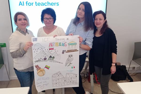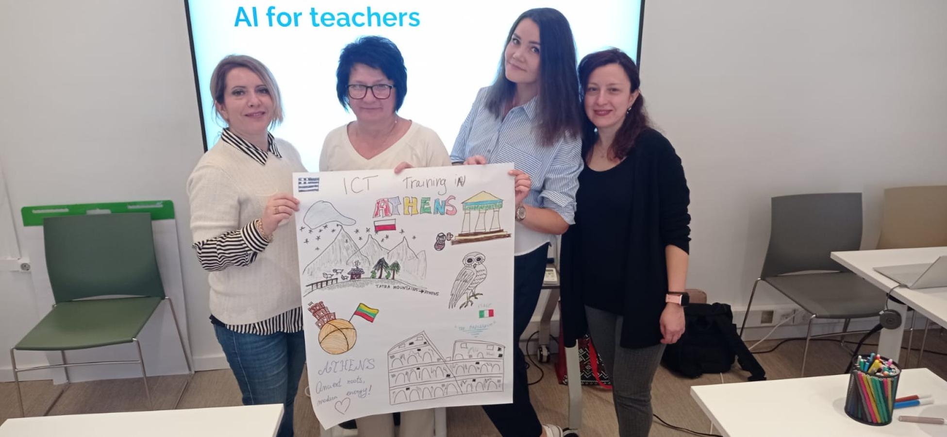 Szkolenie odbywało się w Atenach i obejmowało cykl zajęć poświęconych zastosowaniu technologii informacyjno-komunikacyjnych oraz narzędzi opartych na sztucznej inteligencji w procesie nauczania. Program miał charakter praktyczny – uczestniczyłyśmy w warsztatach, podczas których tworzyłyśmy materiały edukacyjne, projektowałyśmy gry dydaktyczne, przygotowywałyśmy interaktywne prezentacje oraz poznawałyśmy narzędzia do oceniania w czasie rzeczywistym.