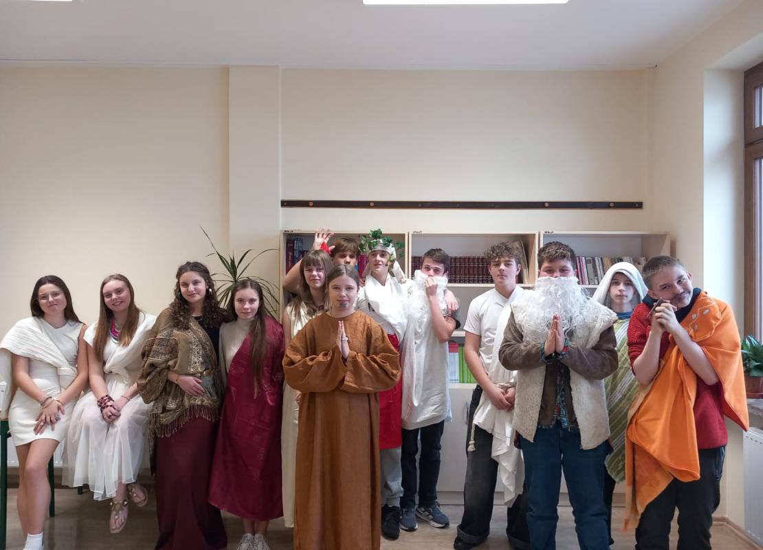 W listopadzie uczniowie klasy VIIIa podjęli się ciekawego i angażującego projektu edukacyjnego pt. „Wśród bohaterów Quo vadis”, realizowanego podczas lekcji języka polskiego. Celem projektu było pogłębienie znajomości lektury Henryka Sienkiewicza poprzez bezpośrednie wcielenie się w role wybranych postaci.