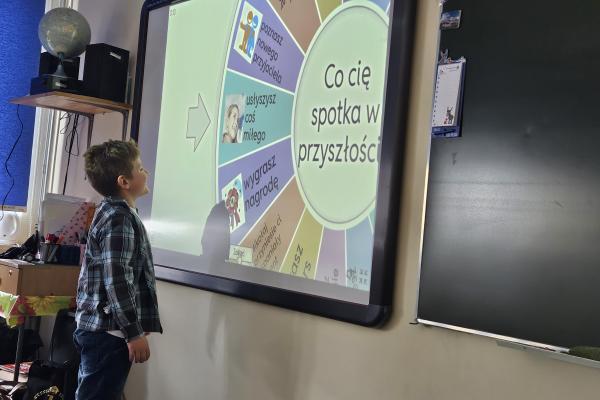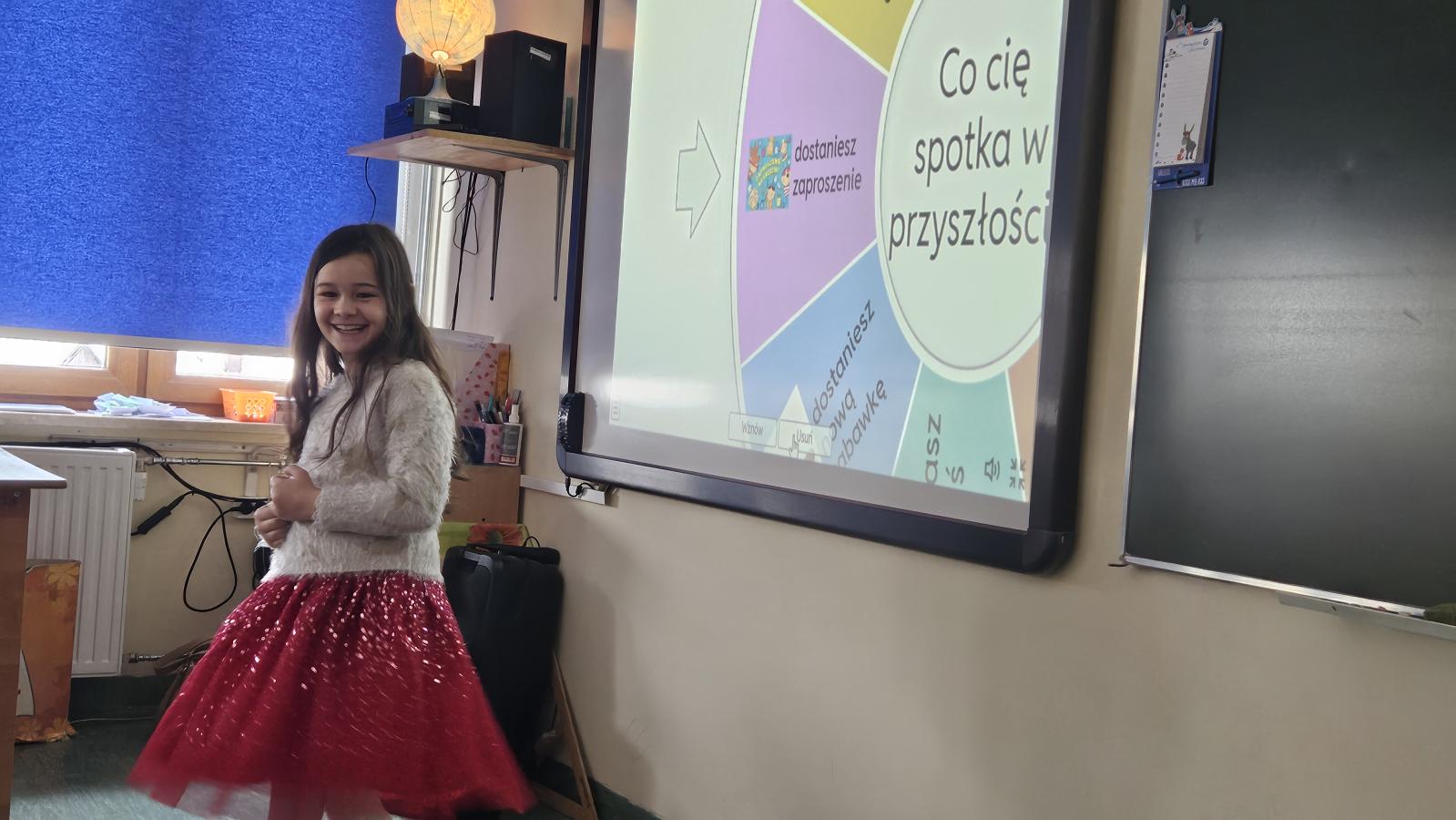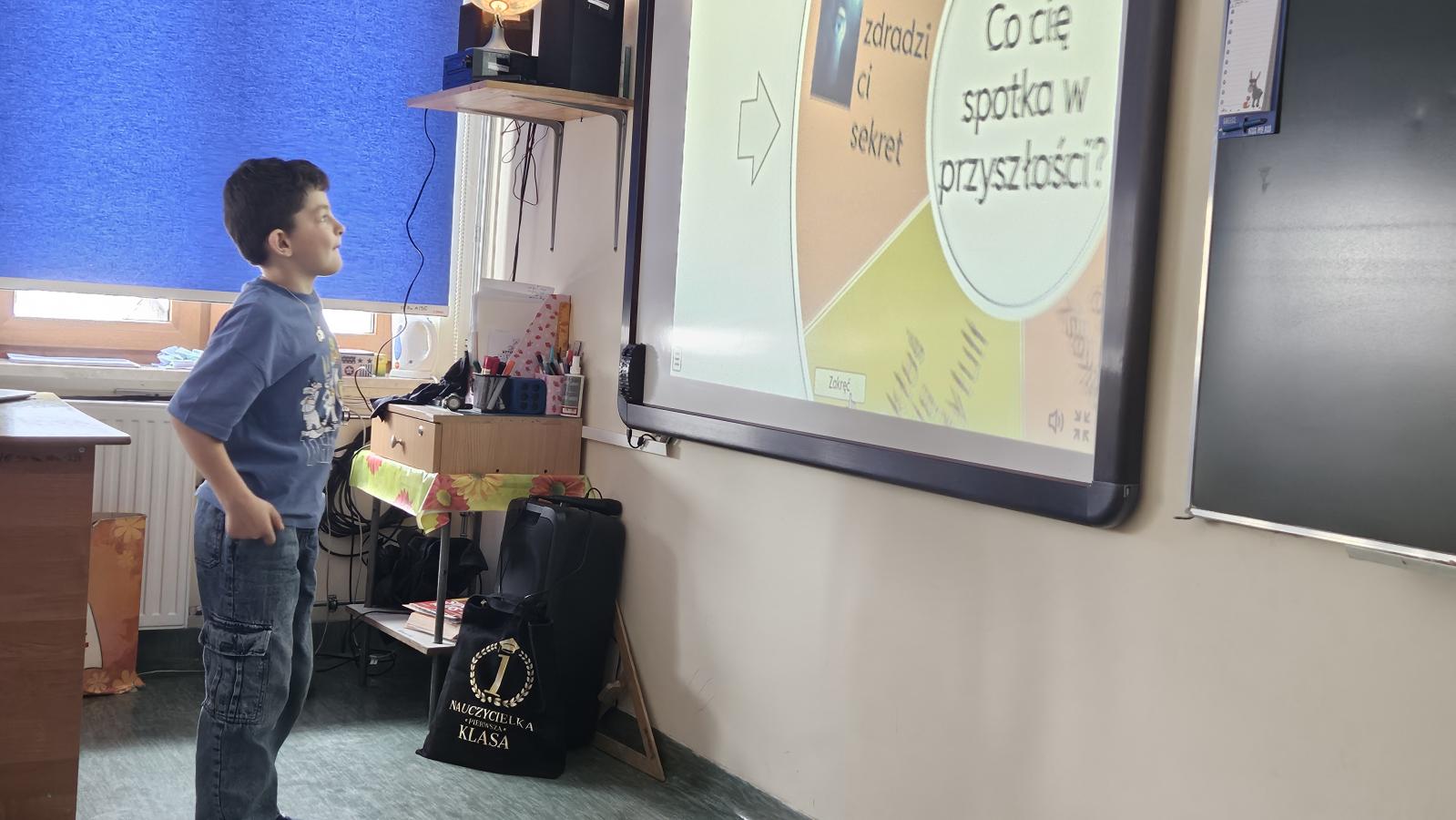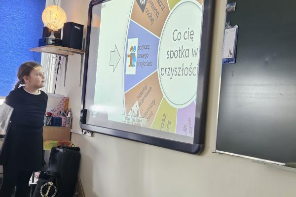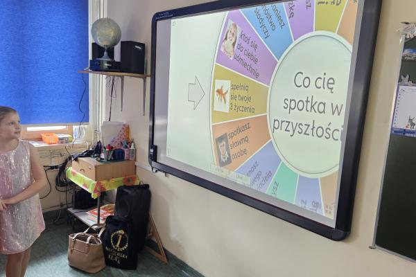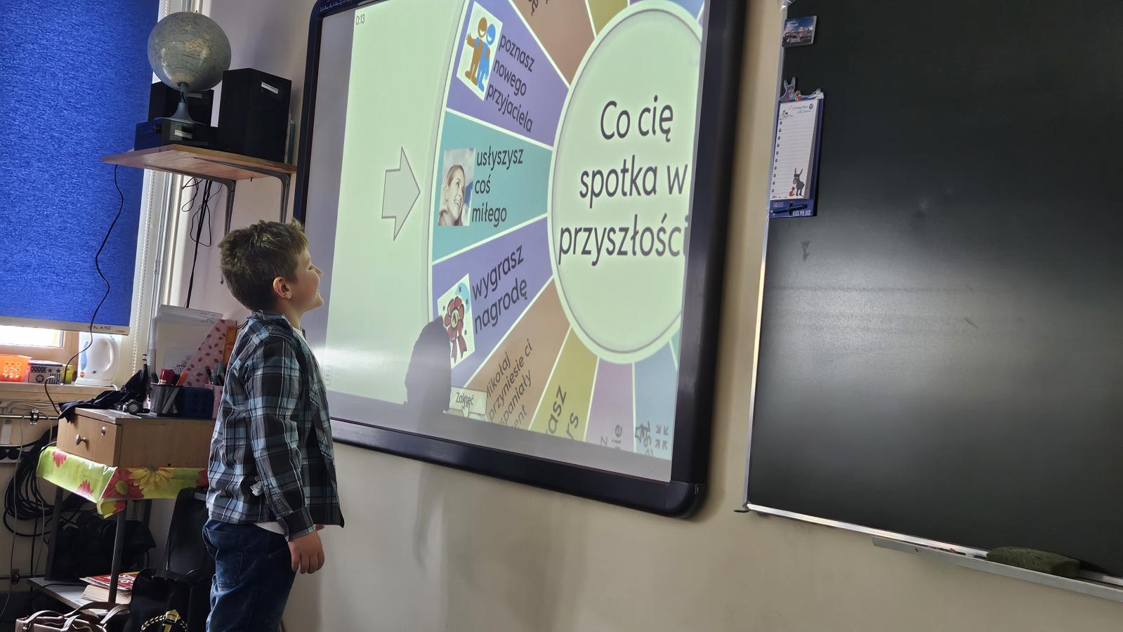 W klasach odbyła się także część typowo andrzejkowa – wróżby, które cieszyły się ogromnym zainteresowaniem uczniów. Dzieci mogły sprawdzić m.in. kim będą w przyszłości, poznać imię przyszłej sympatii, wziąć udział w zabawie „Koło fortuny” czy tradycyjnej wróżbie z butów. Wróżby przeprowadzono zarówno w sposób tradycyjny, jak i wirtualny, z wykorzystaniem tablicy interaktywnej, co połączyło szkolne zwyczaje z nowoczesnymi technologiami i dostarczyło dzieciom dodatkowej frajdy.