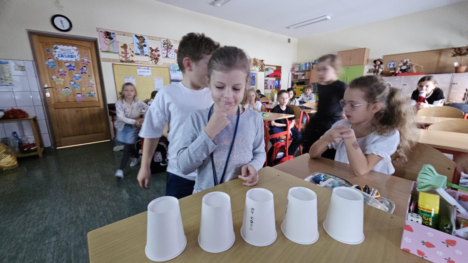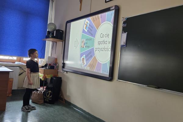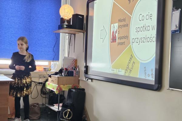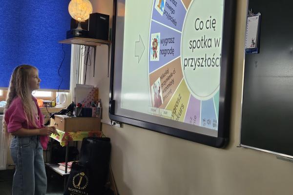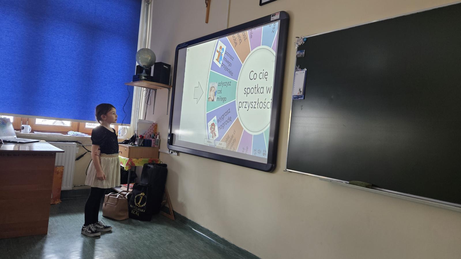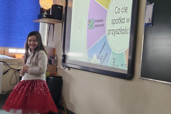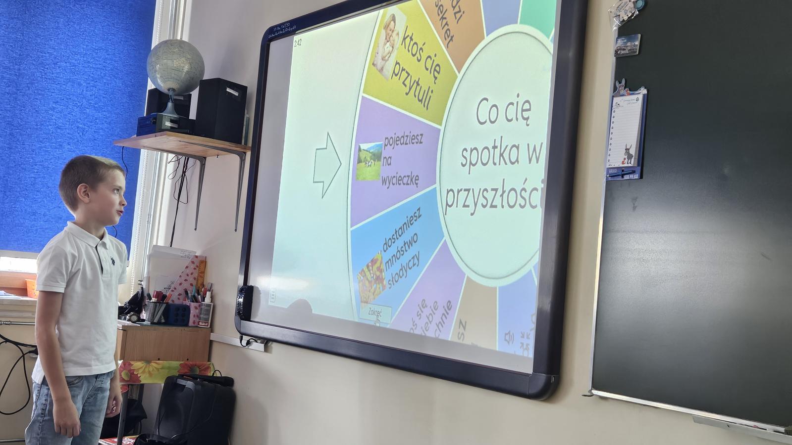 W klasach odbyła się także część typowo andrzejkowa – wróżby, które cieszyły się ogromnym zainteresowaniem uczniów. Dzieci mogły sprawdzić m.in. kim będą w przyszłości, poznać imię przyszłej sympatii, wziąć udział w zabawie „Koło fortuny” czy tradycyjnej wróżbie z butów. Wróżby przeprowadzono zarówno w sposób tradycyjny, jak i wirtualny, z wykorzystaniem tablicy interaktywnej, co połączyło szkolne zwyczaje z nowoczesnymi technologiami i dostarczyło dzieciom dodatkowej frajdy.