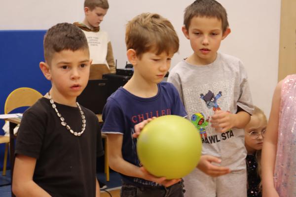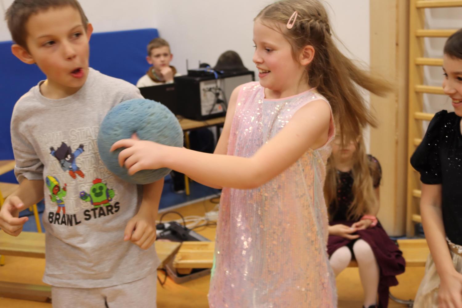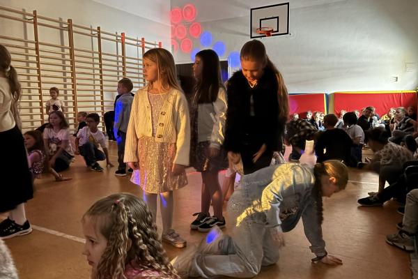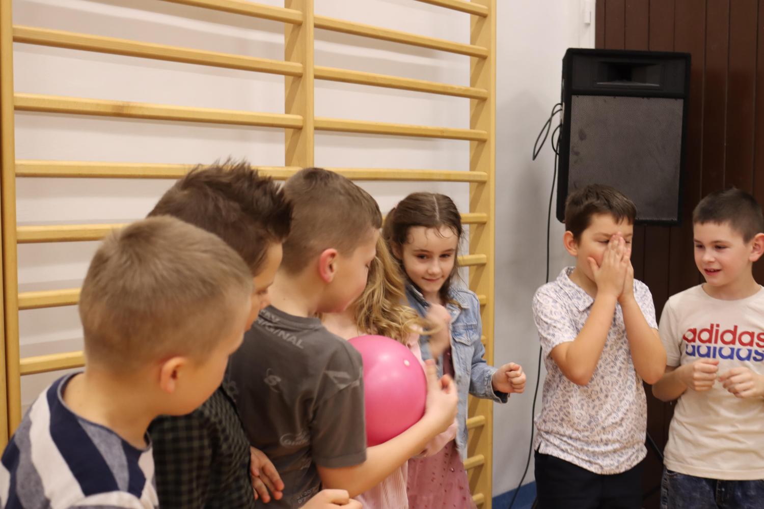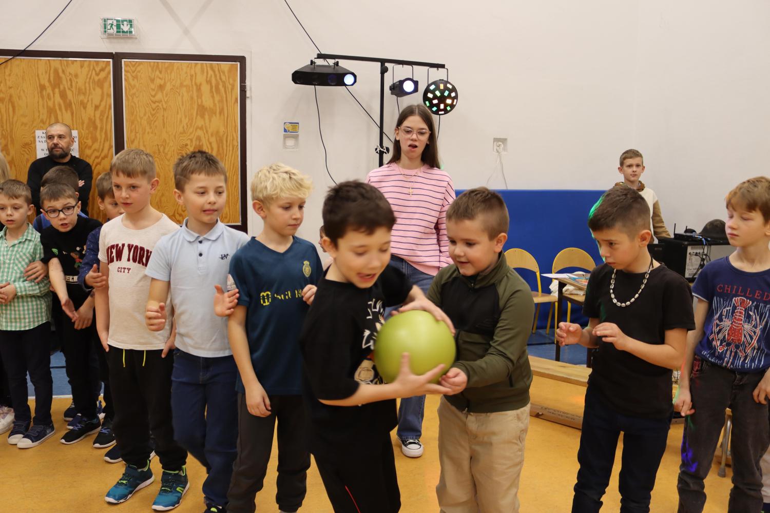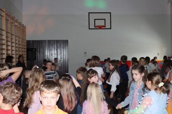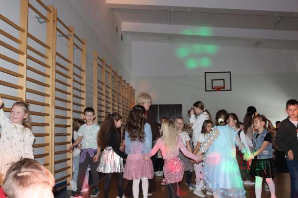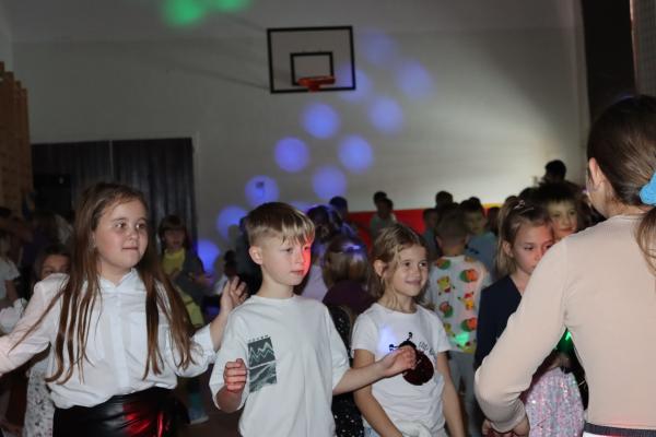 O wyjątkową oprawę muzyczną zadbali chłopcy z szkolnego kółka DJ, którzy wcześniej zebrali od uczniów propozycje ulubionych utworów. Dzięki temu na parkiecie nie brakowało energii, a najmłodsi chętnie uczestniczyli w zabawach tanecznych. Starsi uczniowie, pod przewodnictwem przewodniczącego Samorządu Uczniowskiego, przygotowali dla młodszych kolegów zestaw atrakcji, m.in. taniec „Podaj piłkę” oraz zadania zespołowe wykonywane w trzyosobowych grupach.