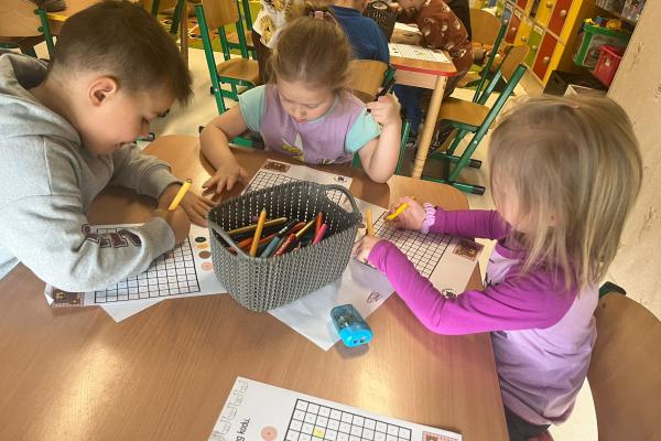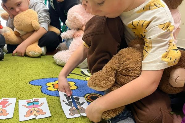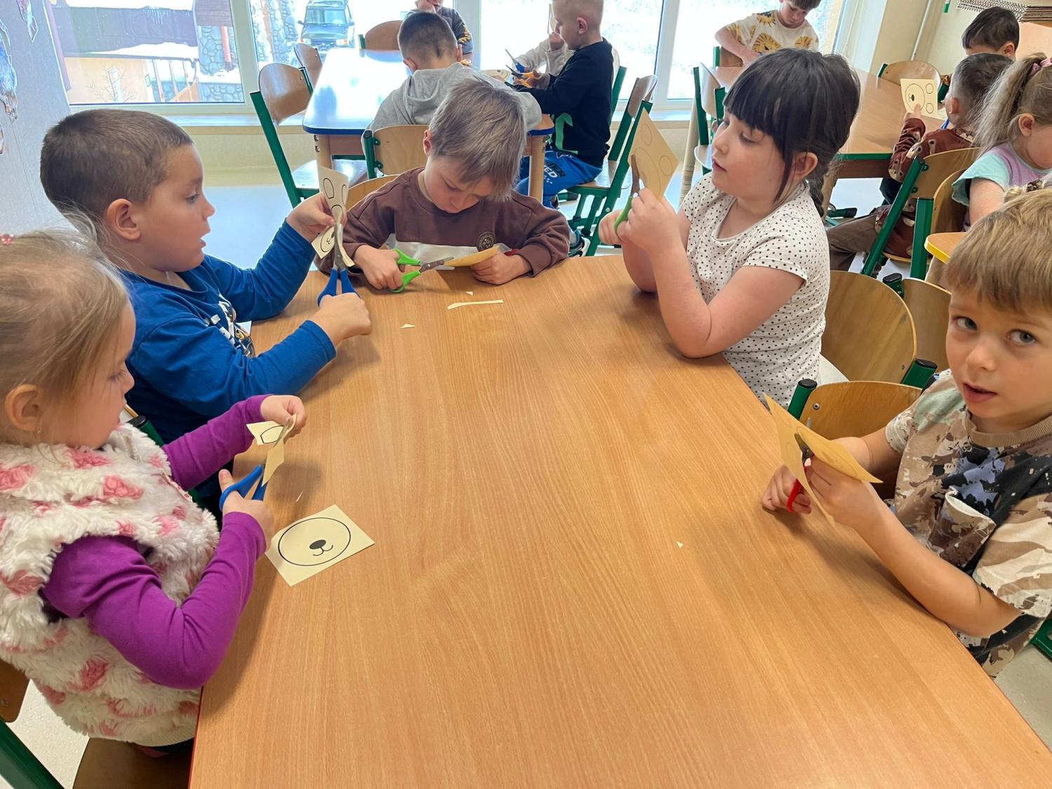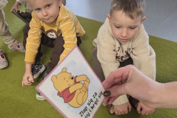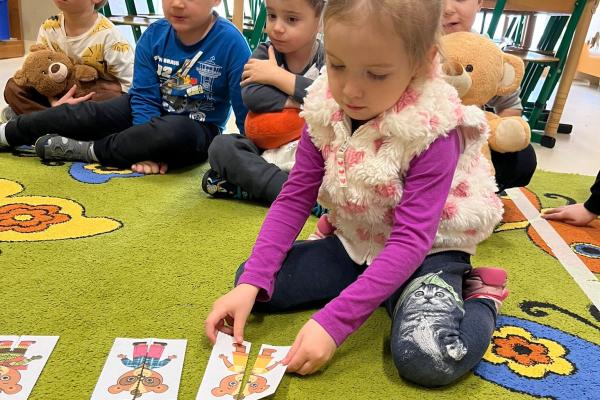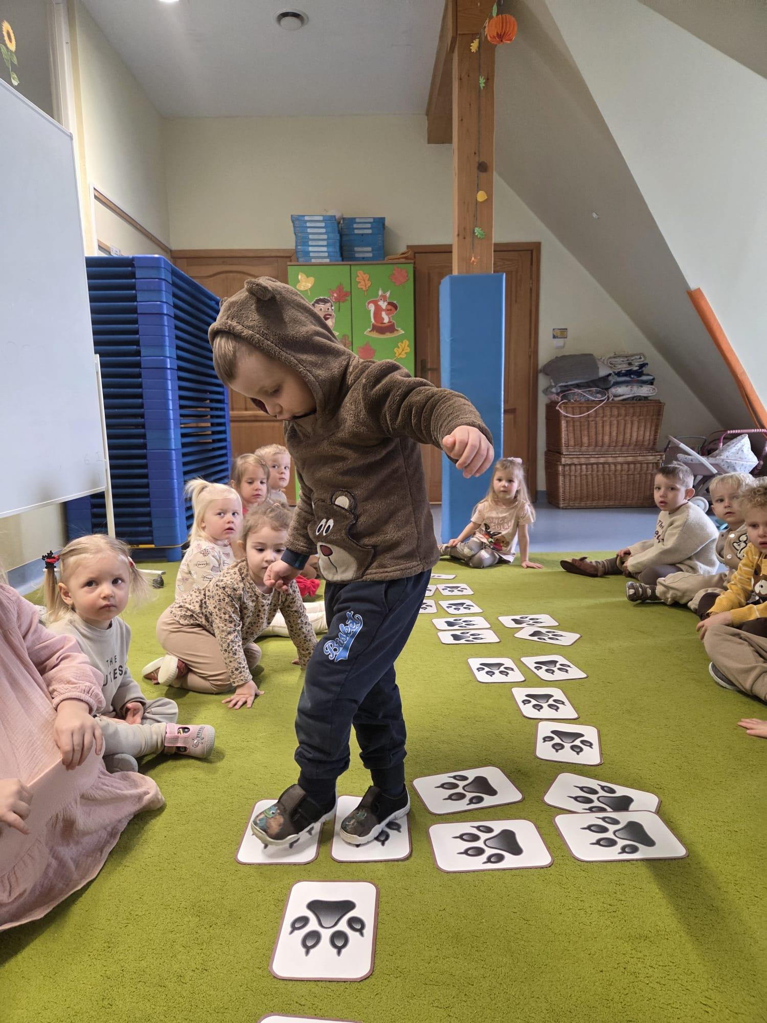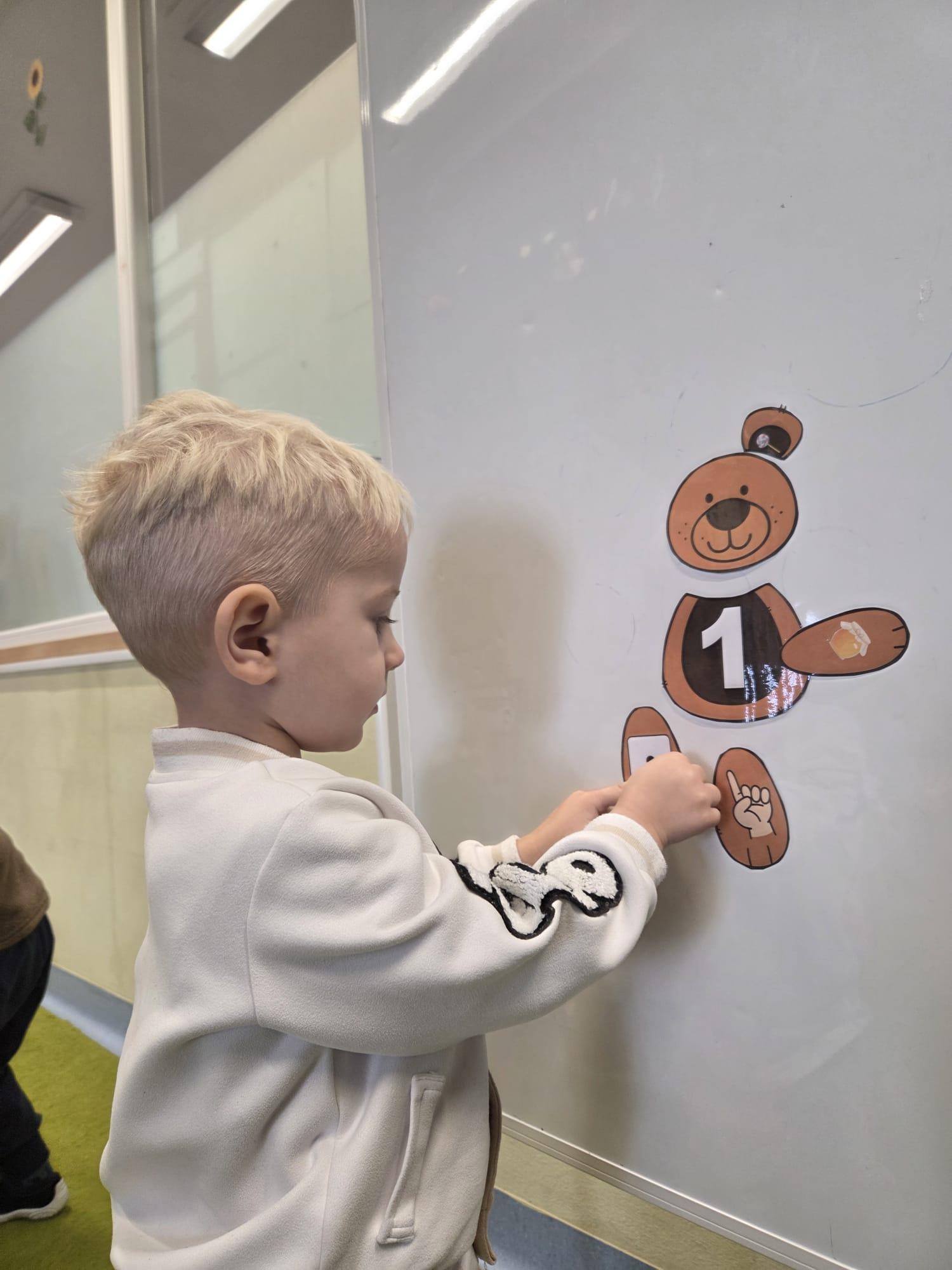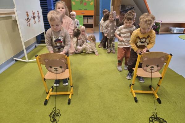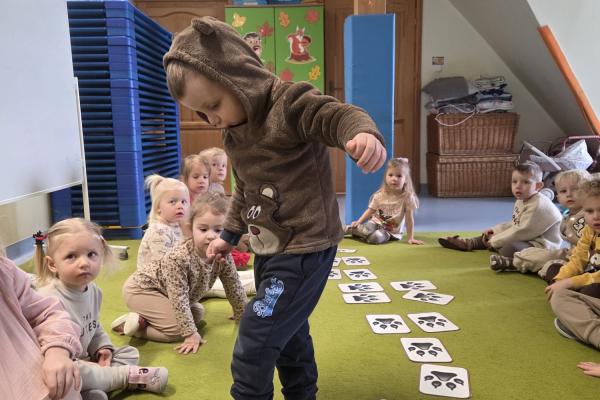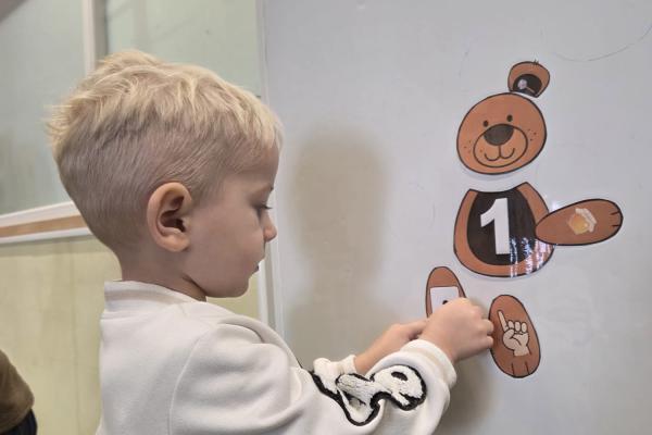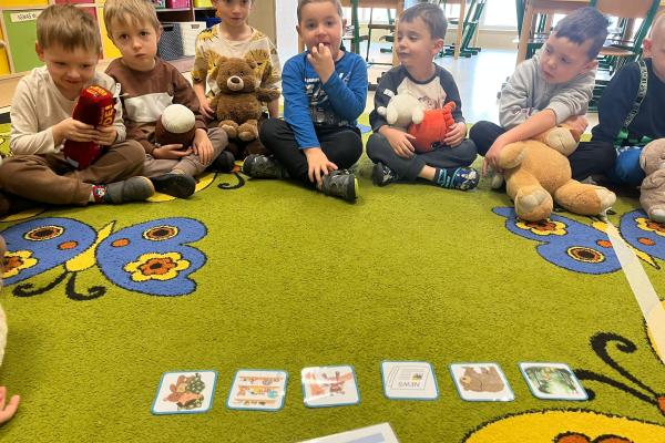 Przedszkolaki brały udział w zabawach ruchowych, chodziły po tropach misia, ćwiczyły zdolności manualne, słuchały tekstów literackich, uczestniczyły w gimnastyce buzi i języka oraz bawiły się w kodowanie.