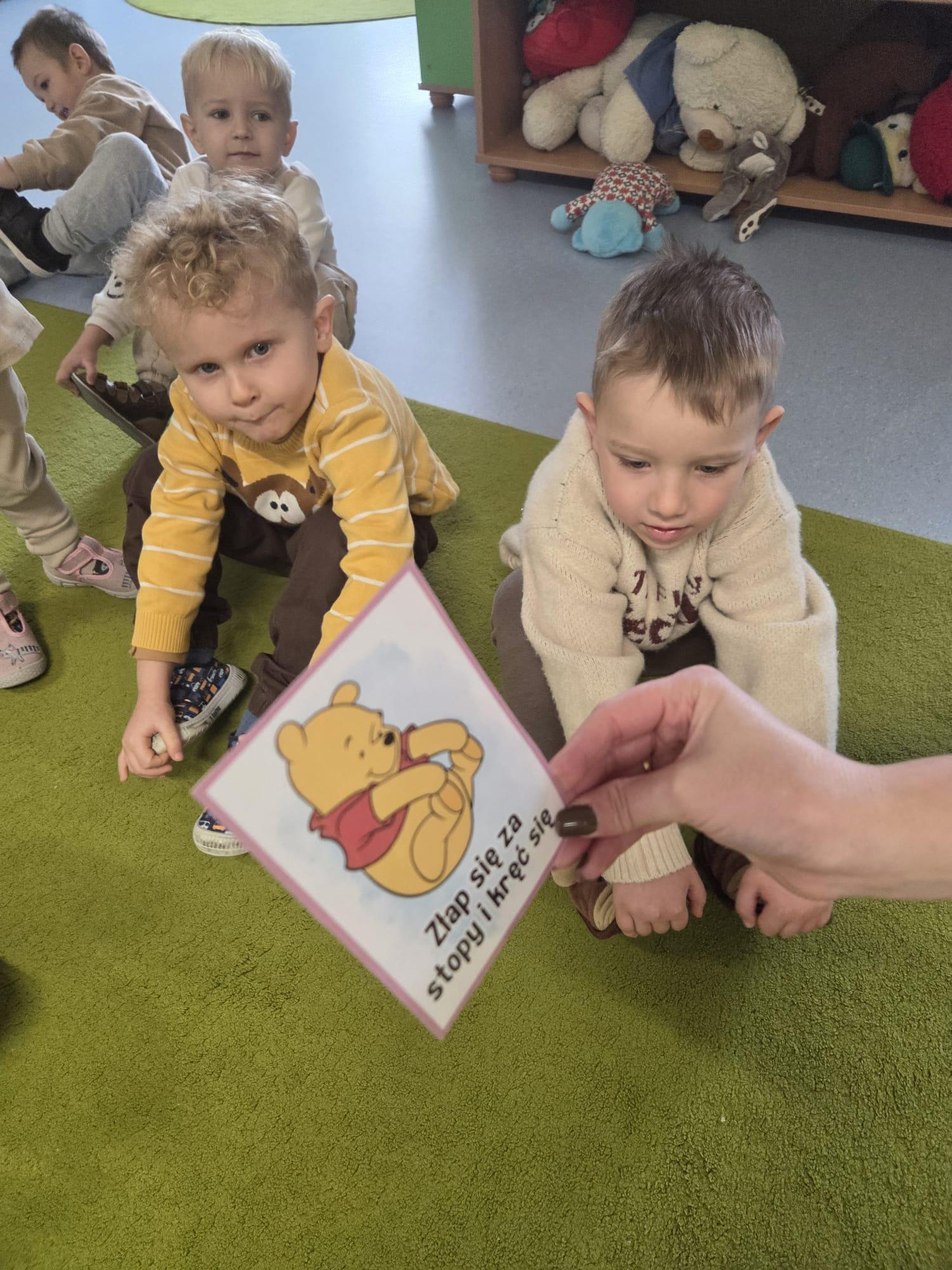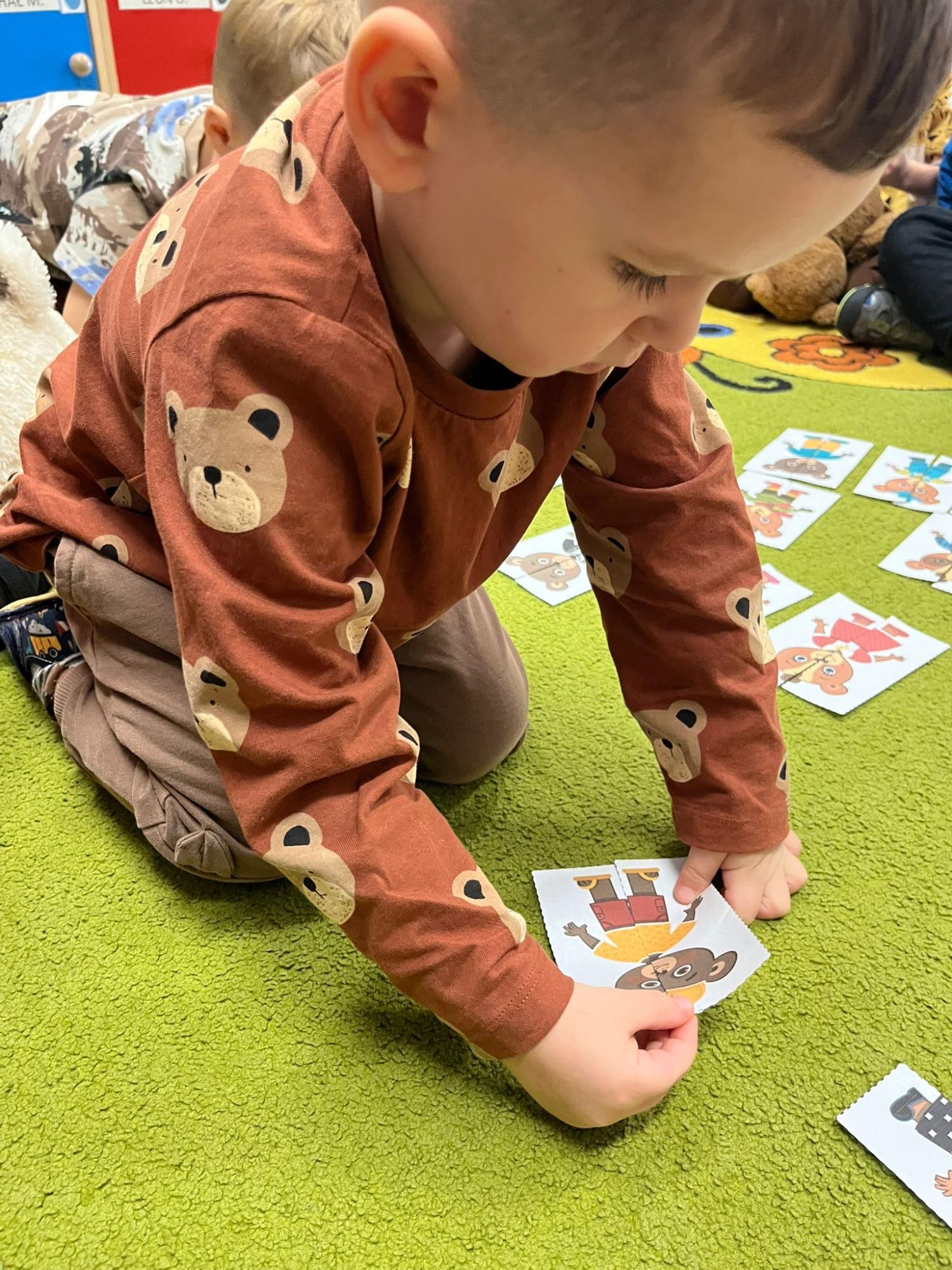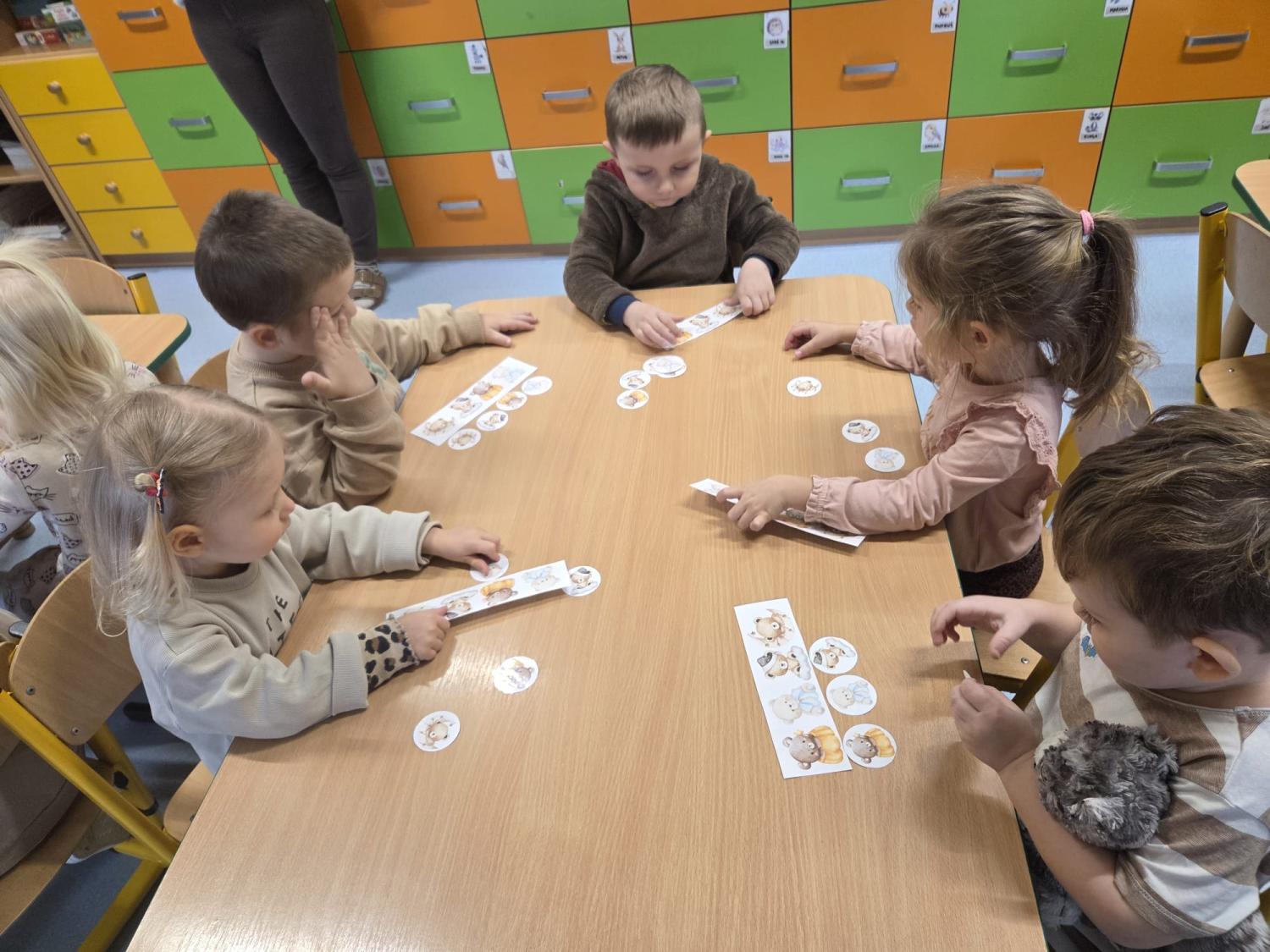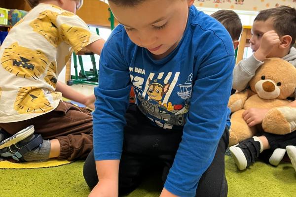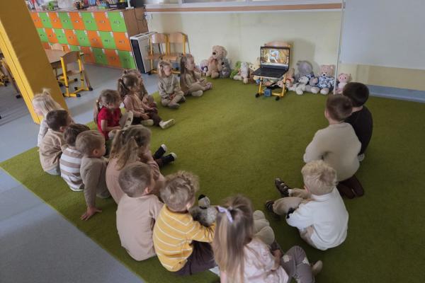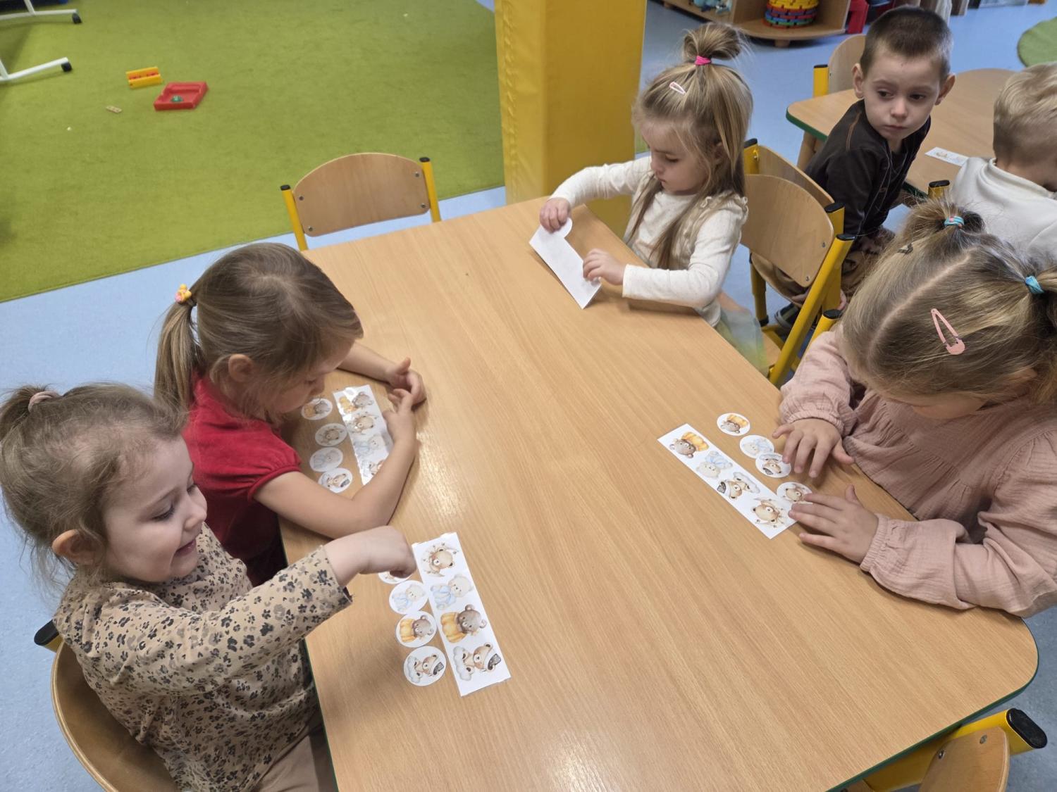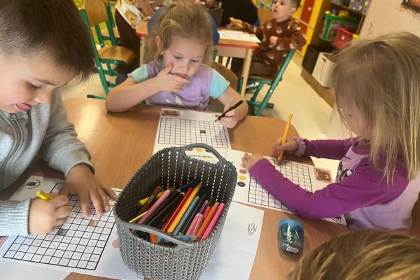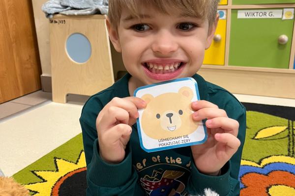 Przedszkolaki brały udział w zabawach ruchowych, chodziły po tropach misia, ćwiczyły zdolności manualne, słuchały tekstów literackich, uczestniczyły w gimnastyce buzi i języka oraz bawiły się w kodowanie.