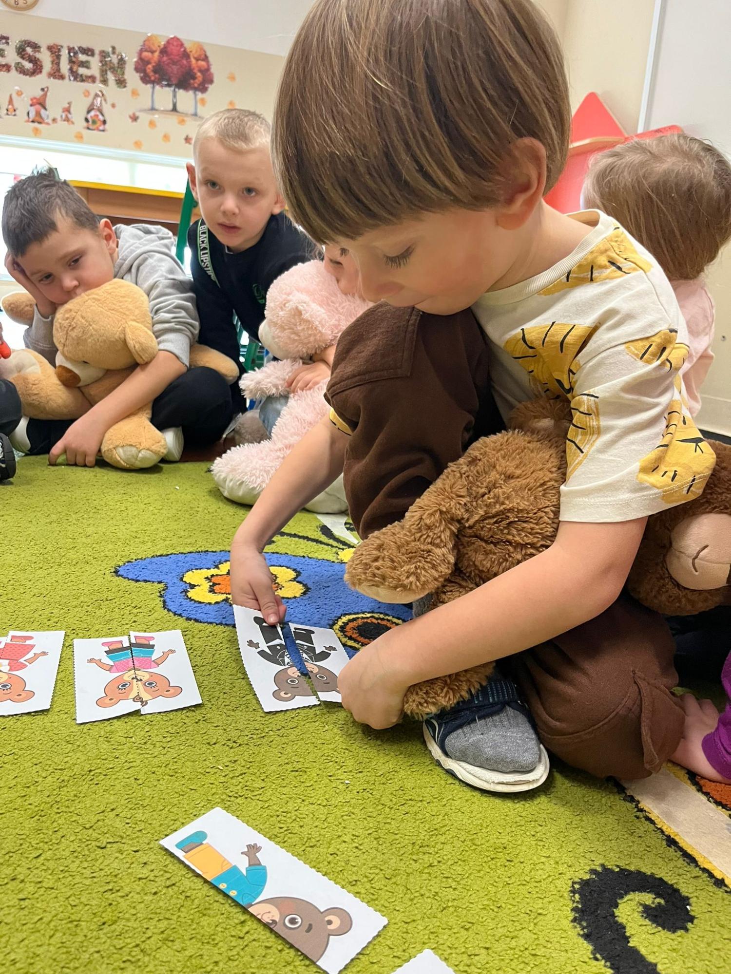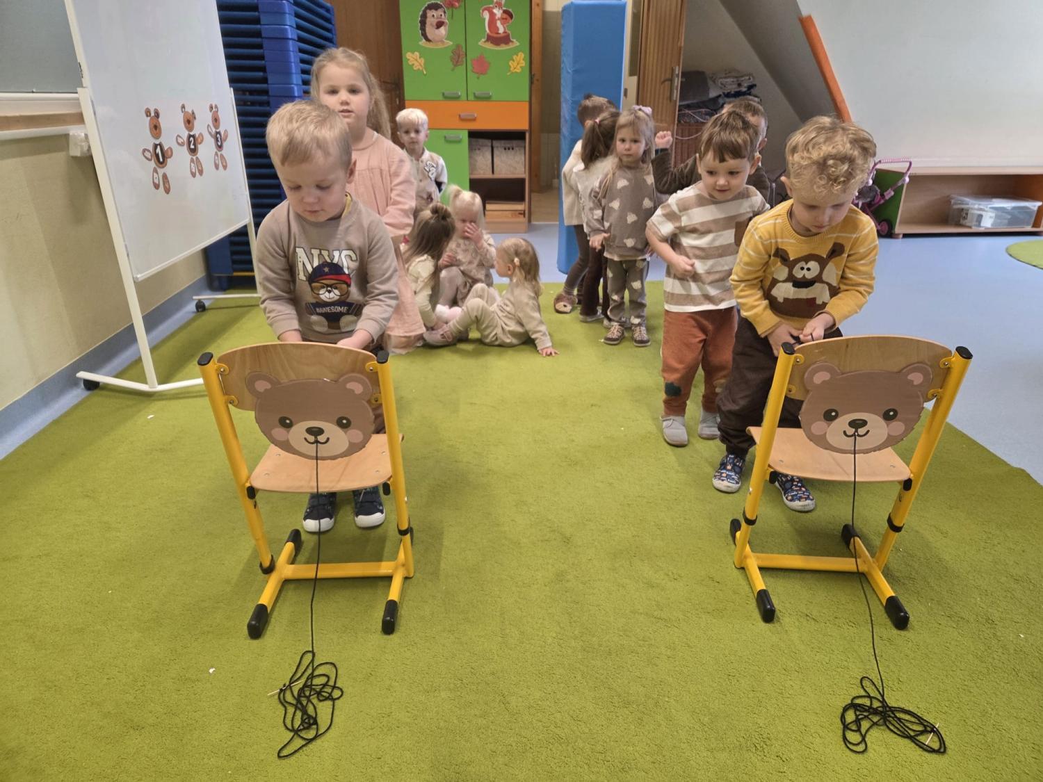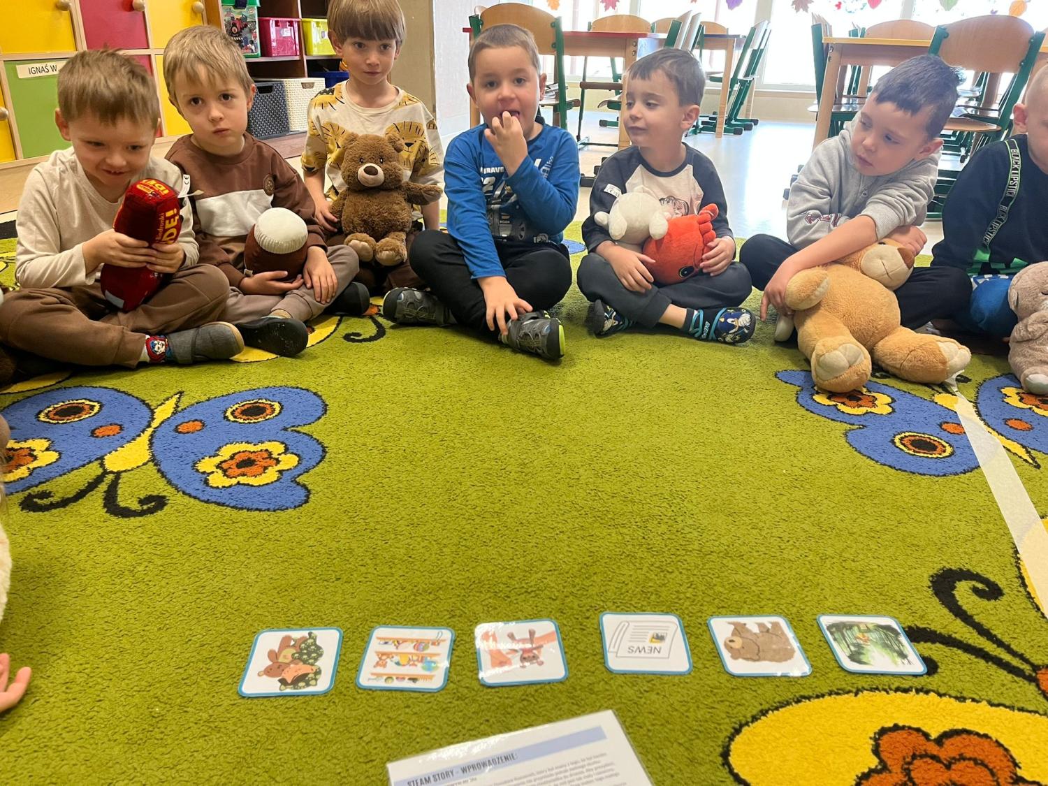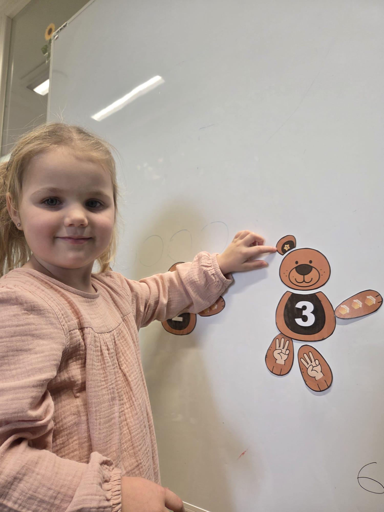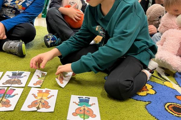 Przedszkolaki brały udział w zabawach ruchowych, chodziły po tropach misia, ćwiczyły zdolności manualne, słuchały tekstów literackich, uczestniczyły w gimnastyce buzi i języka oraz bawiły się w kodowanie.