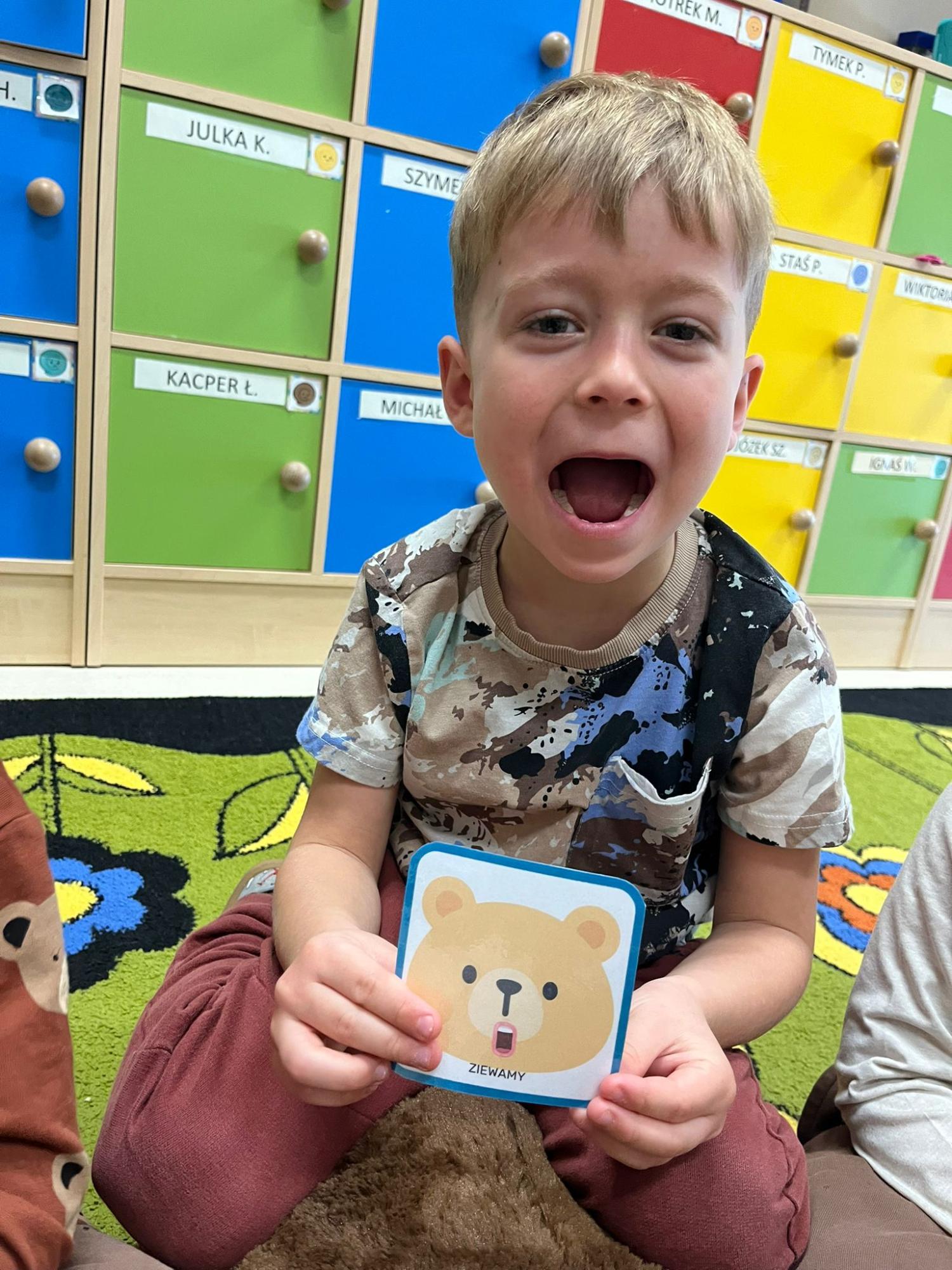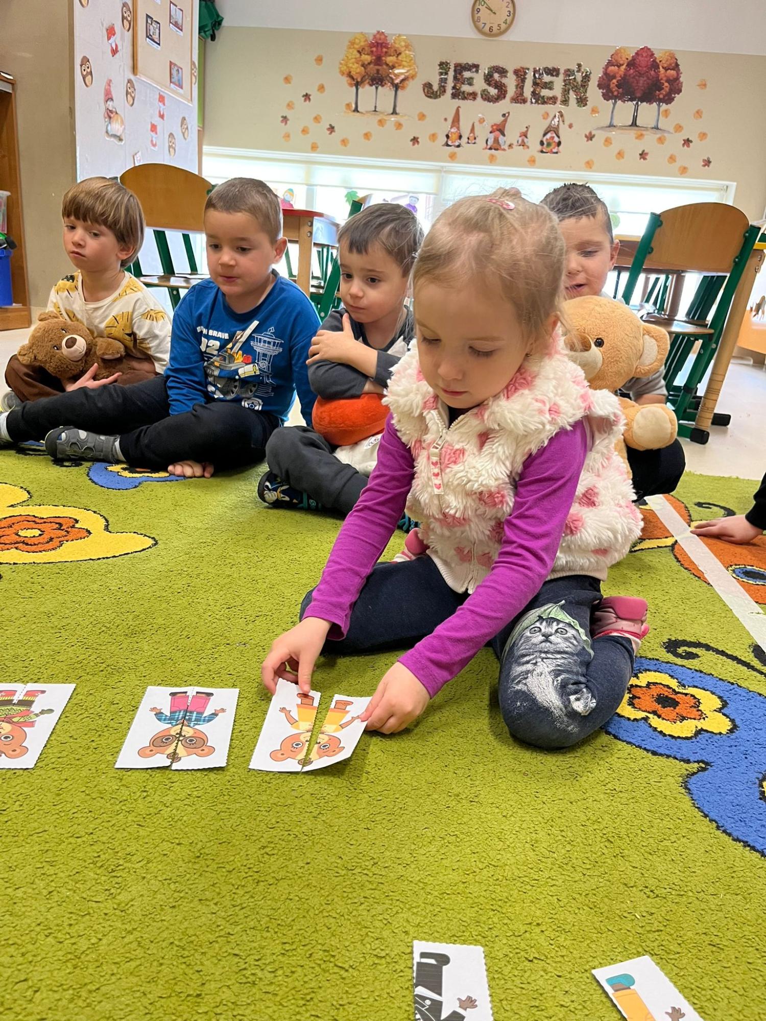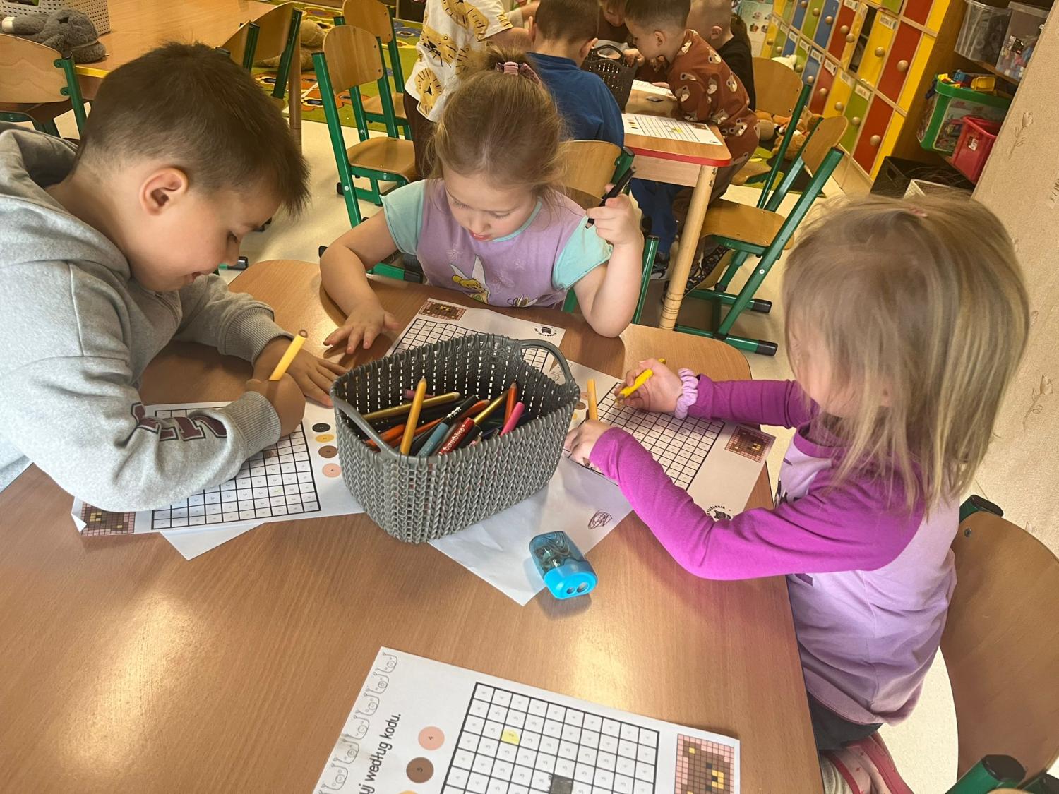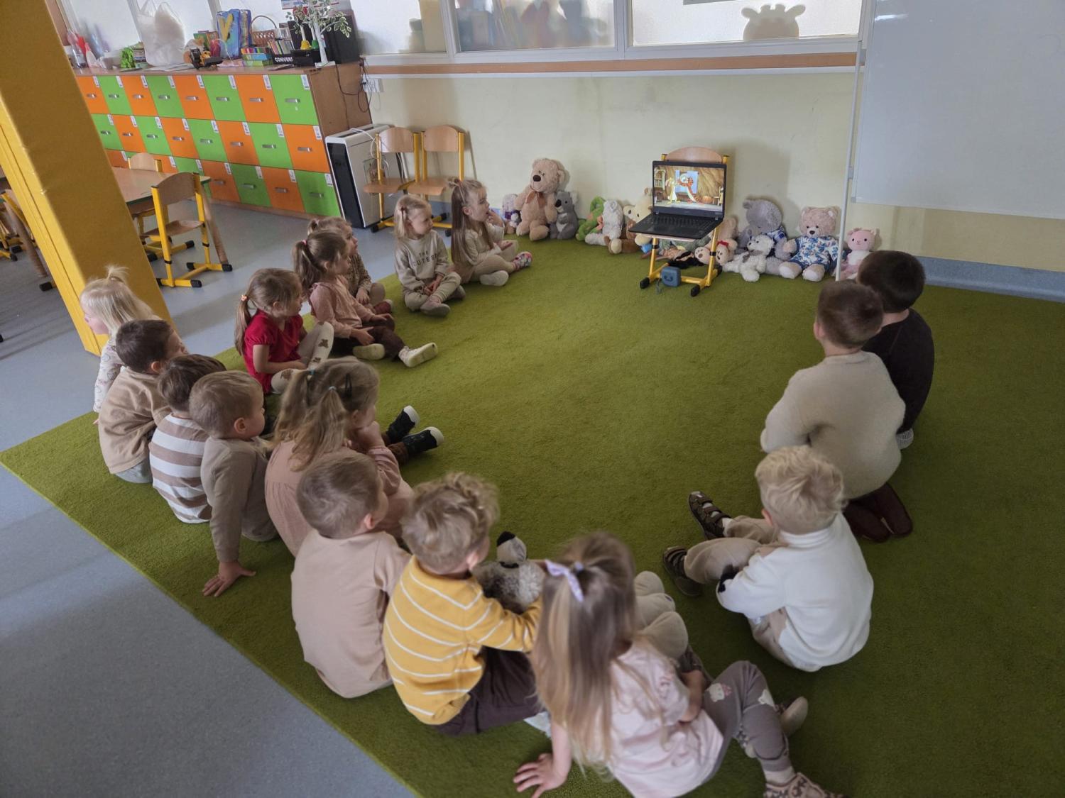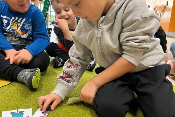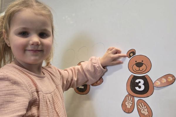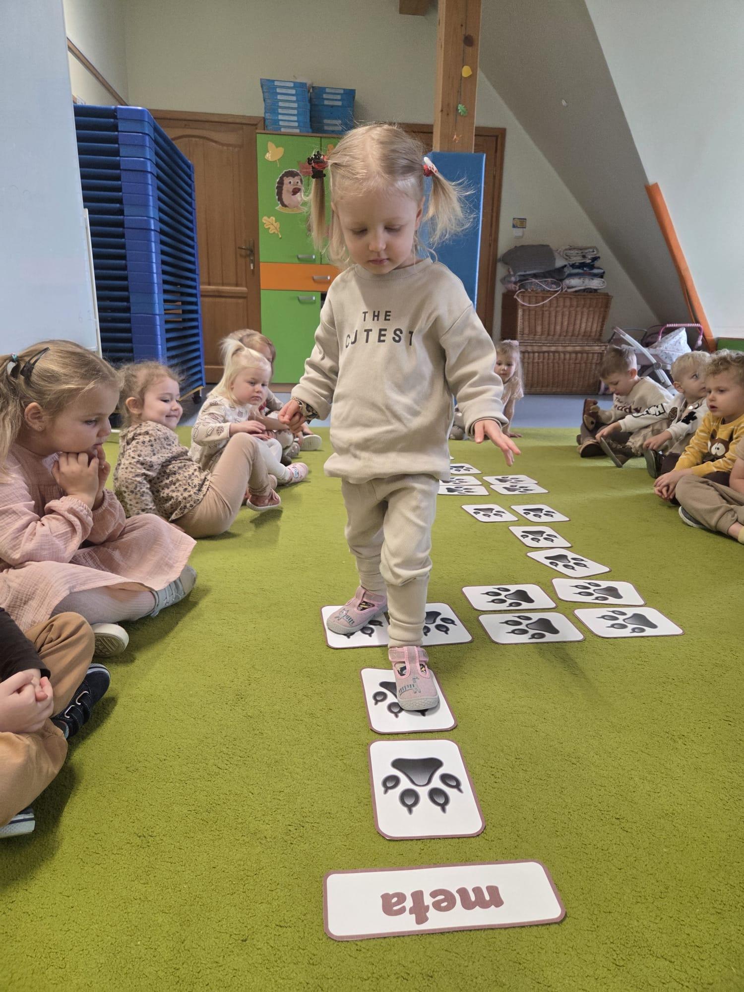 Przedszkolaki brały udział w zabawach ruchowych, chodziły po tropach misia, ćwiczyły zdolności manualne, słuchały tekstów literackich, uczestniczyły w gimnastyce buzi i języka oraz bawiły się w kodowanie.