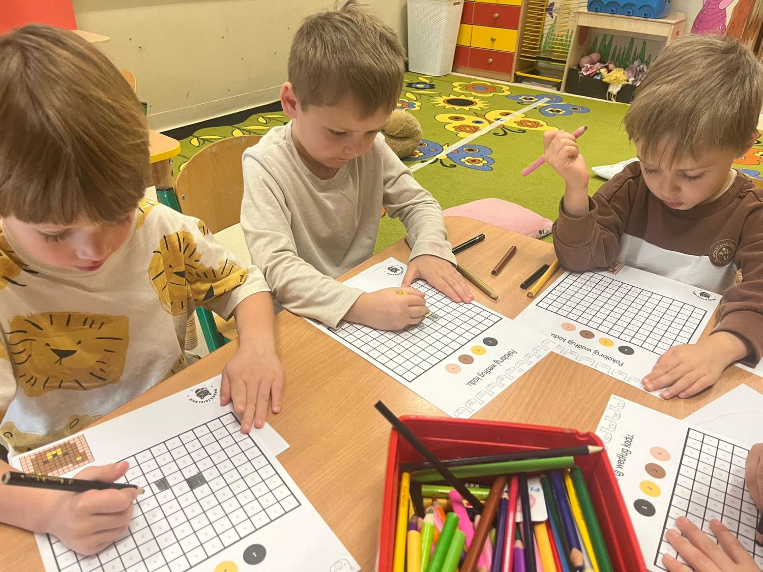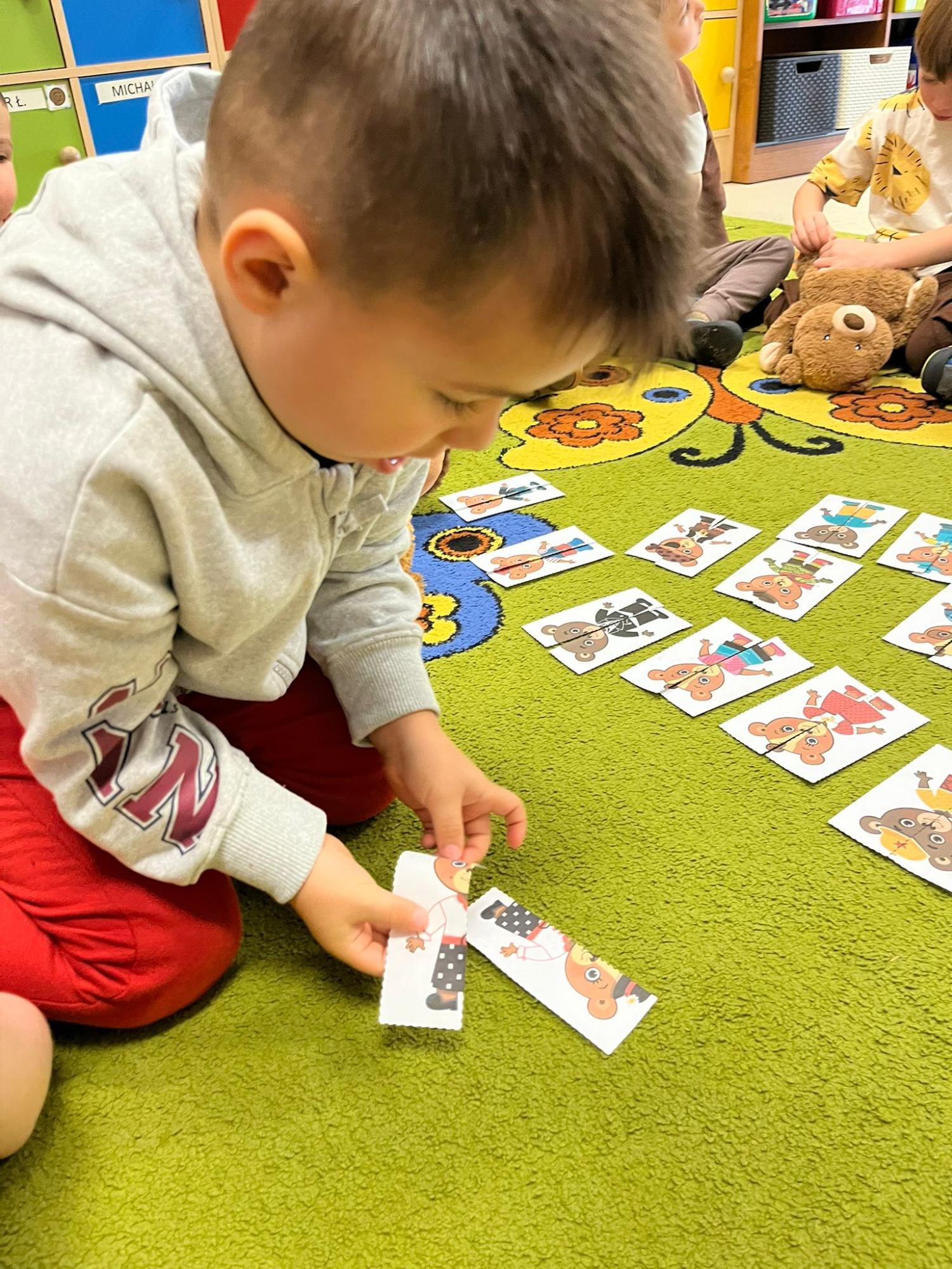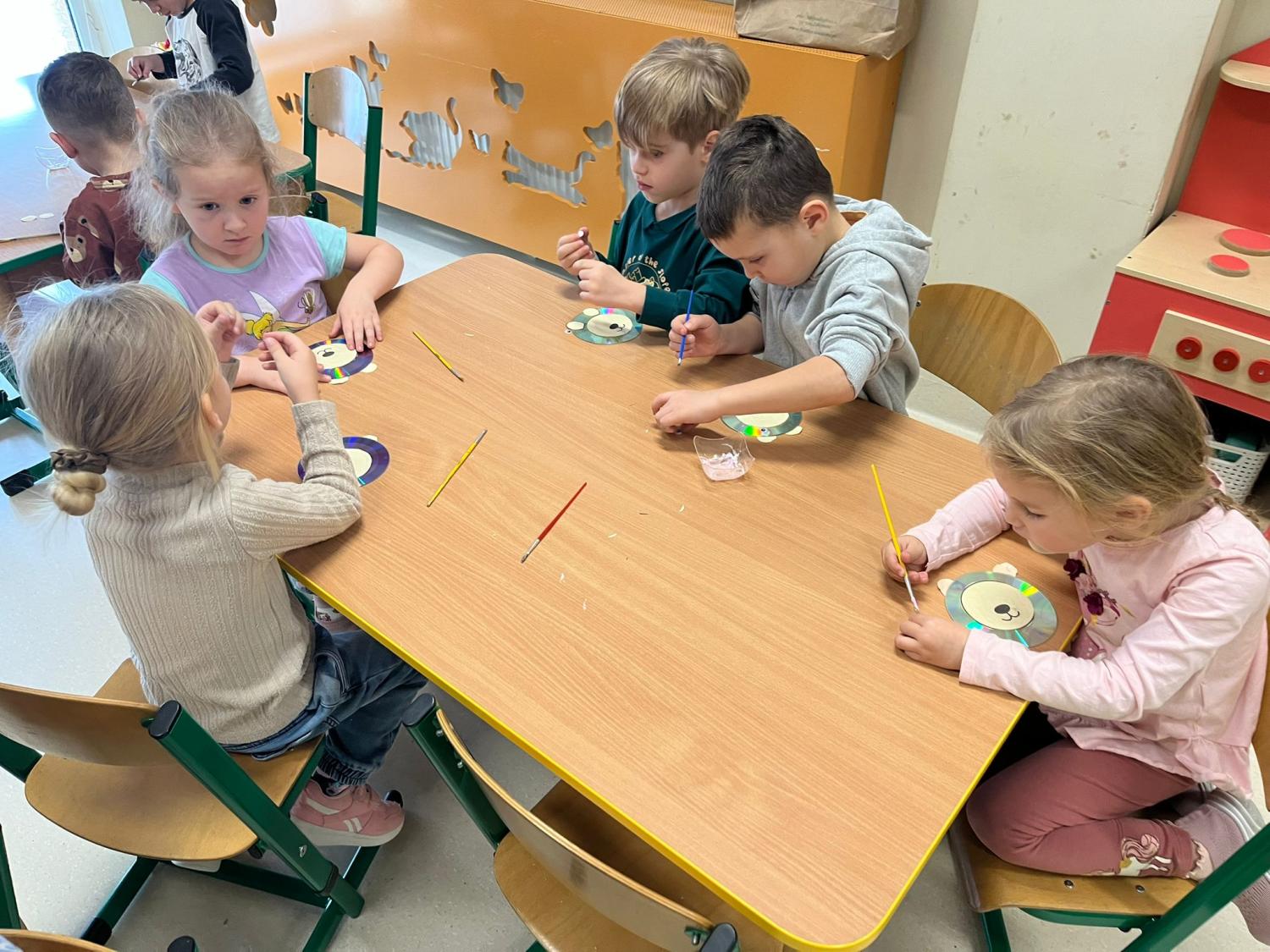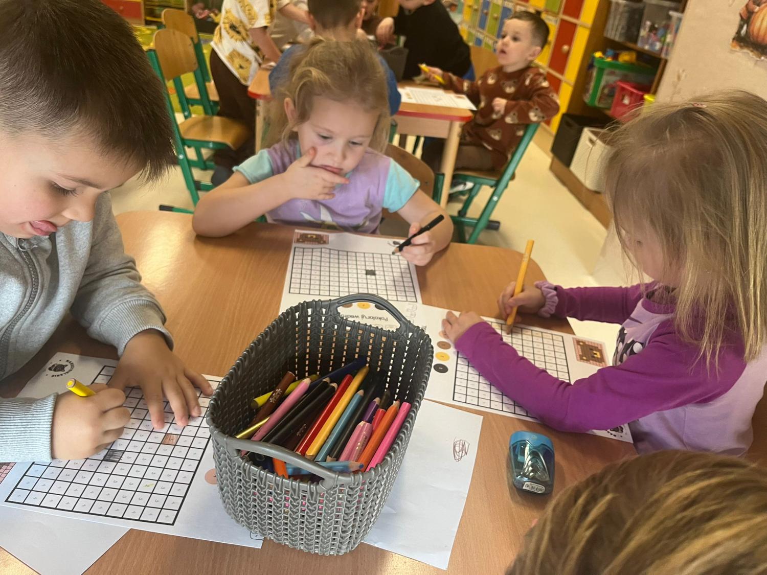 Przedszkolaki brały udział w zabawach ruchowych, chodziły po tropach misia, ćwiczyły zdolności manualne, słuchały tekstów literackich, uczestniczyły w gimnastyce buzi i języka oraz bawiły się w kodowanie.