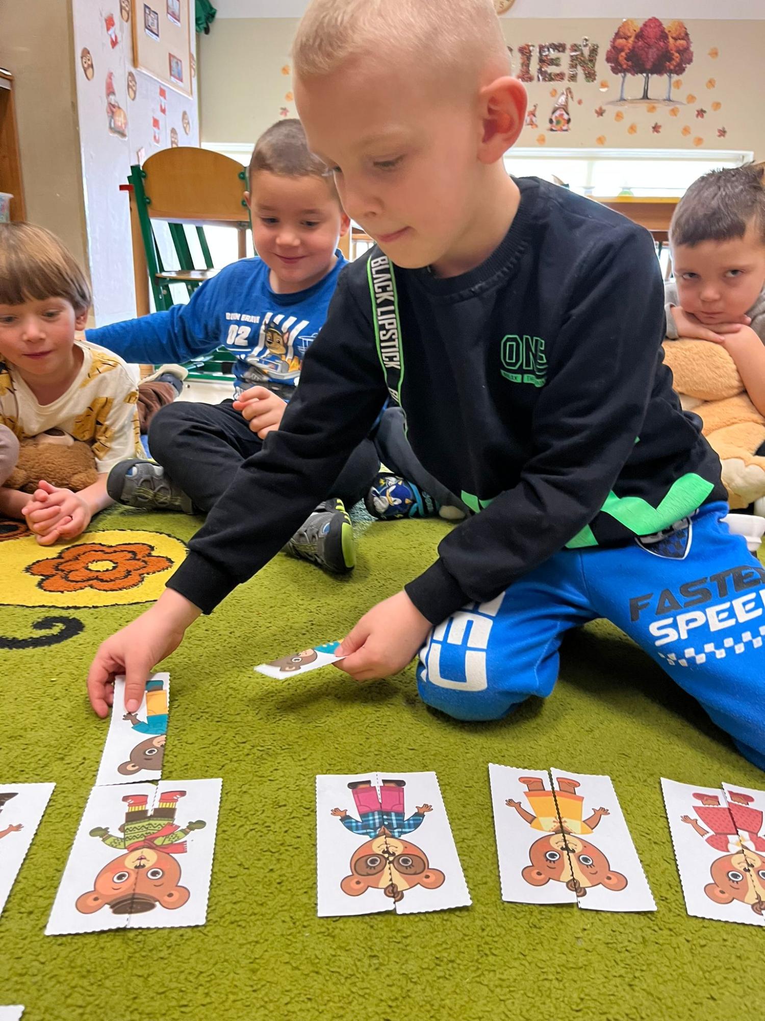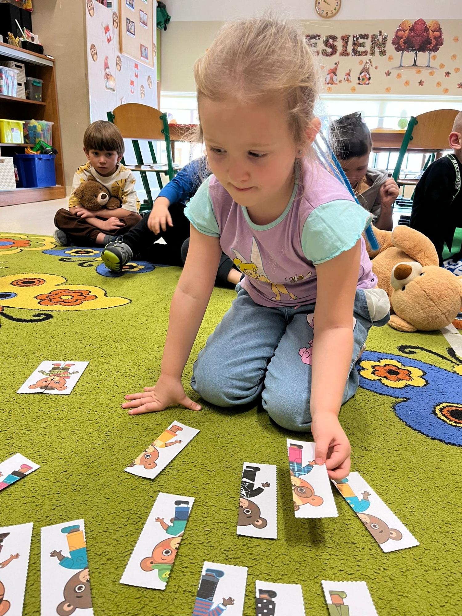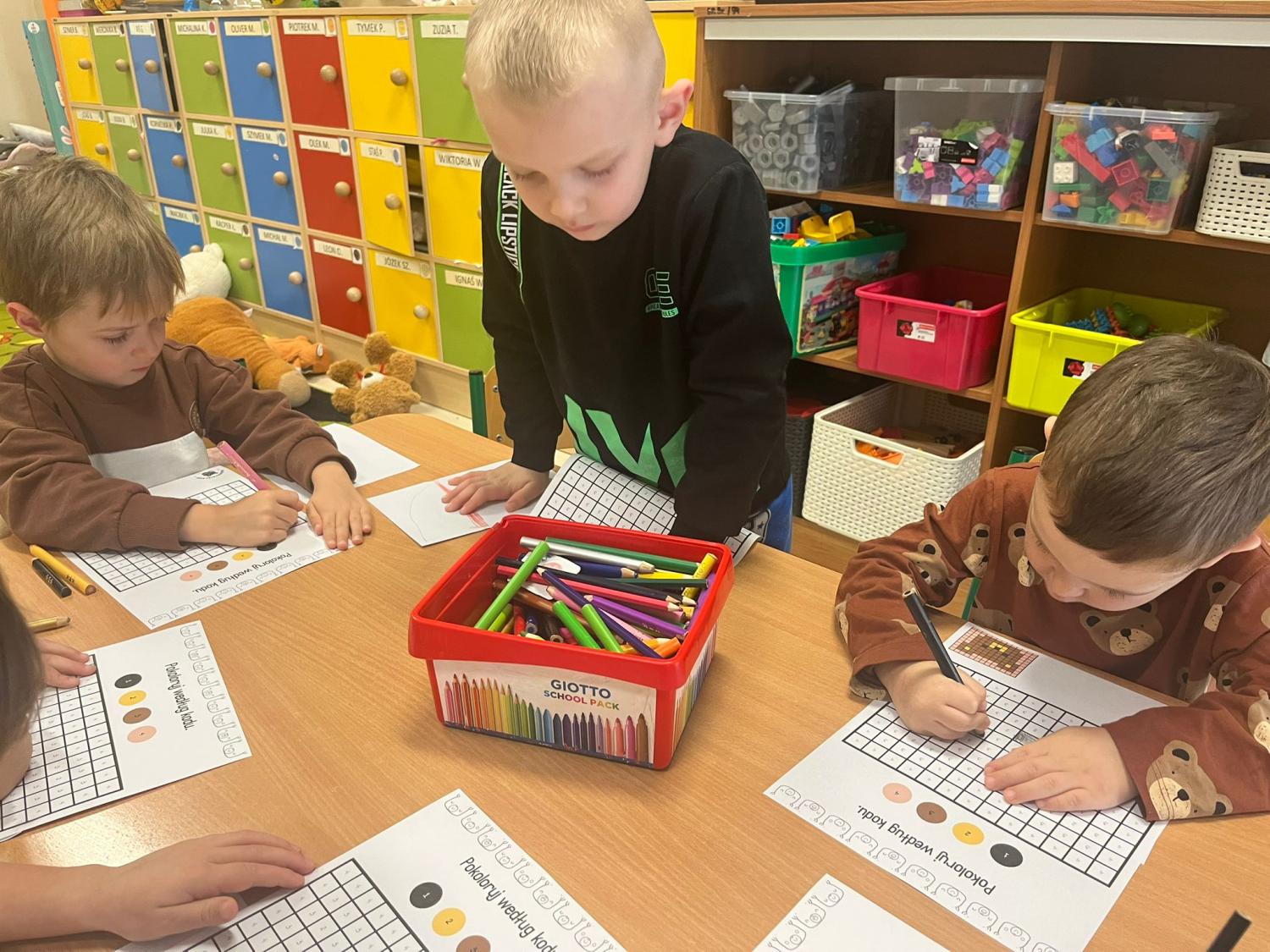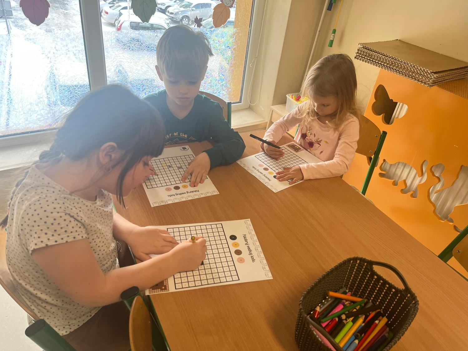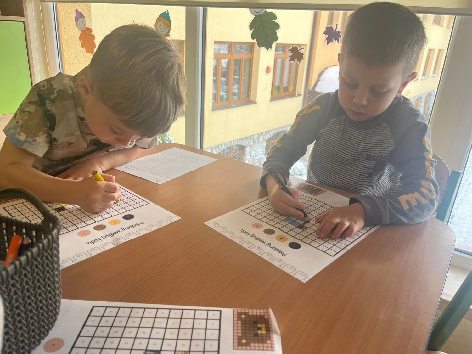 Przedszkolaki brały udział w zabawach ruchowych, chodziły po tropach misia, ćwiczyły zdolności manualne, słuchały tekstów literackich, uczestniczyły w gimnastyce buzi i języka oraz bawiły się w kodowanie.