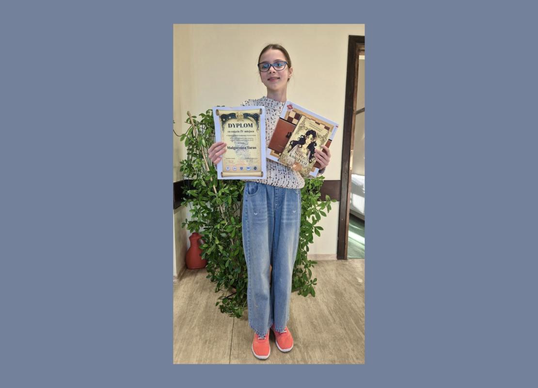 Z radością informujemy, że Małgorzata Taras, uczennica klasy Va, zdobyła IV miejsce w Ogólnopolskim Konkursie Artystycznym „Po raz dziesiąty konkurs nasz baśniowy, na kadr z Rodziną otwórzmy swe głowy”.
