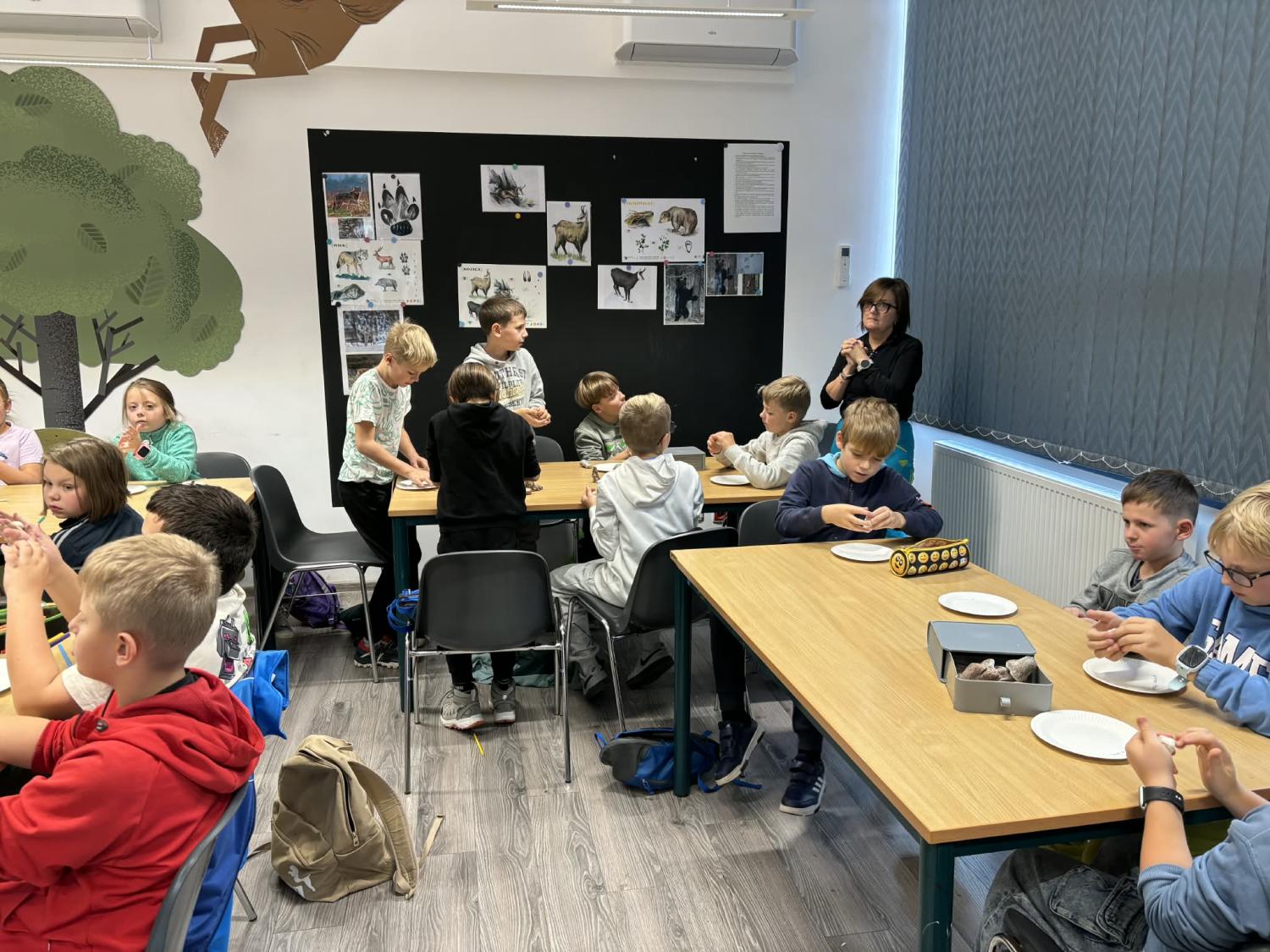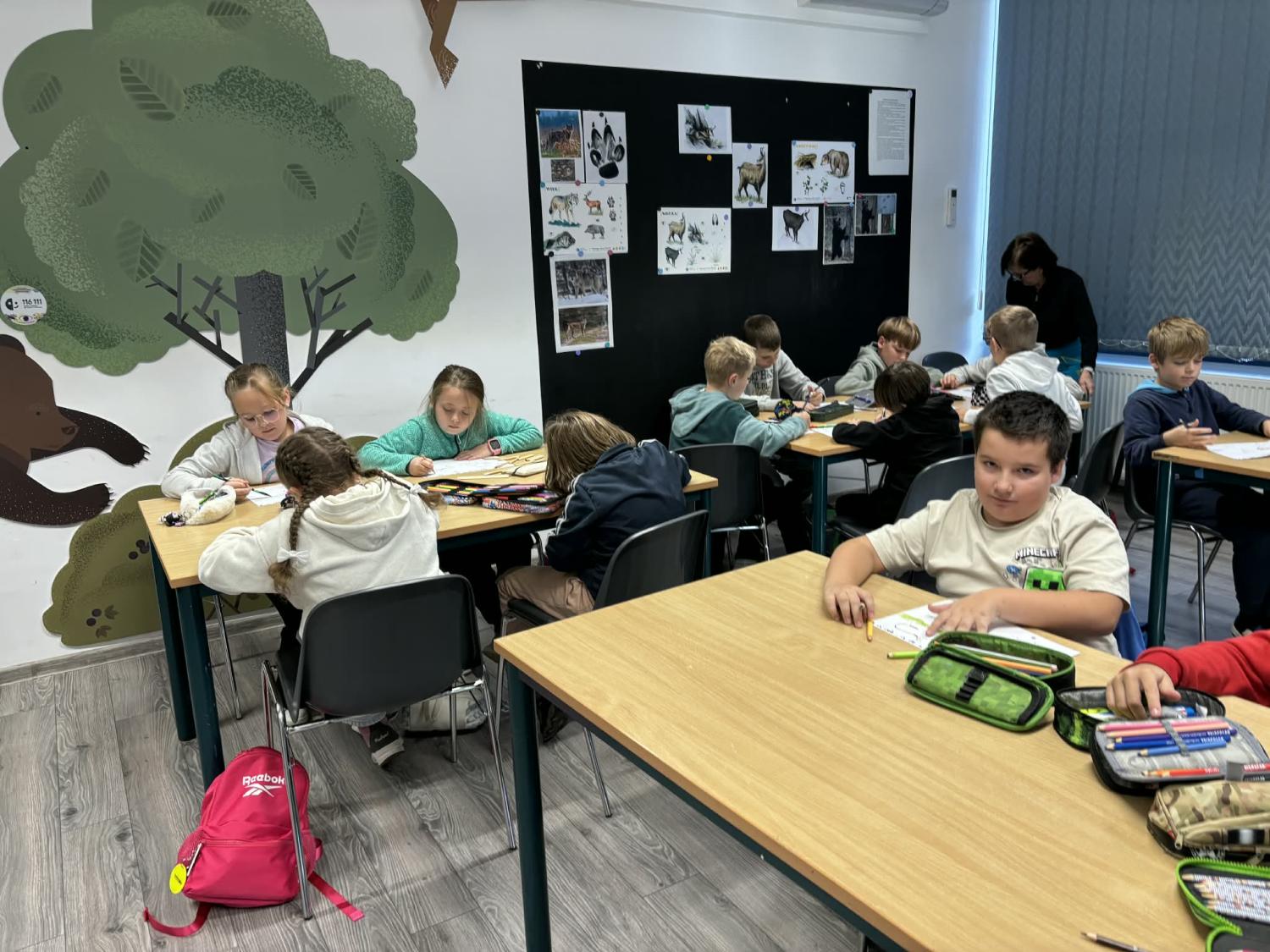 Następnie, w specjalnie przygotowanej sali edukacyjnej, uczniowie wzięli udział w zajęciach dotyczących zarówno flory, jak i fauny Tatrzańskiego Parku Narodowego. Podczas tych warsztatów zdobyli wiele ciekawych informacji o środowisku naturalnym Tatr oraz zwyczajach zwierząt zamieszkujących ten unikalny obszar. Szczególną atrakcją było wykonywanie tropów poszczególnych zwierząt, które dzieci mogły zabrać ze sobą do domu jako pamiątkę i pomoc w dalszej nauce.