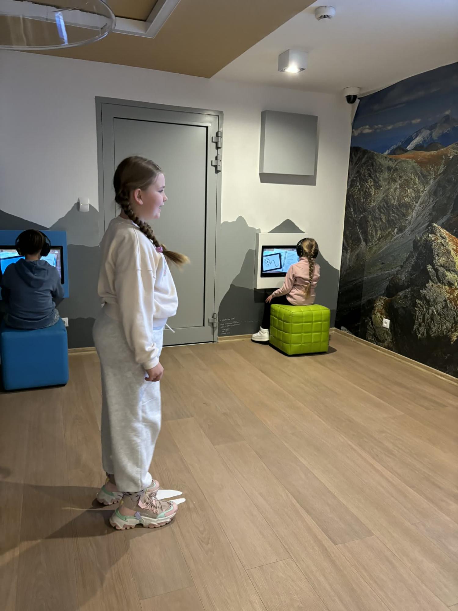Na zakończenie wycieczki klasa IIIb odwiedziła salę interaktywną, gdzie uczniowie mieli możliwość dalszego poznawania świata Tatr poprzez gry edukacyjne, układanki, prezentacje multimedialne oraz słuchowiska. Dzięki temu każdy mógł w atrakcyjny i angażujący sposób pogłębić swoją wiedzę o przyrodzie Tatrzańskiego Parku Narodowego.