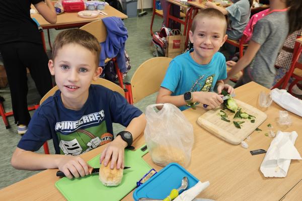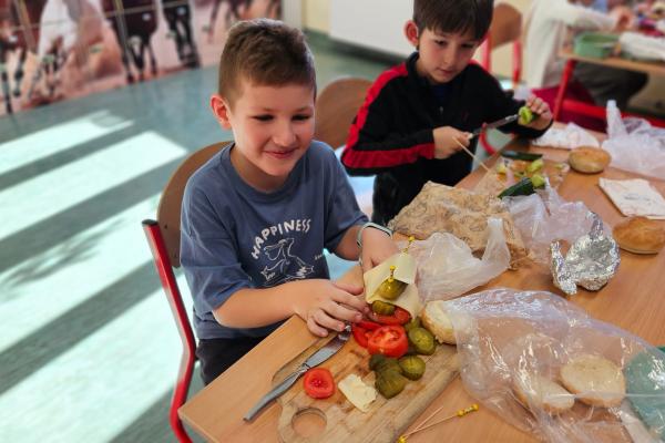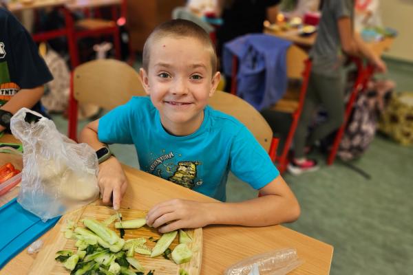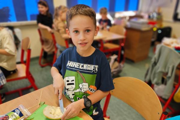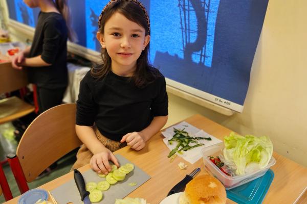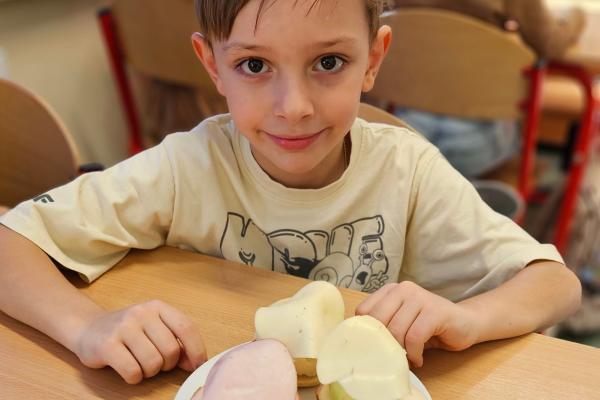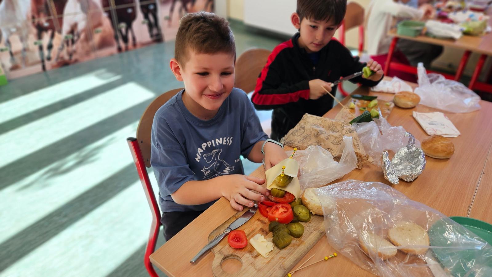 Drugoklasiści z zaangażowaniem kroili, układali i komponowali swoje zdrowe łódeczki, dbając o estetykę i różnorodne składniki. Dzięki temu mieli okazję nie tylko utrwalić wiedzę o zasadach zdrowego odżywiania, lecz także przekonać się, że zdrowe jedzenie może być smaczne, atrakcyjne i proste w przygotowaniu.