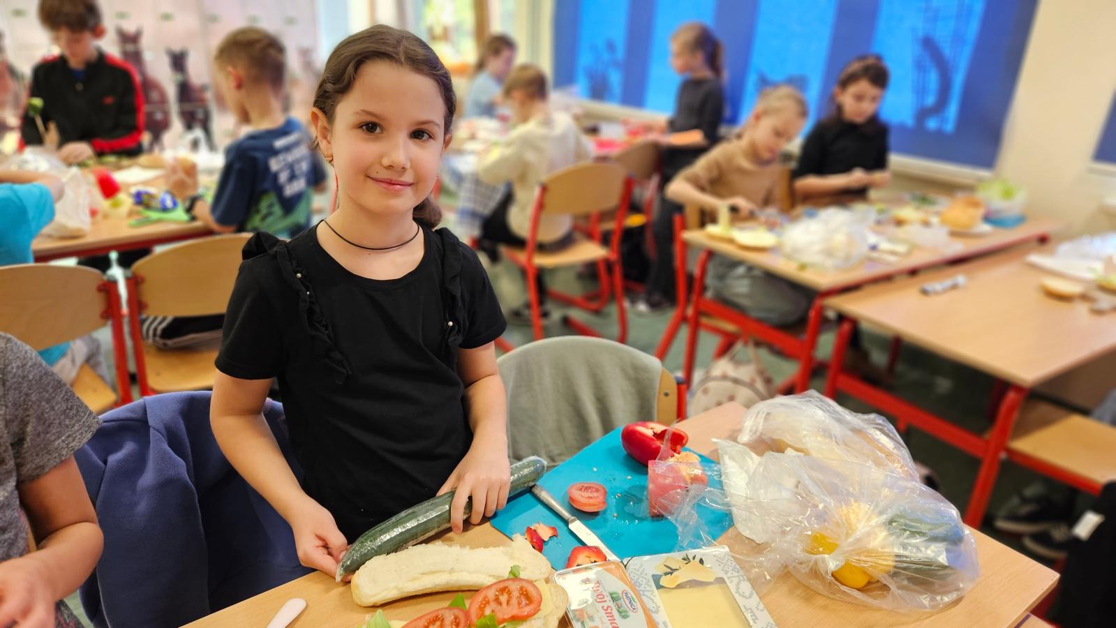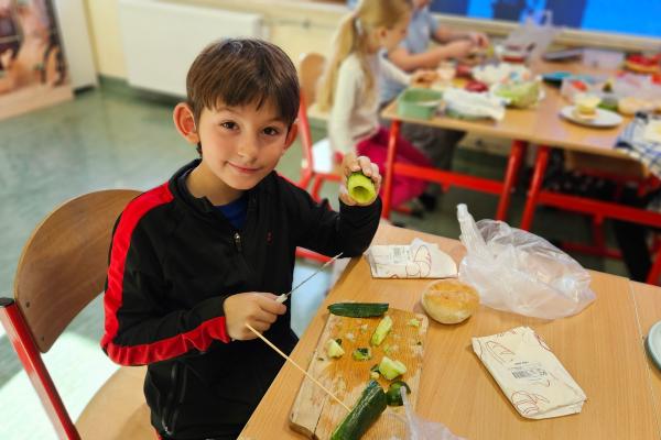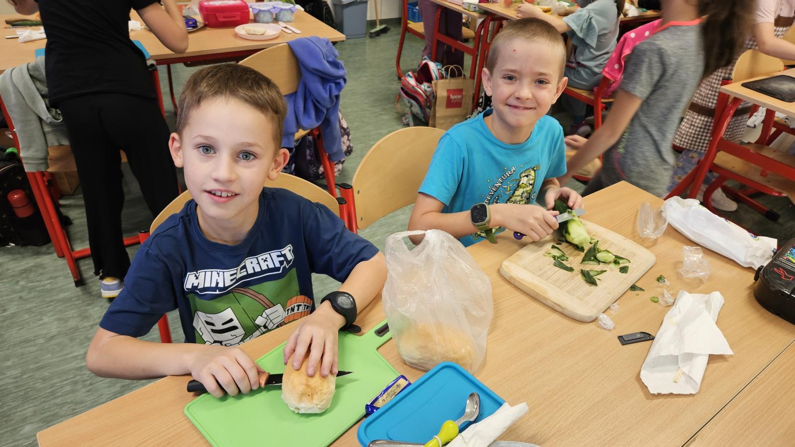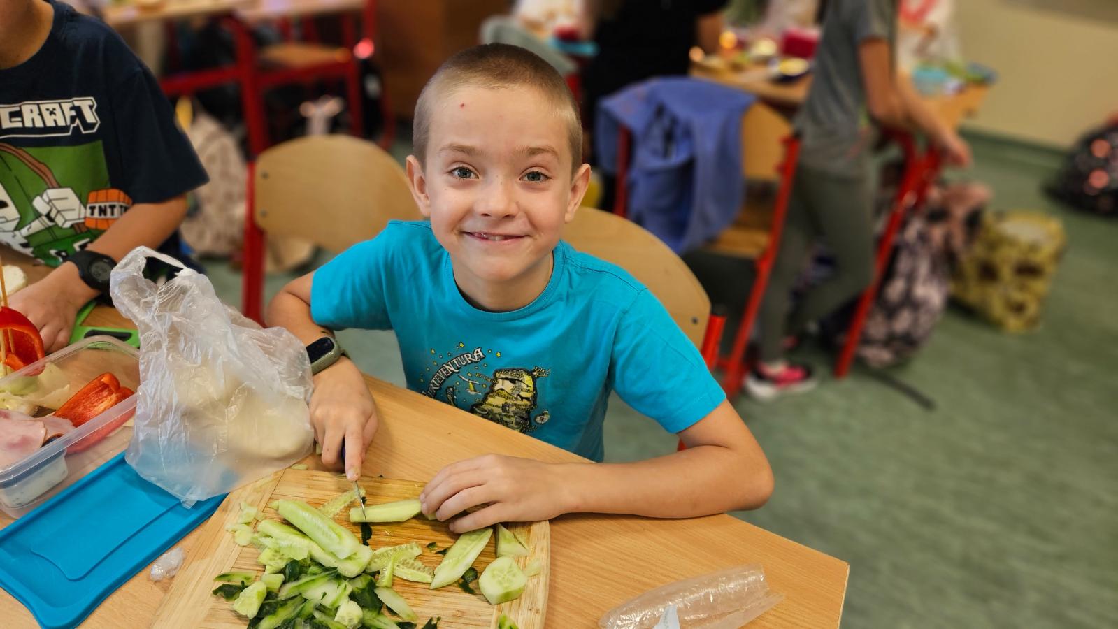 Drugoklasiści z zaangażowaniem kroili, układali i komponowali swoje zdrowe łódeczki, dbając o estetykę i różnorodne składniki. Dzięki temu mieli okazję nie tylko utrwalić wiedzę o zasadach zdrowego odżywiania, lecz także przekonać się, że zdrowe jedzenie może być smaczne, atrakcyjne i proste w przygotowaniu.