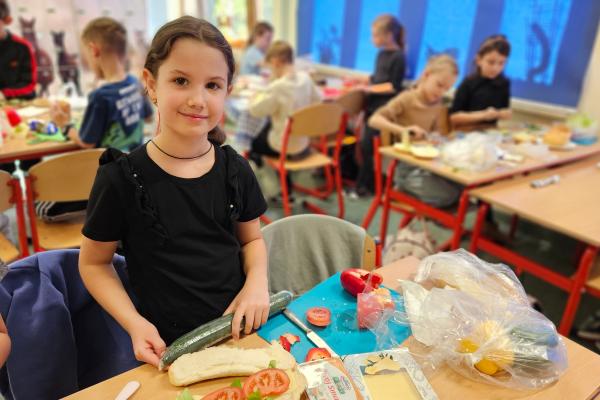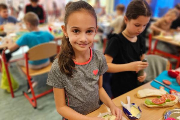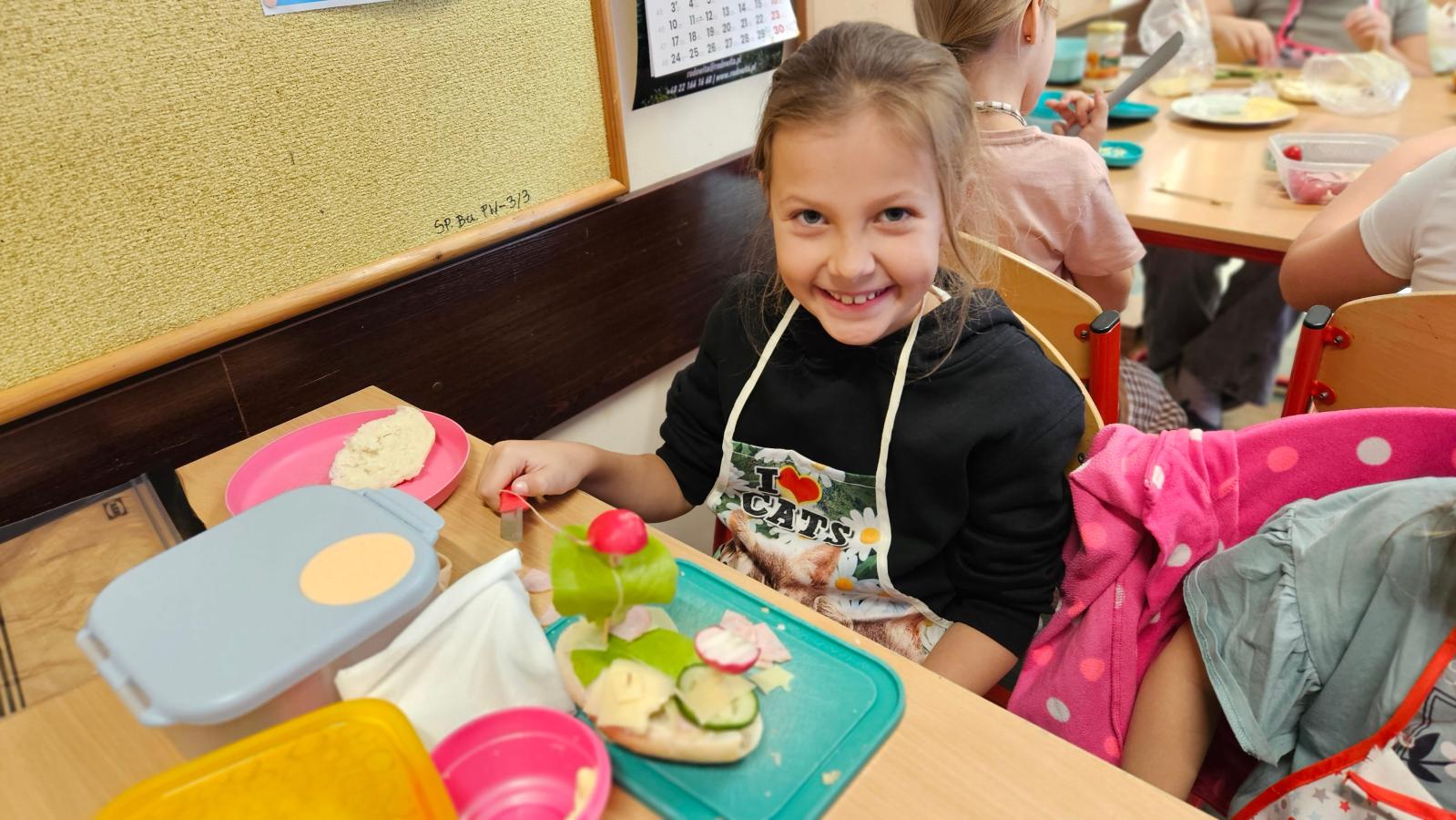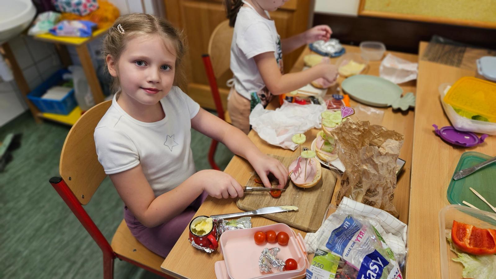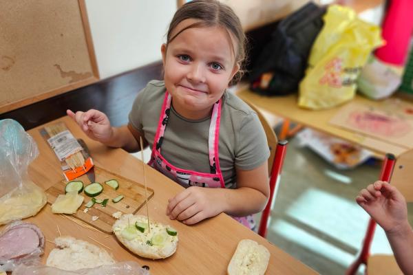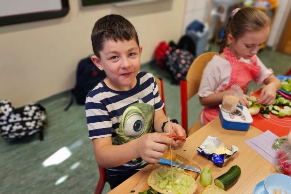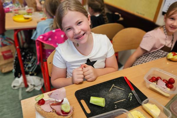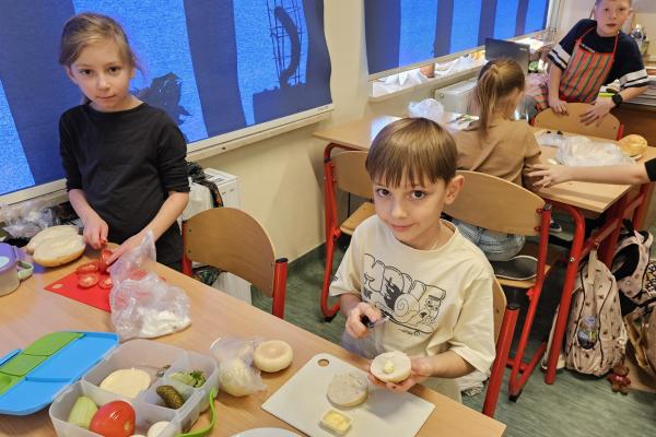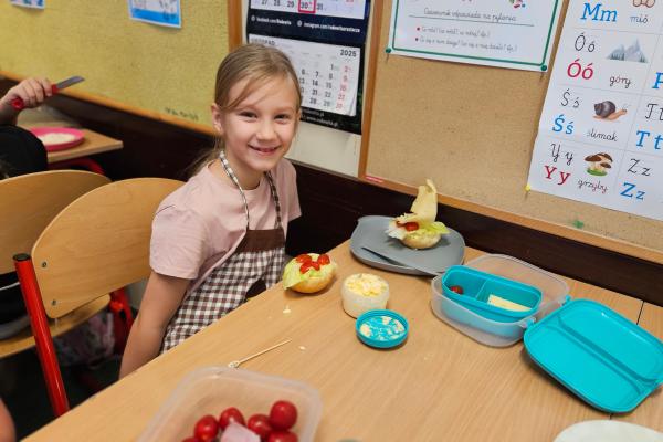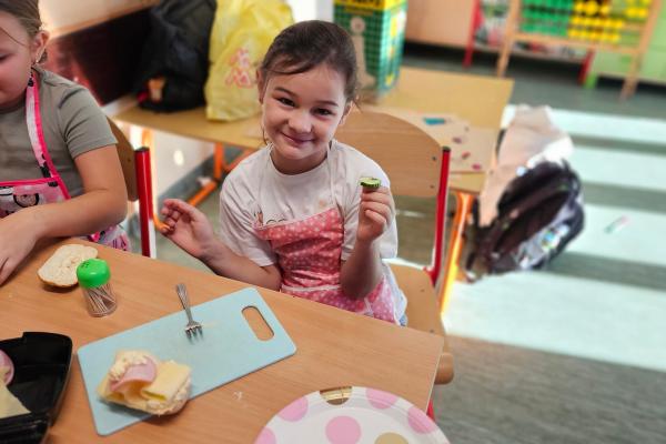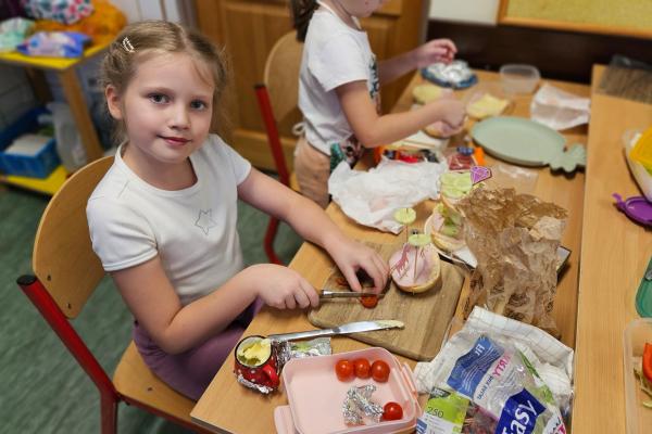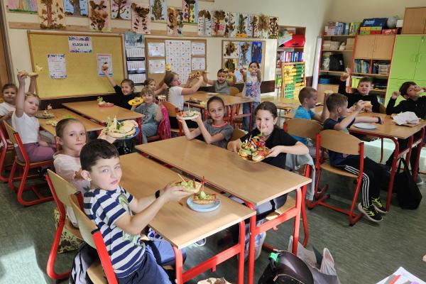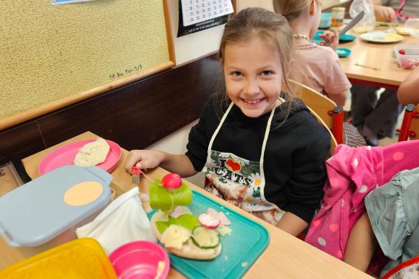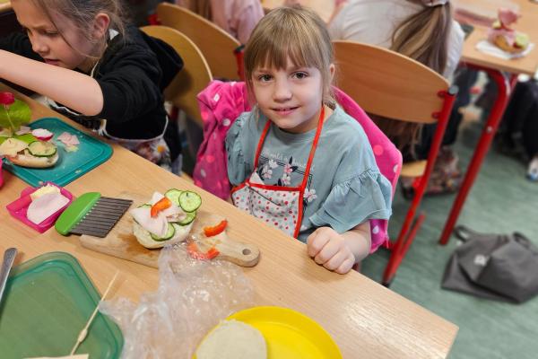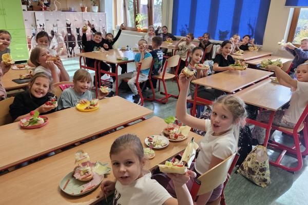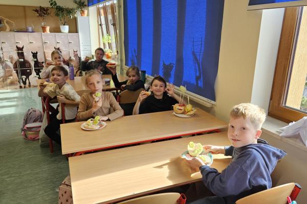 Zajęcia były znakomitą formą nauki poprzez działanie – rozwijały samodzielność, kreatywność oraz kształtowały prawidłowe nawyki żywieniowe. Na koniec wszyscy z apetytem zjedli przygotowane przez siebie zdrowe przekąski.