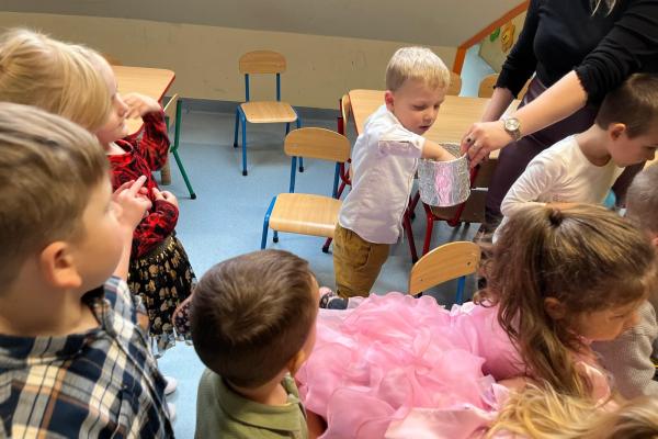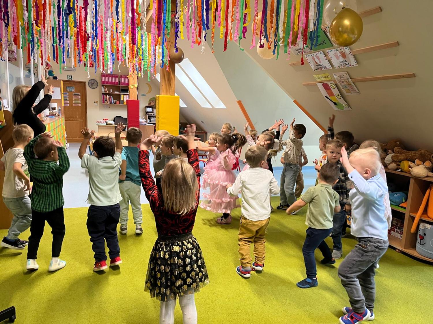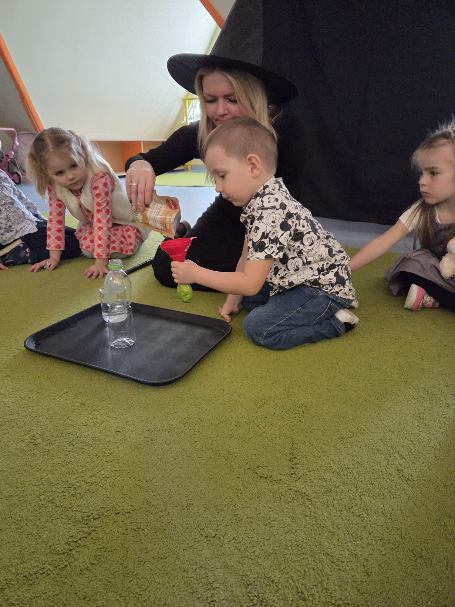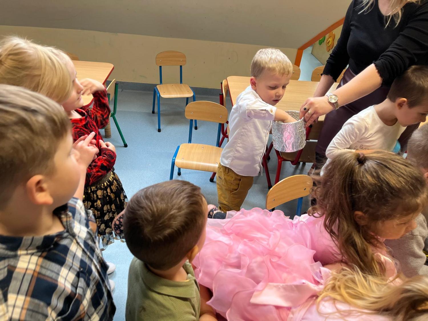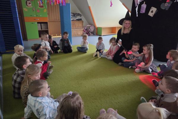 27 listopada 2025 roku w grupach przedszkolnych odbyły się radosne andrzejki, pełne magii i zabawy. Dzieci brały udział w wróżbach „Kim będę w przyszłości?”, zabawach z kolorowymi piórkami i kluczem, a także w magicznych eksperymentach, takich jak wybuchający wulkan i lampa lawa.