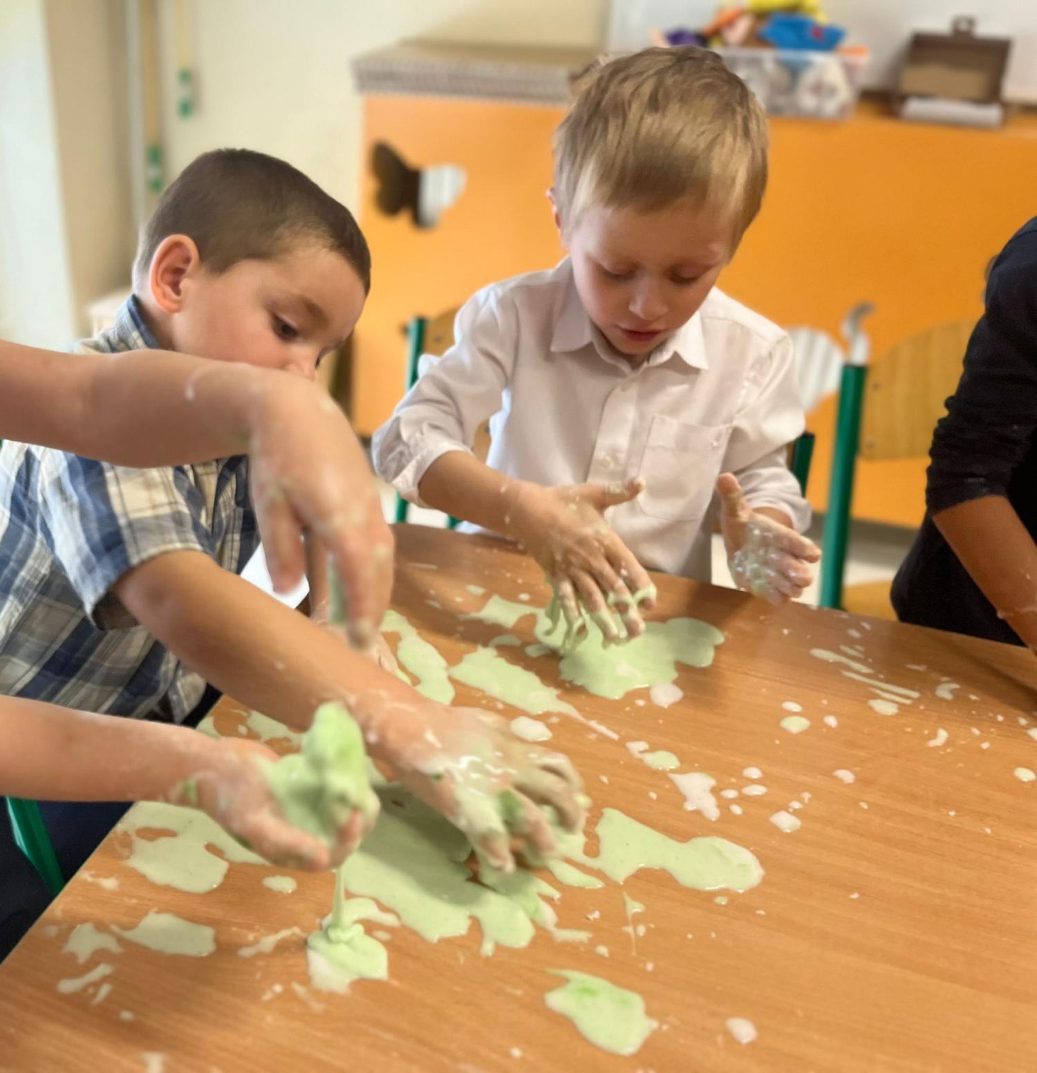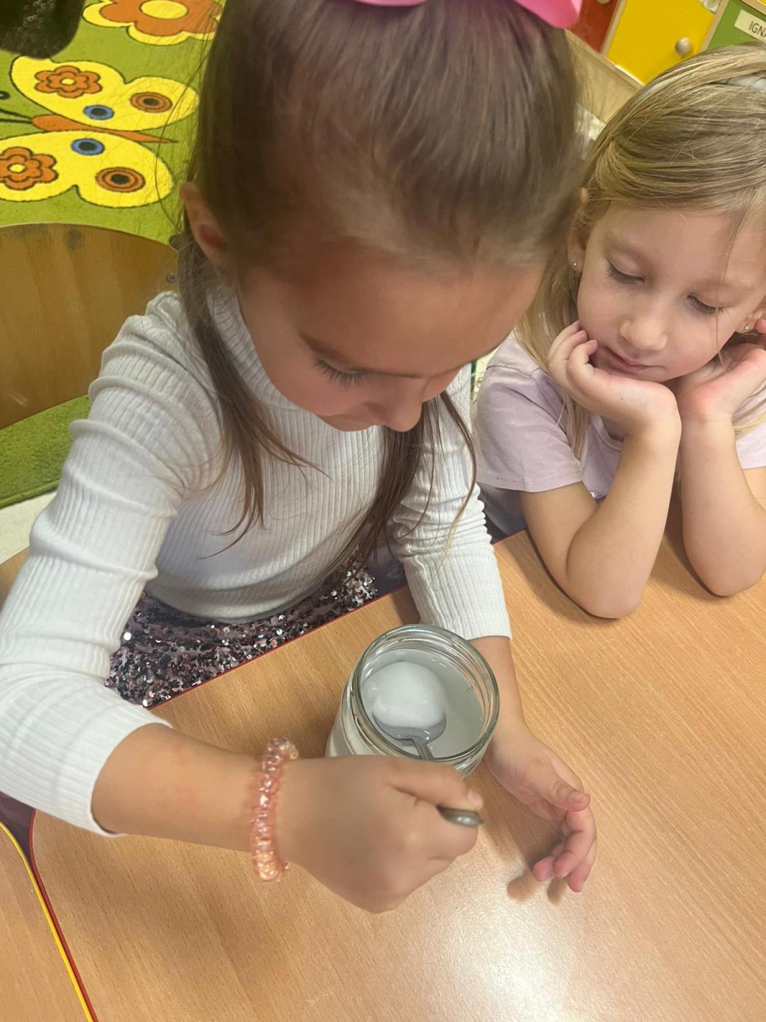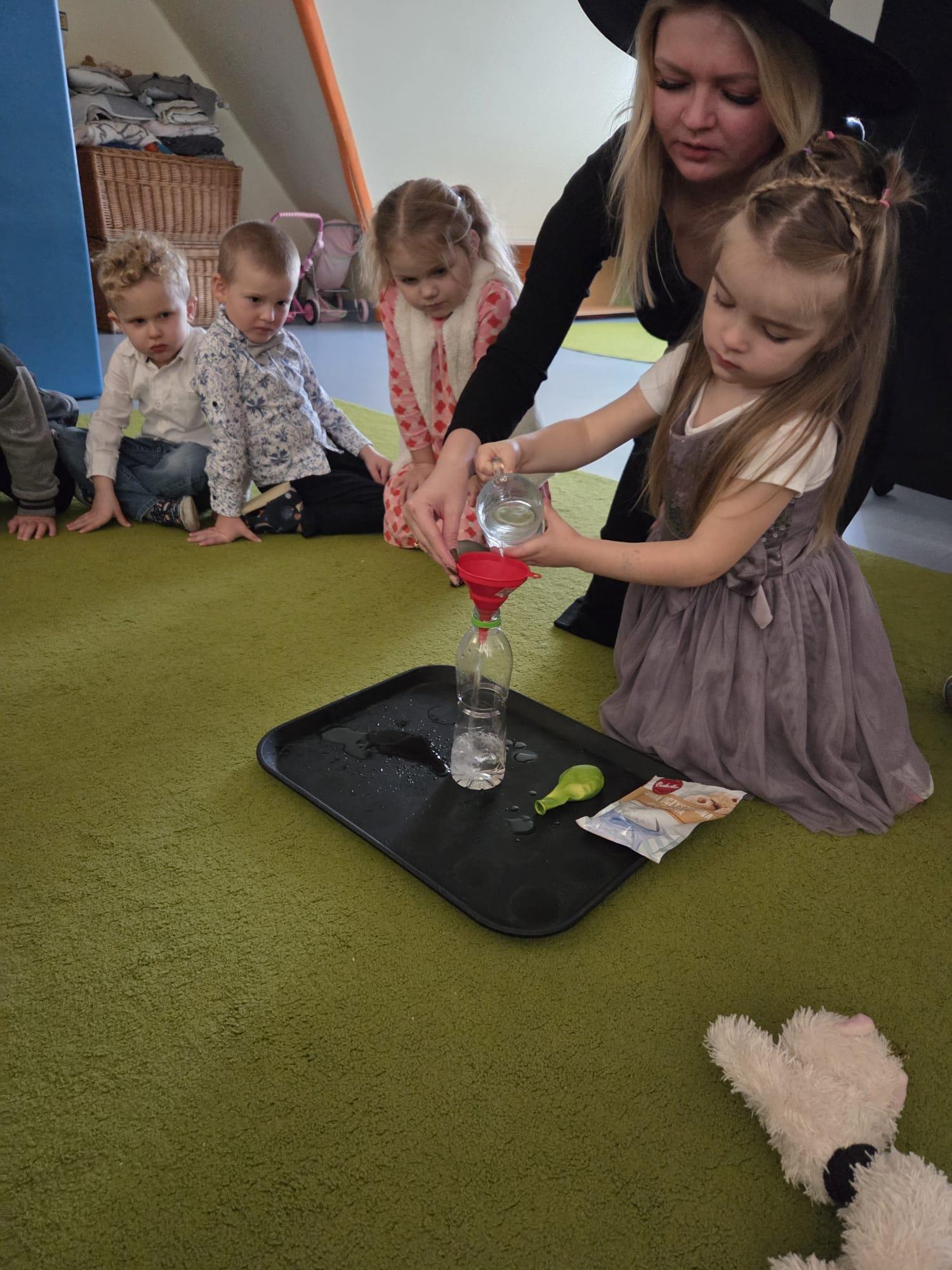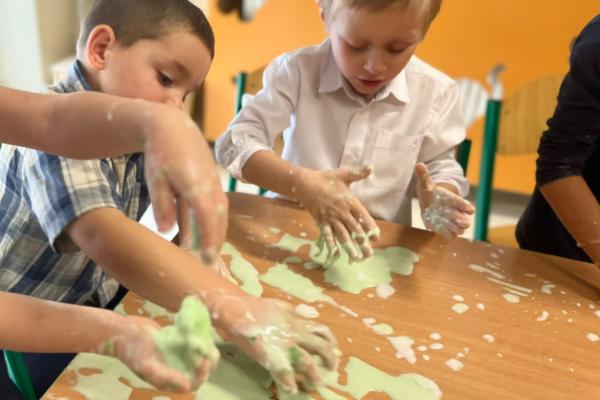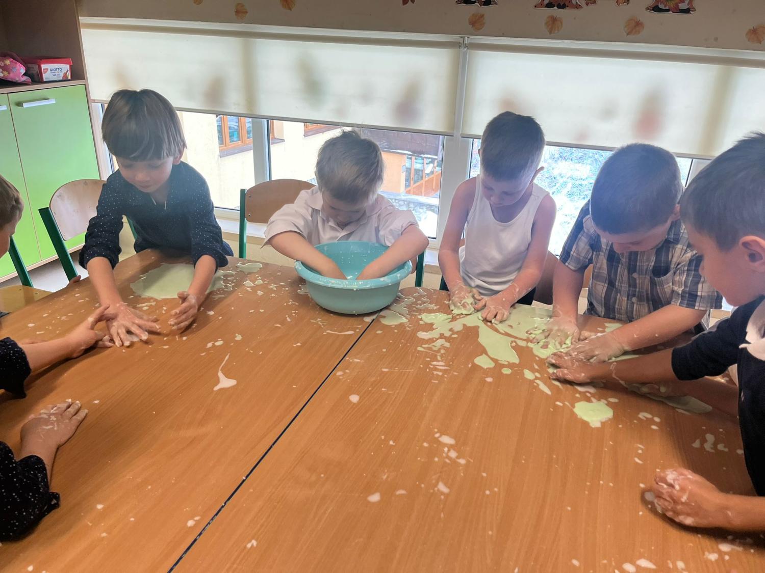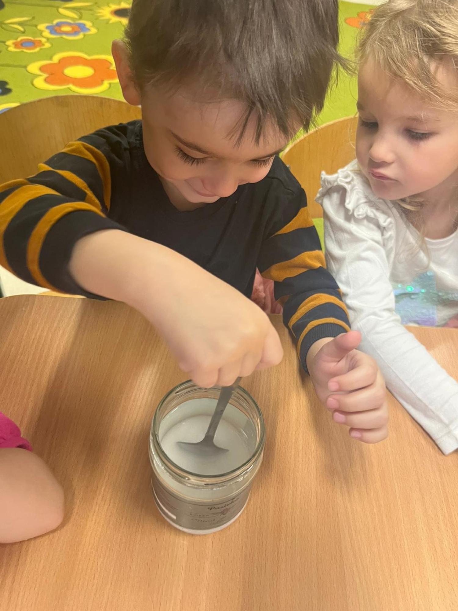 Dzieci miały możliwość zabawy cieczą nienewtonowską, którą same zrobiły, co sprawiło im wiele radości i wzbudziło ogromną ciekawość. Nie zabrakło zabaw ruchowych, tańców przy muzyce oraz wesołych zabaw z balonami. Na zakończenie na wszystkich czekał słodki poczęstunek.