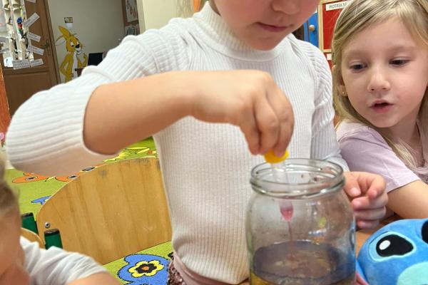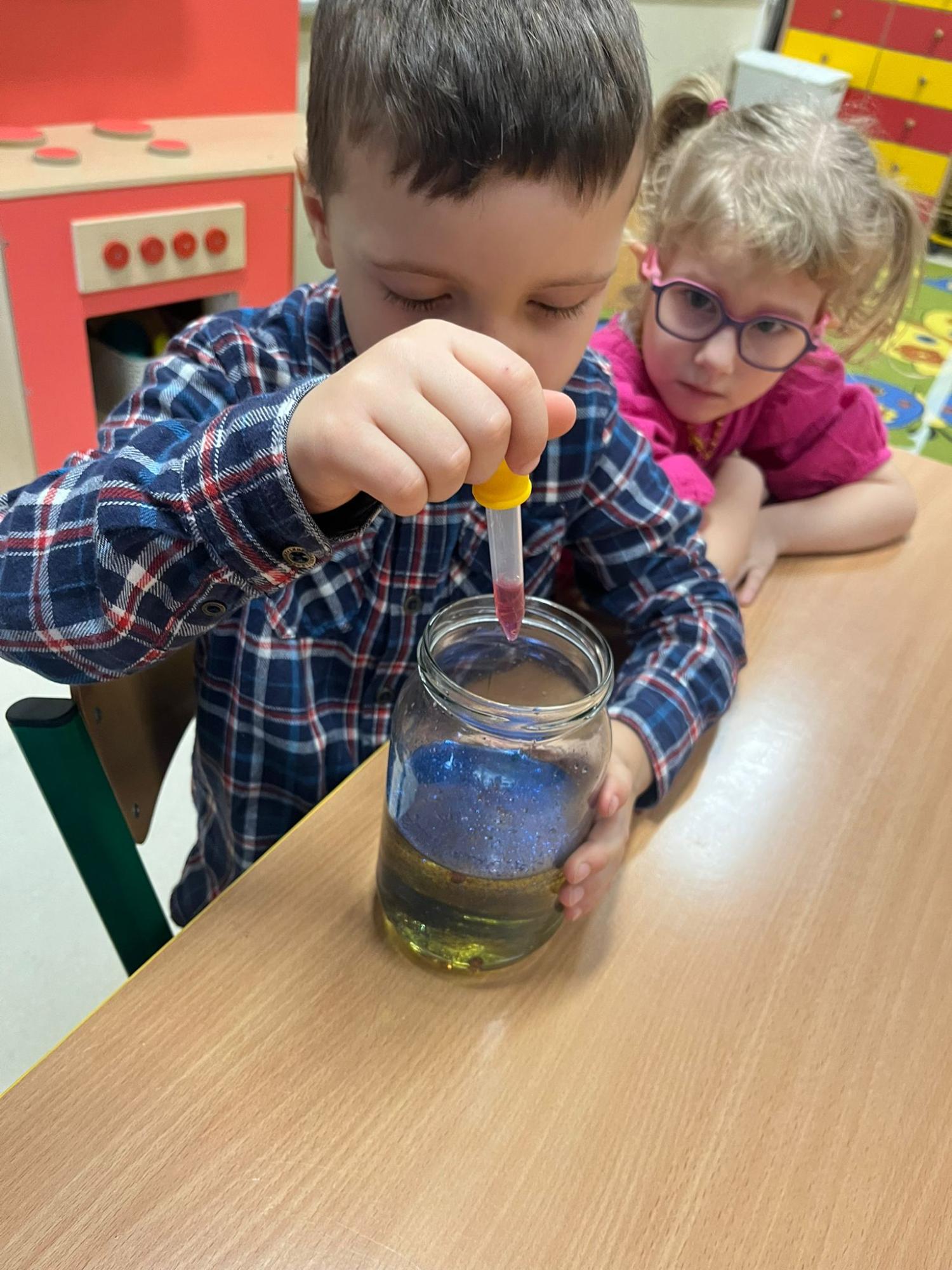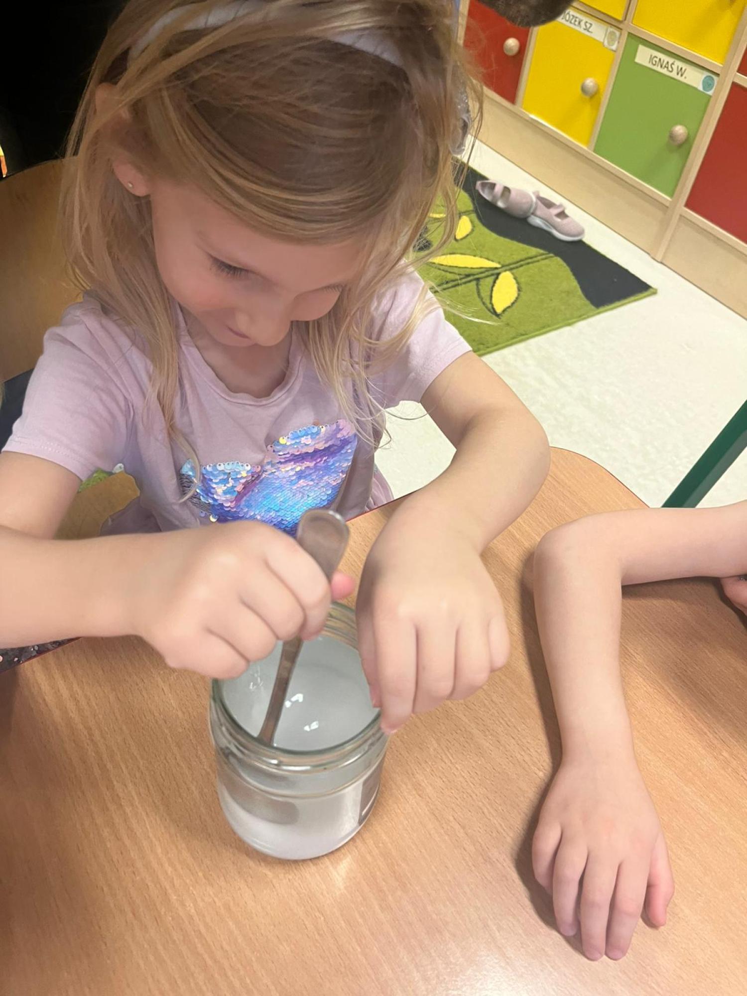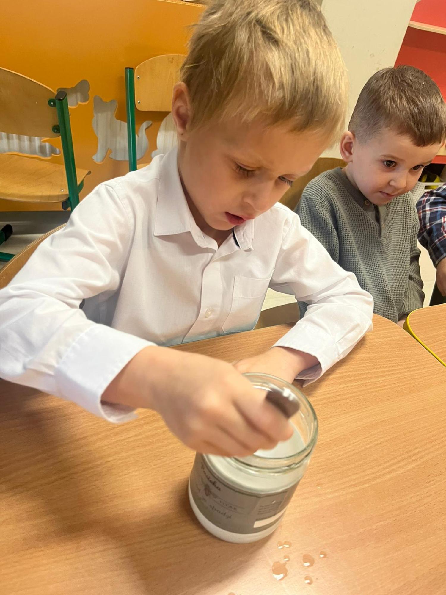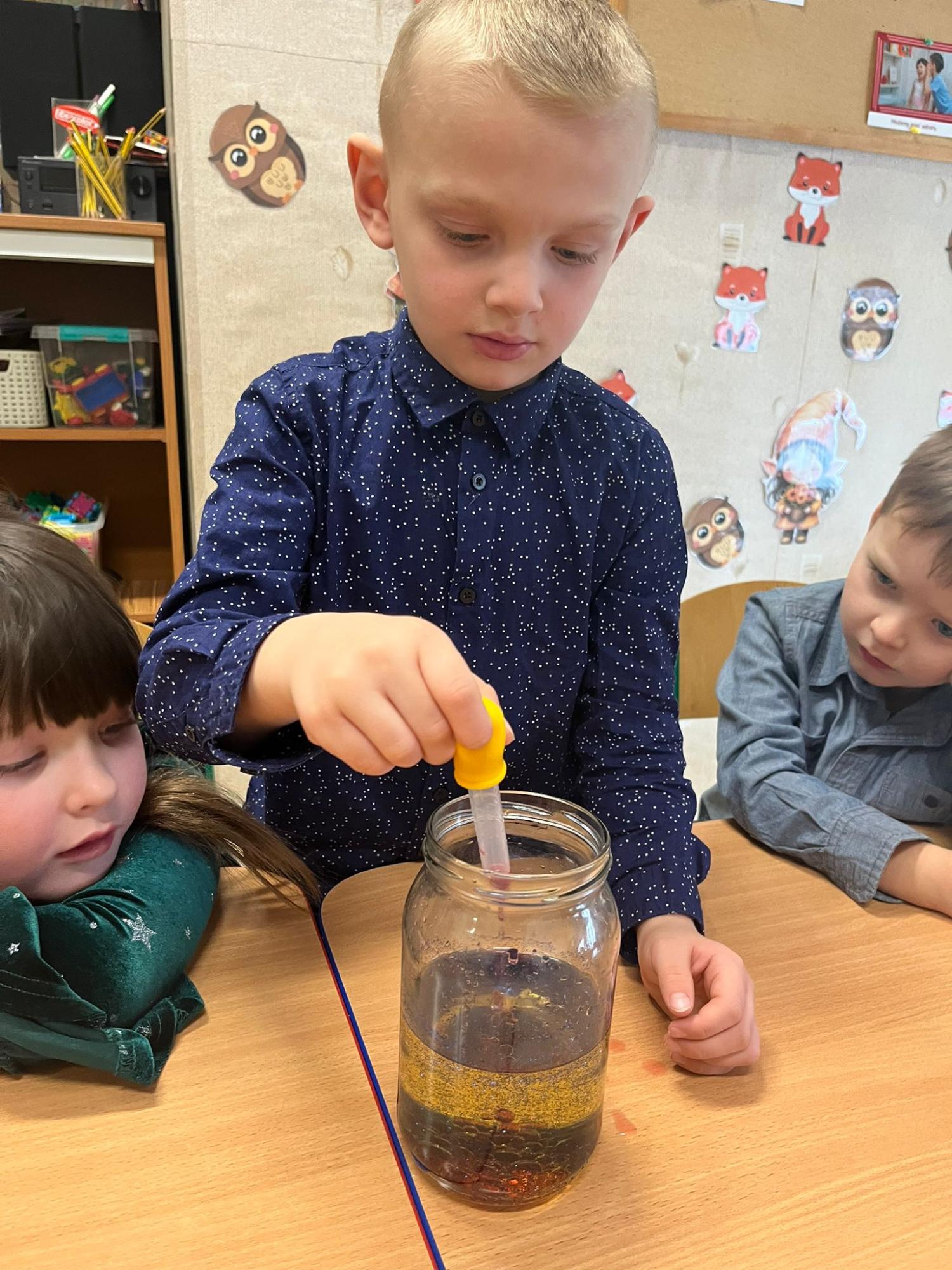 Dzieci miały możliwość zabawy cieczą nienewtonowską, którą same zrobiły, co sprawiło im wiele radości i wzbudziło ogromną ciekawość. Nie zabrakło zabaw ruchowych, tańców przy muzyce oraz wesołych zabaw z balonami. Na zakończenie na wszystkich czekał słodki poczęstunek.