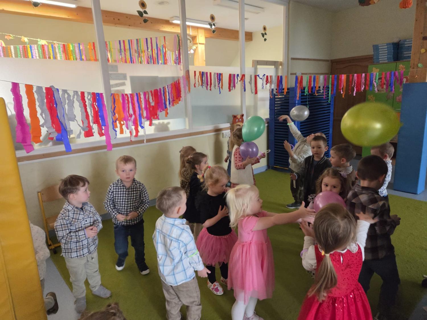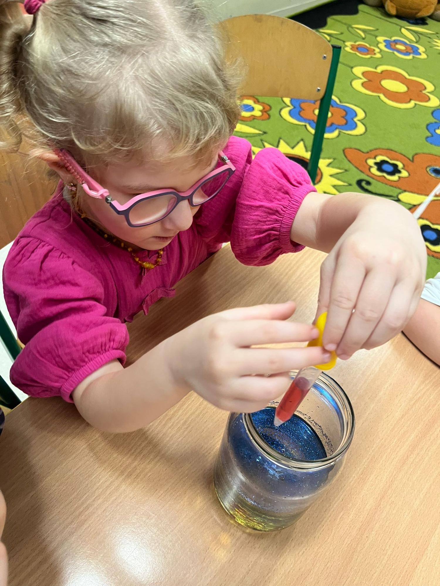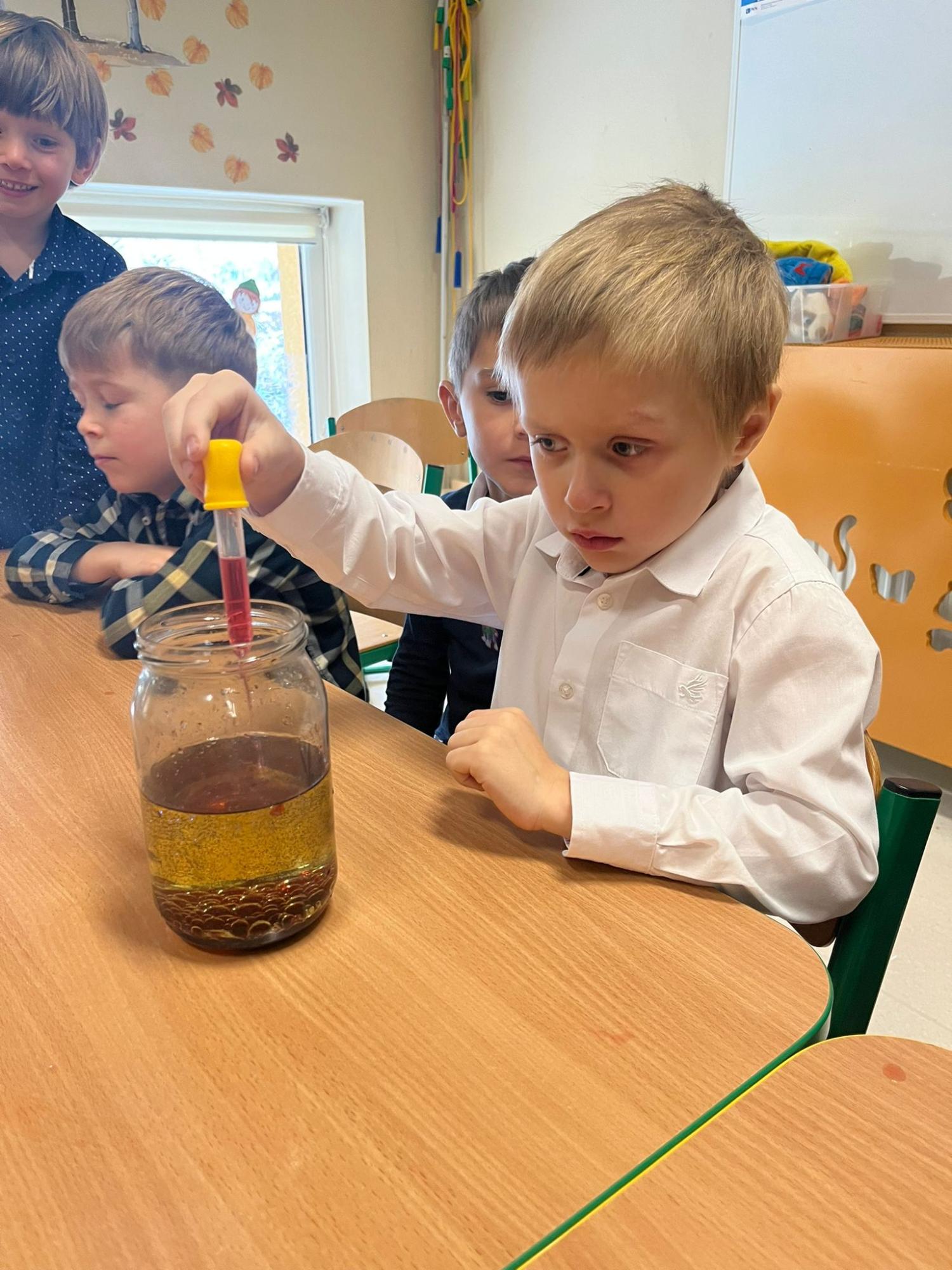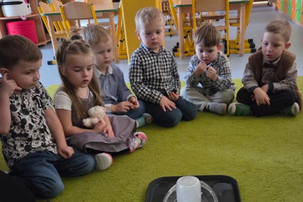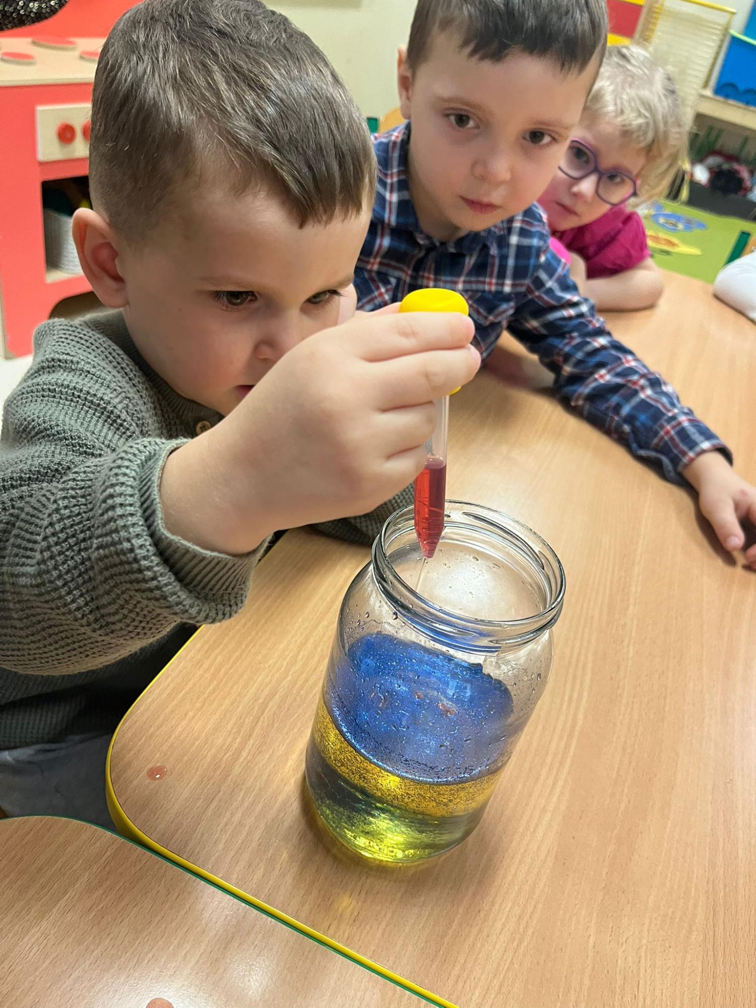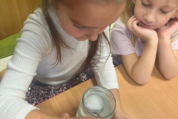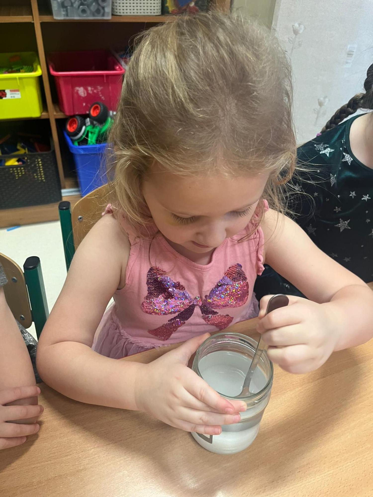 Dzieci miały możliwość zabawy cieczą nienewtonowską, którą same zrobiły, co sprawiło im wiele radości i wzbudziło ogromną ciekawość. Nie zabrakło zabaw ruchowych, tańców przy muzyce oraz wesołych zabaw z balonami. Na zakończenie na wszystkich czekał słodki poczęstunek.