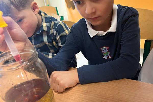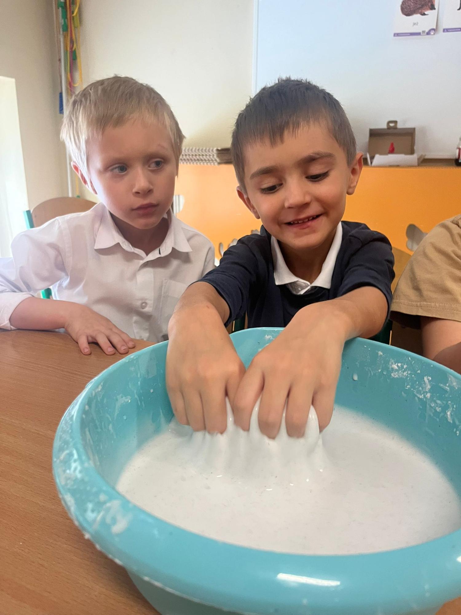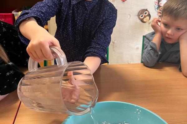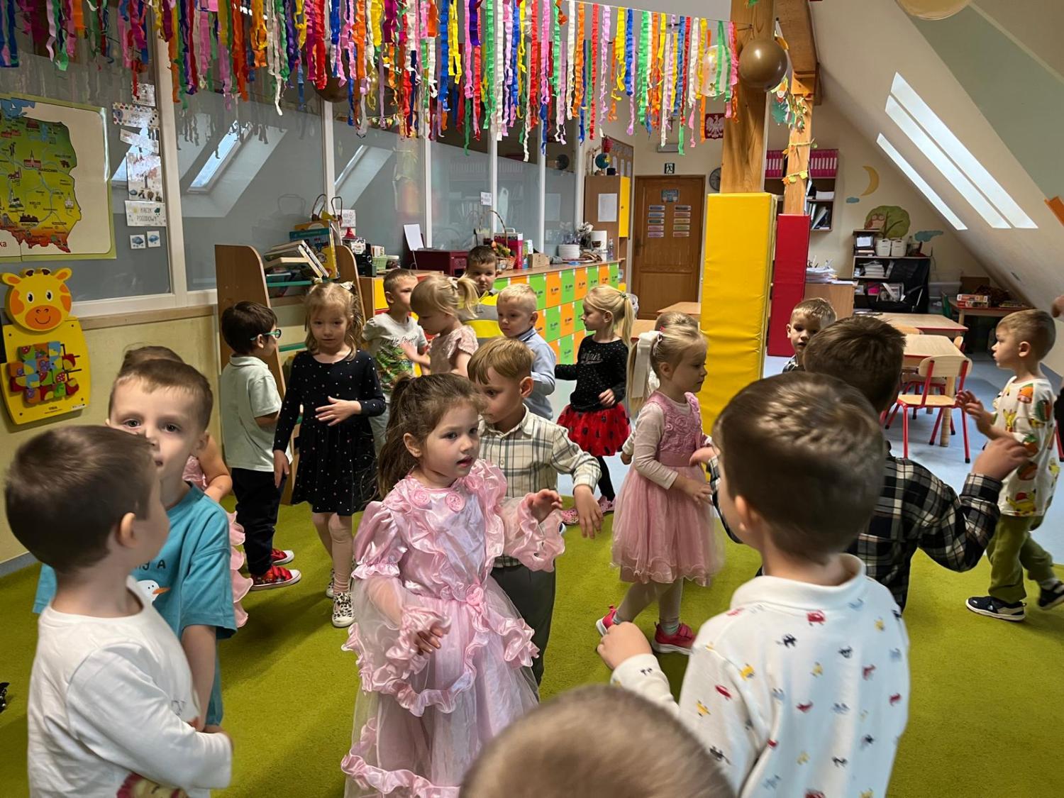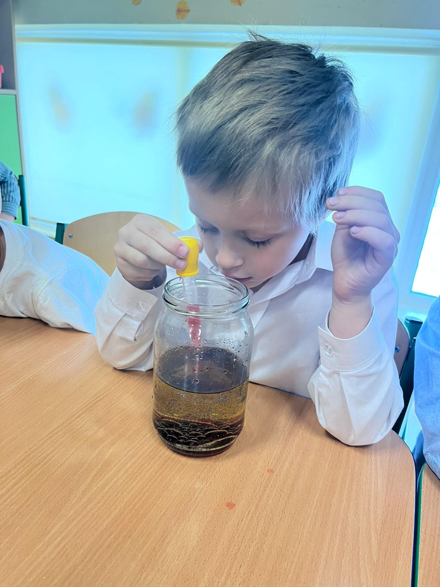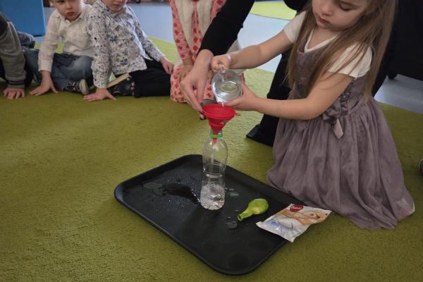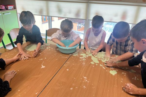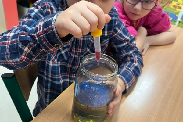 Dzieci miały możliwość zabawy cieczą nienewtonowską, którą same zrobiły, co sprawiło im wiele radości i wzbudziło ogromną ciekawość. Nie zabrakło zabaw ruchowych, tańców przy muzyce oraz wesołych zabaw z balonami. Na zakończenie na wszystkich czekał słodki poczęstunek.