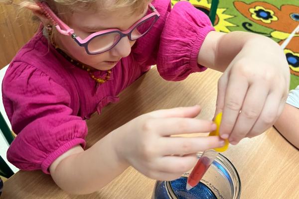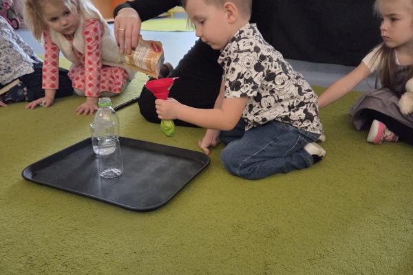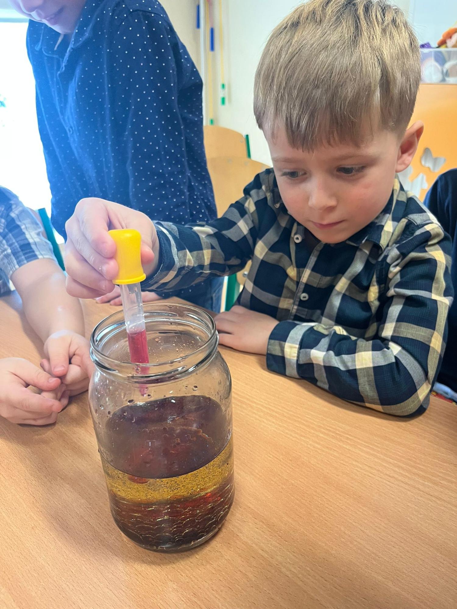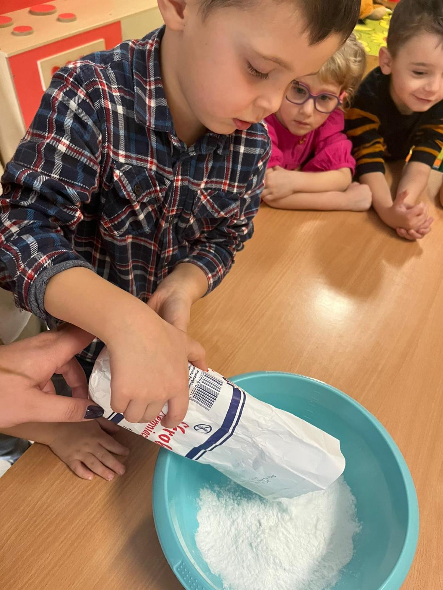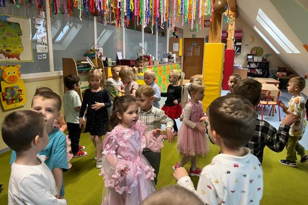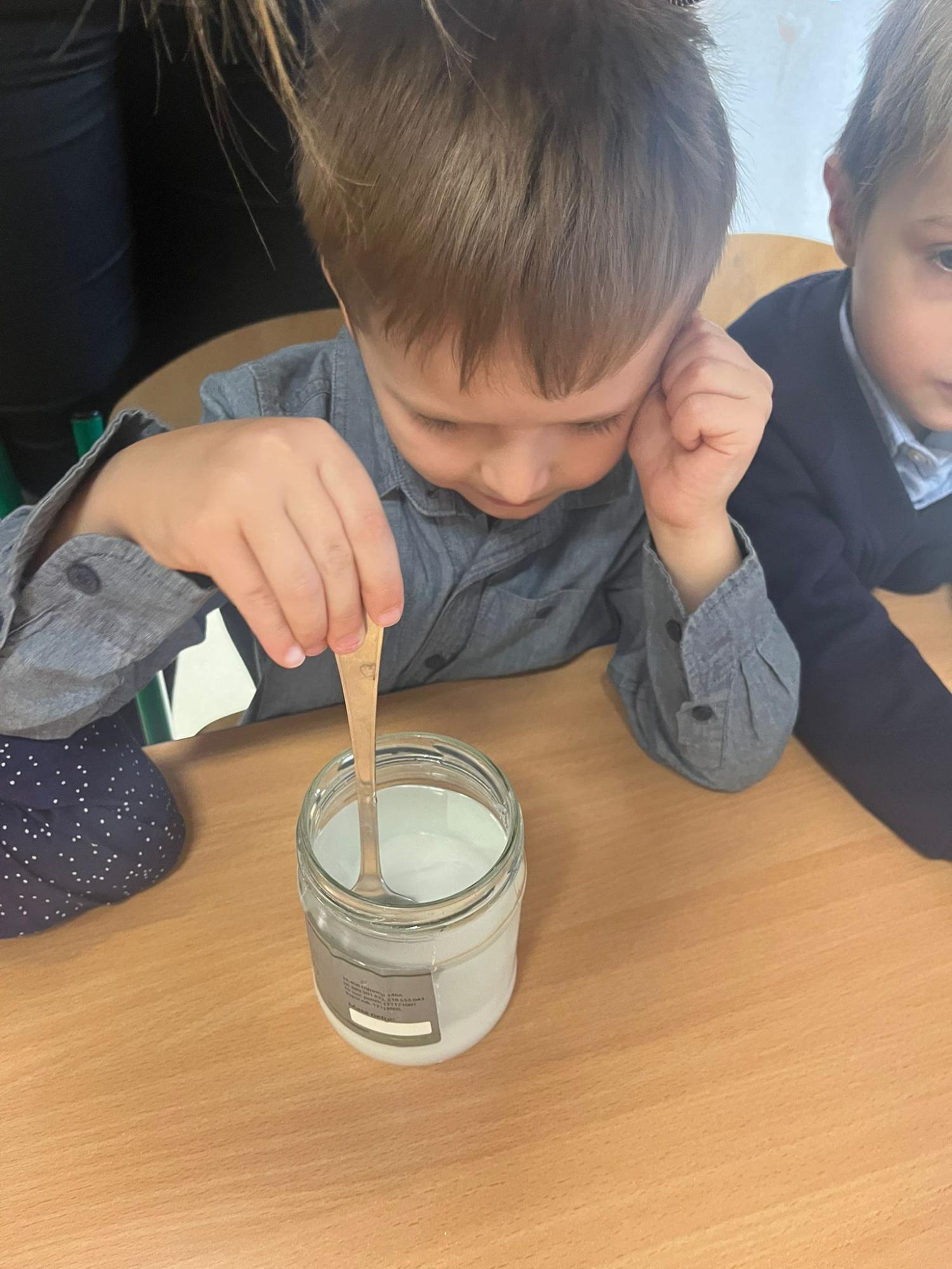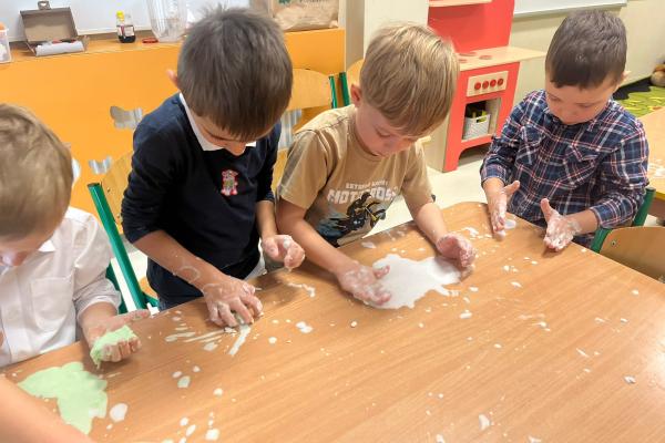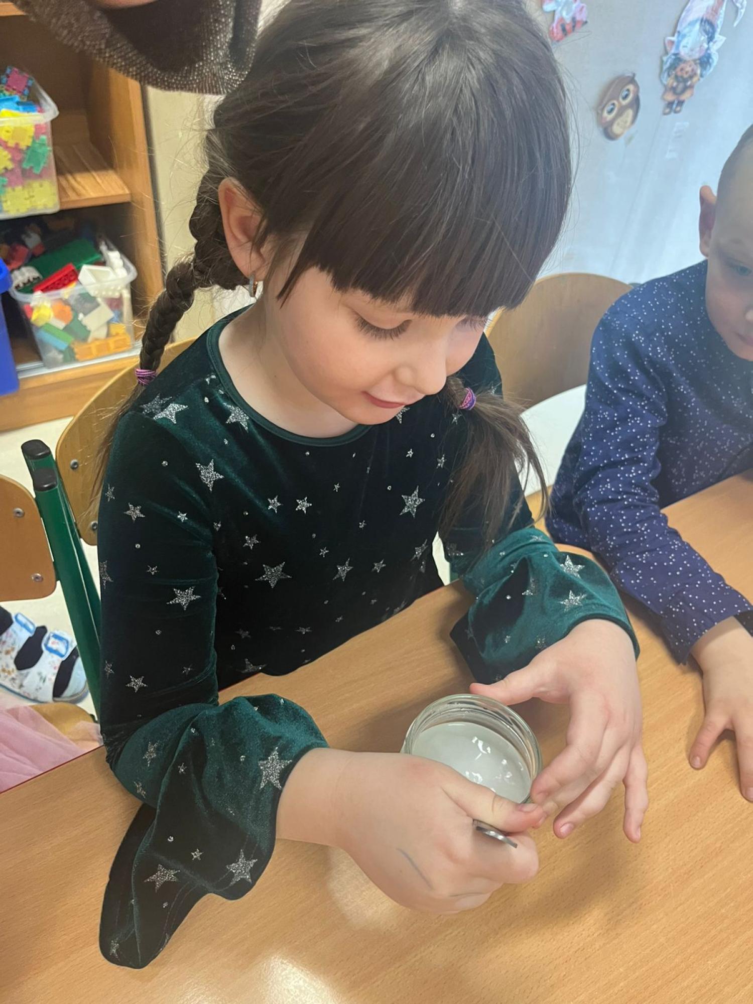 Dzieci miały możliwość zabawy cieczą nienewtonowską, którą same zrobiły, co sprawiło im wiele radości i wzbudziło ogromną ciekawość. Nie zabrakło zabaw ruchowych, tańców przy muzyce oraz wesołych zabaw z balonami. Na zakończenie na wszystkich czekał słodki poczęstunek.