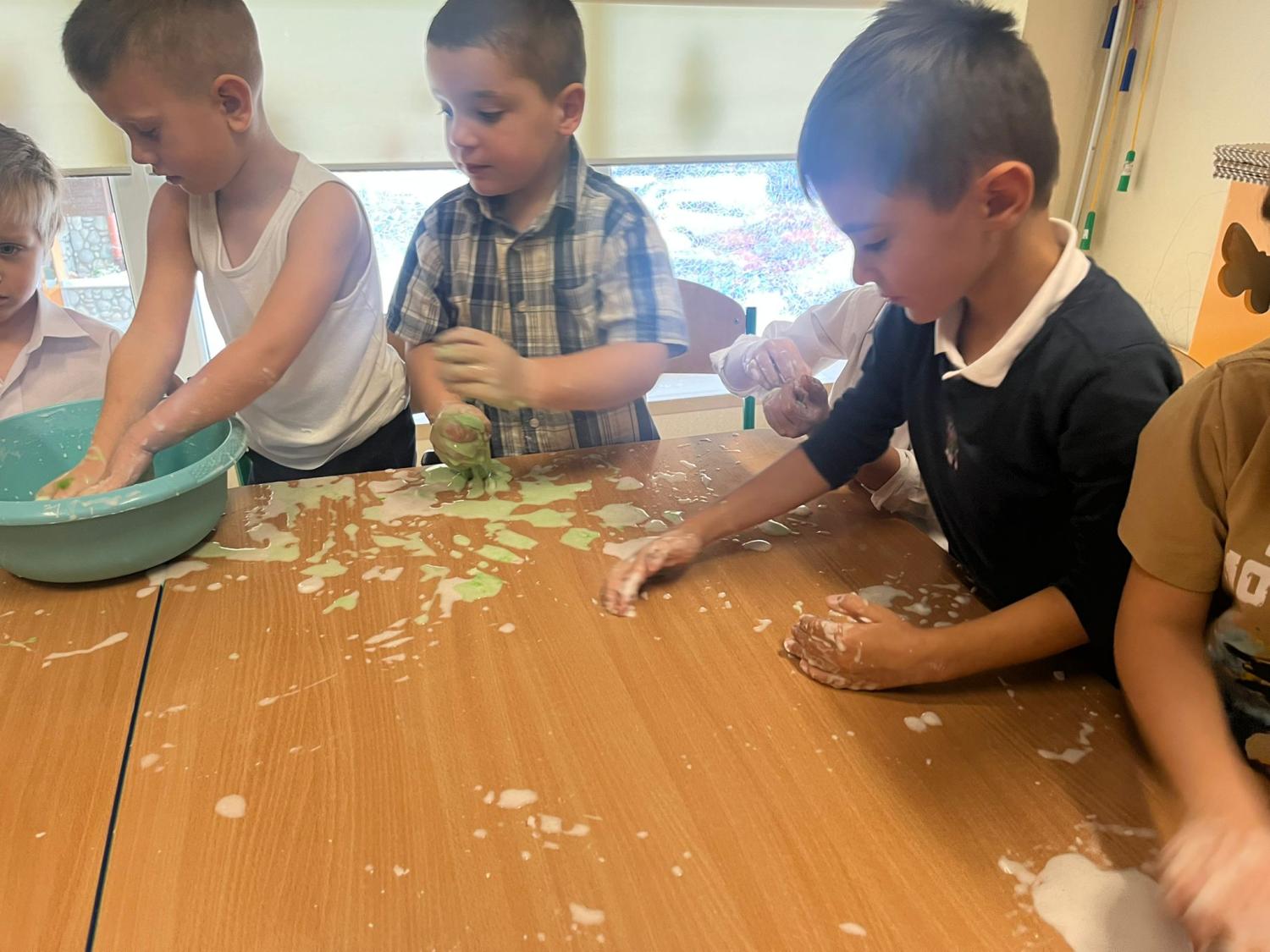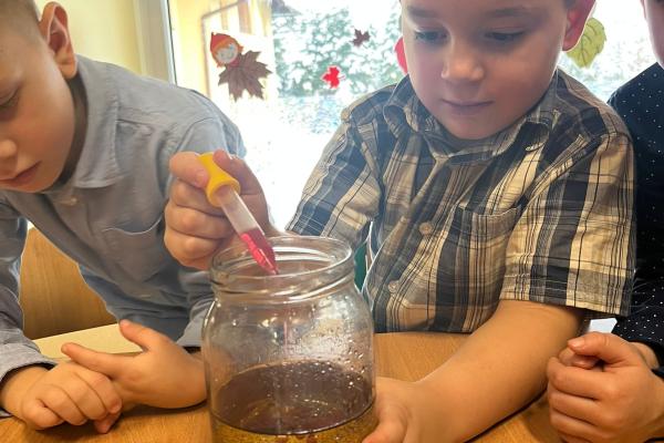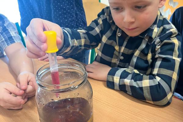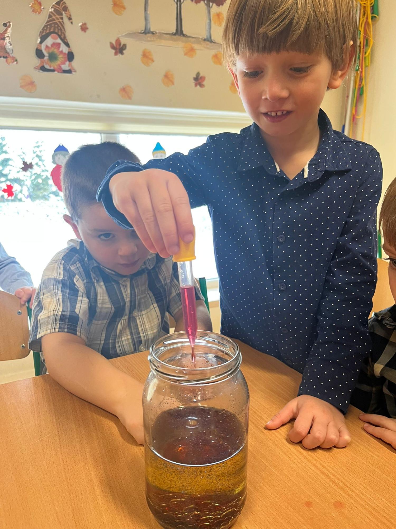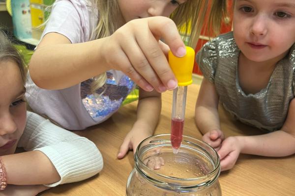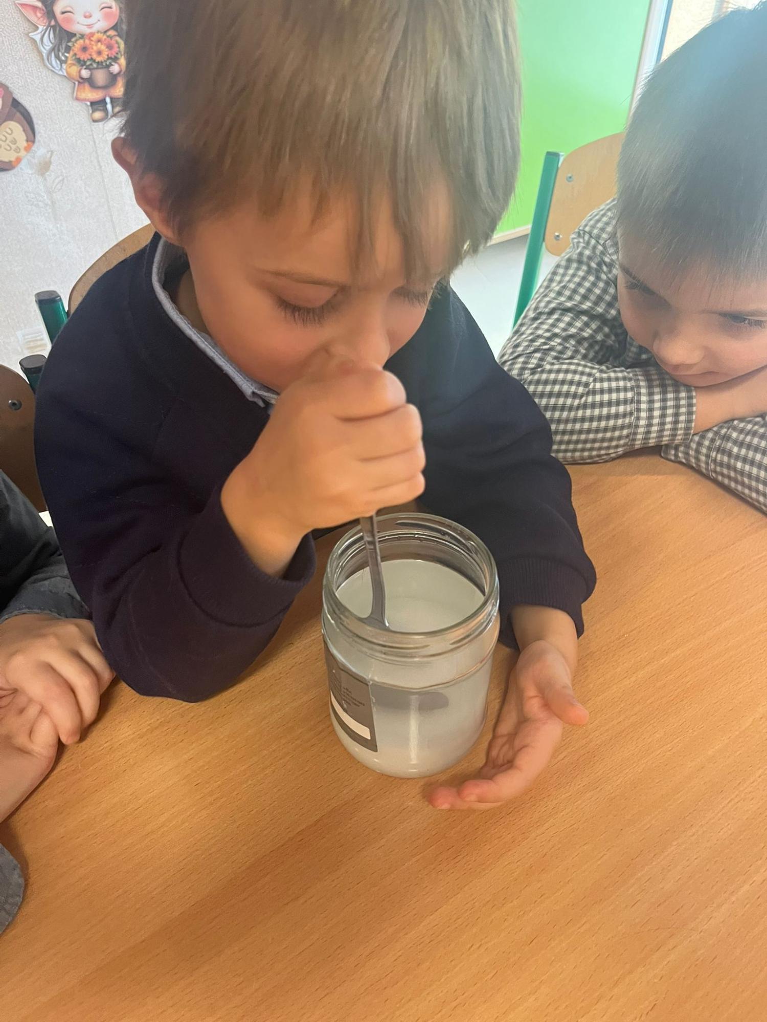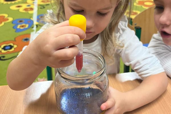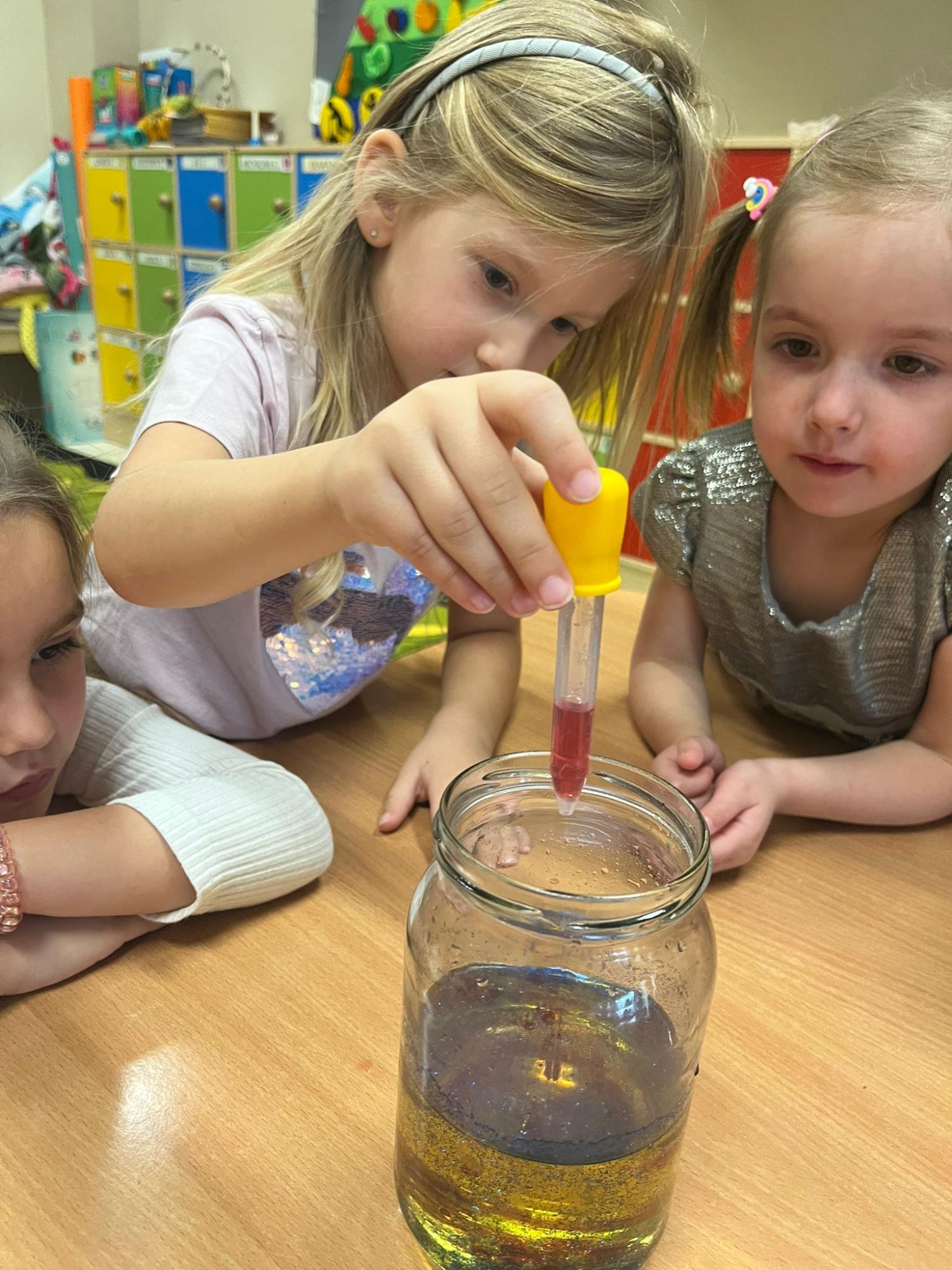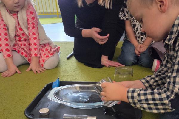 Dzieci miały możliwość zabawy cieczą nienewtonowską, którą same zrobiły, co sprawiło im wiele radości i wzbudziło ogromną ciekawość. Nie zabrakło zabaw ruchowych, tańców przy muzyce oraz wesołych zabaw z balonami. Na zakończenie na wszystkich czekał słodki poczęstunek.