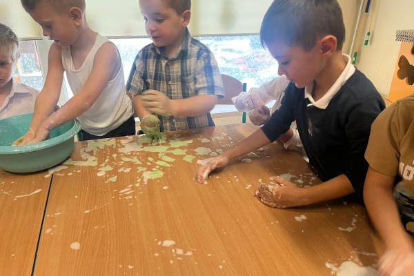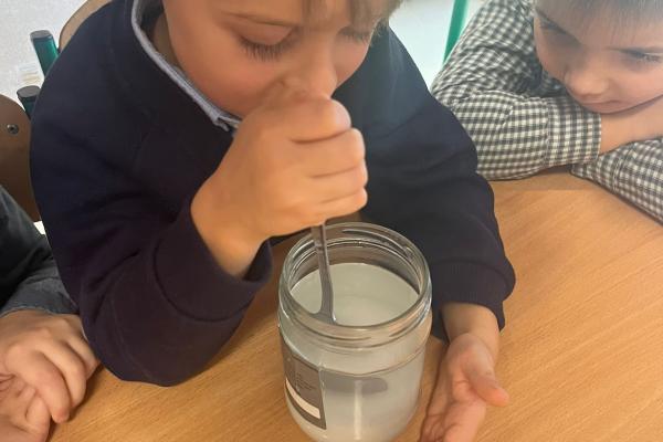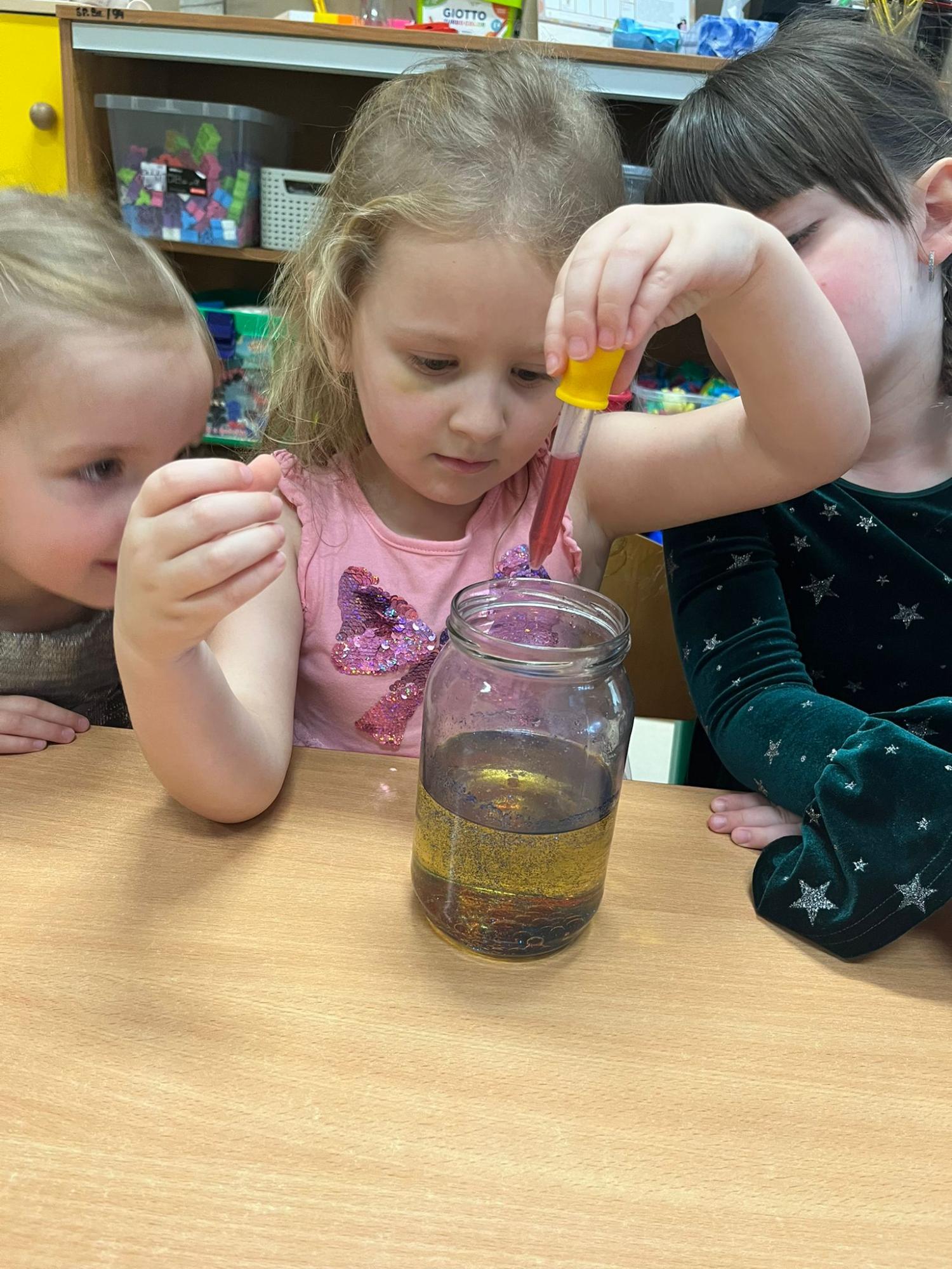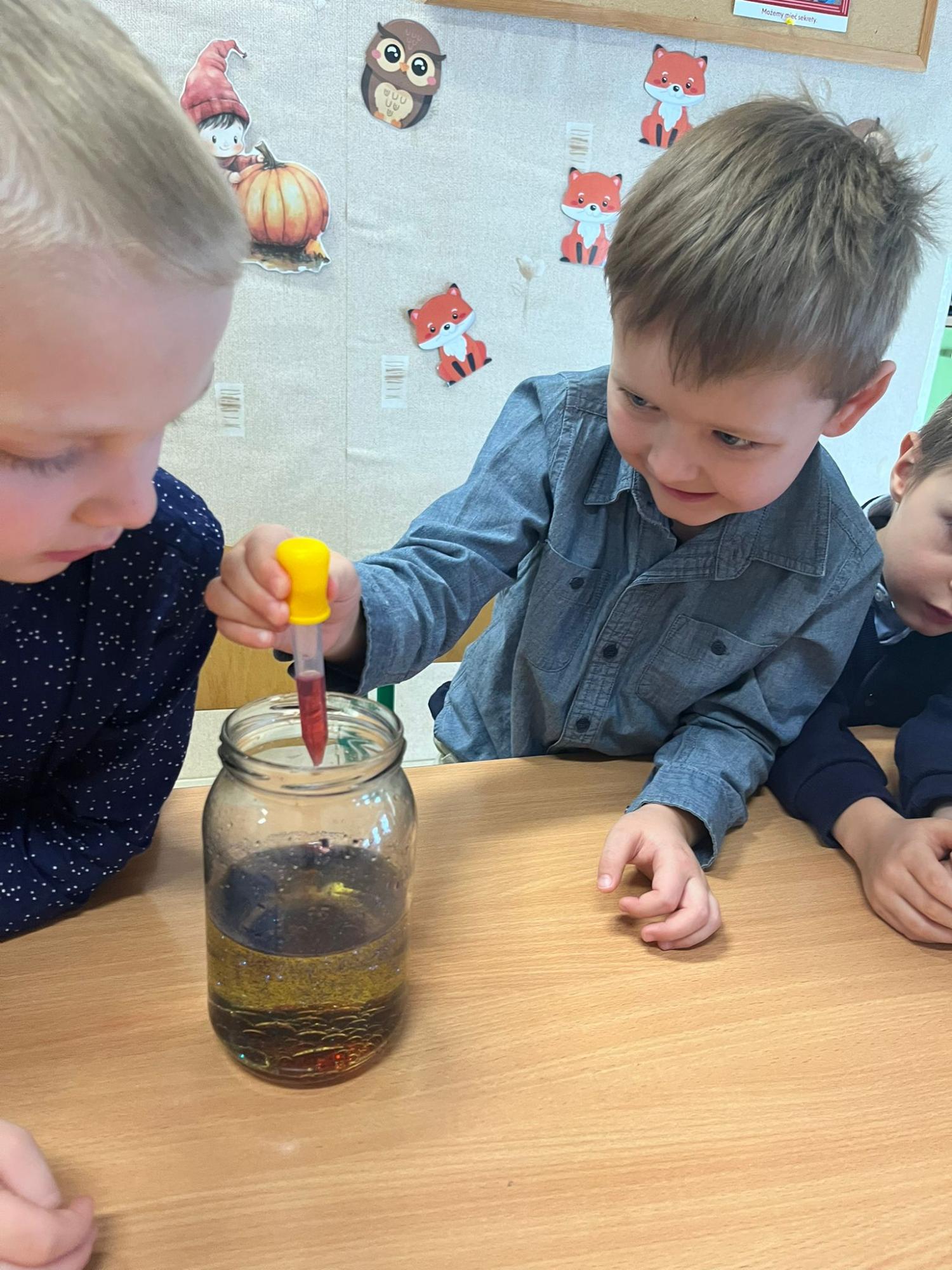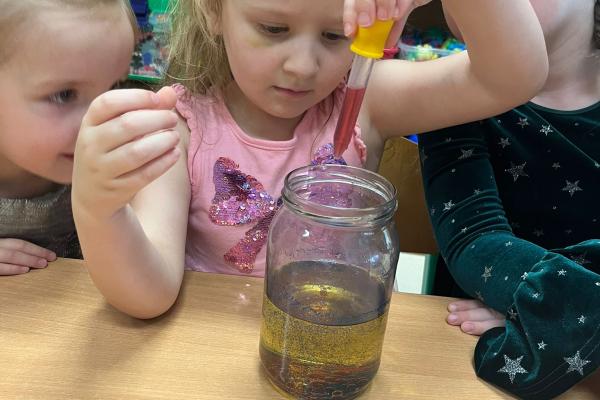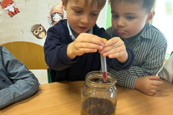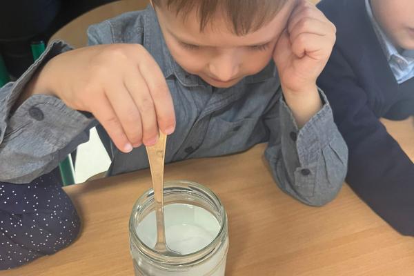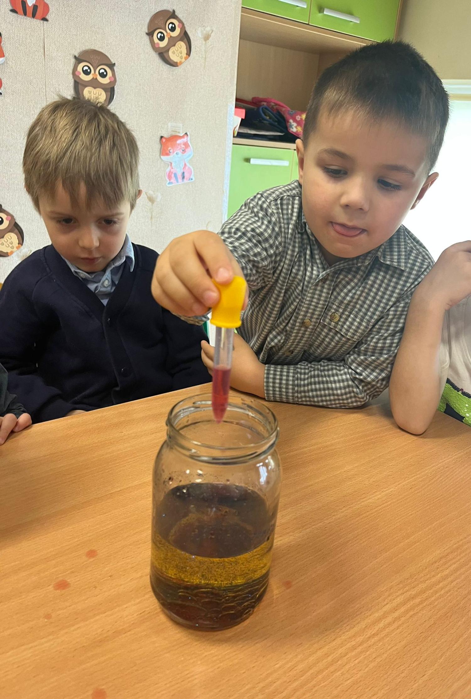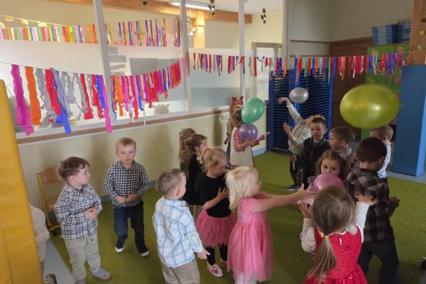 Dzieci miały możliwość zabawy cieczą nienewtonowską, którą same zrobiły, co sprawiło im wiele radości i wzbudziło ogromną ciekawość. Nie zabrakło zabaw ruchowych, tańców przy muzyce oraz wesołych zabaw z balonami. Na zakończenie na wszystkich czekał słodki poczęstunek.
