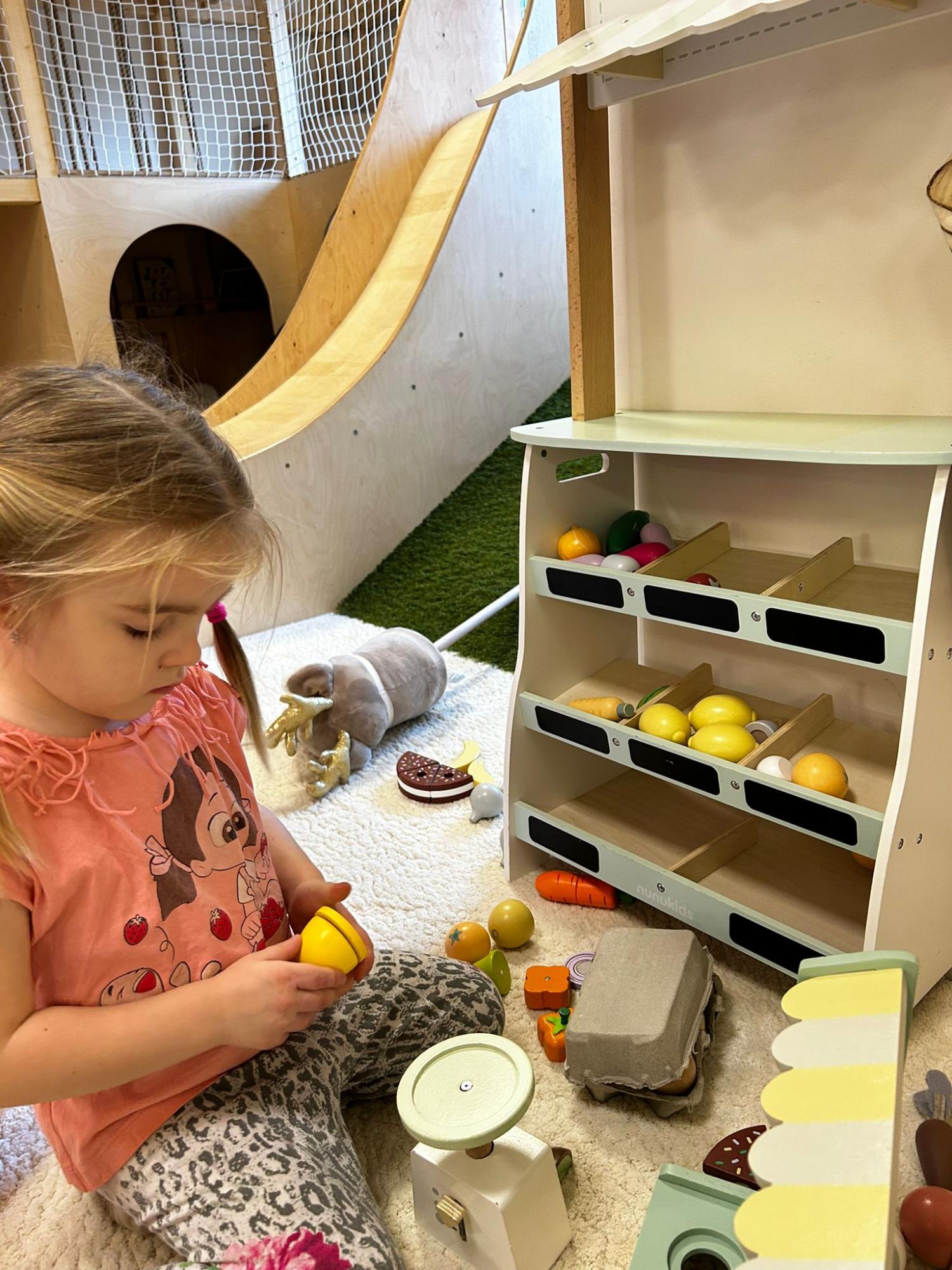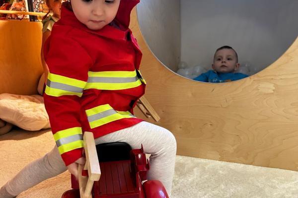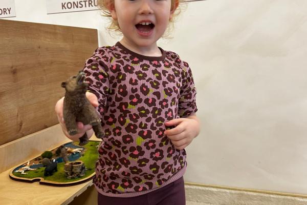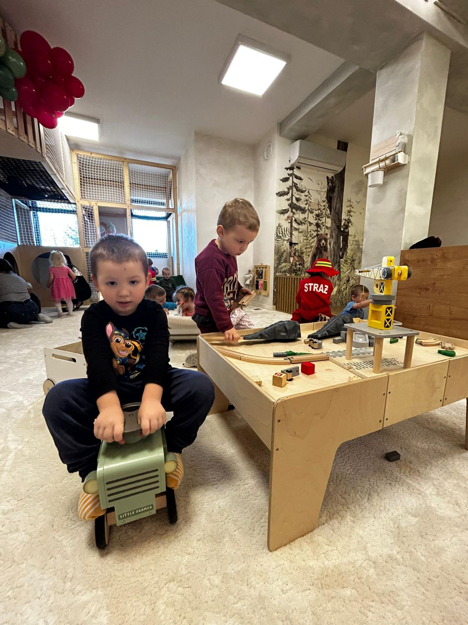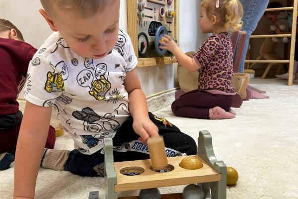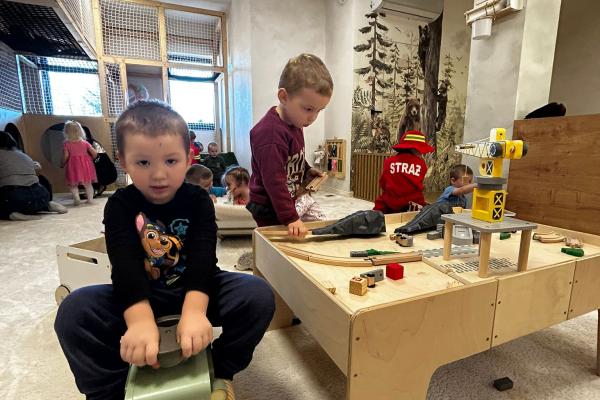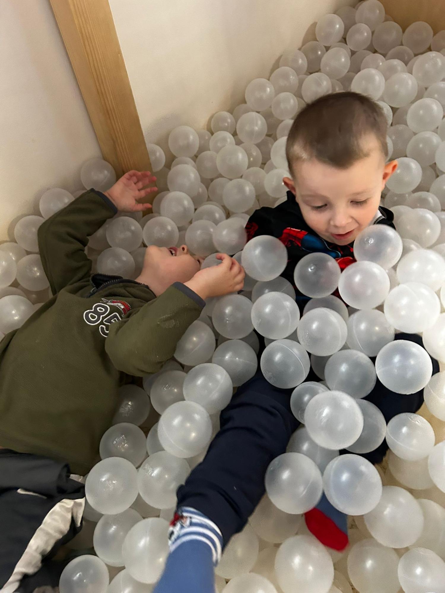 Po zajęciach przyszedł czas na swobodną zabawę. Dzieci mogły wcielać się w różne zawody dzięki licznym atrybutom, korzystać z zabawek sensorycznych, tablic manipulacyjnych, zjeżdżalni, autek, kącika z książkami oraz oczywiście z uwielbianych kulek. Dużo emocji dostarczyła także konstrukcja do wspinania, która zachęcała do aktywności i pokonywania małych wyzwań.