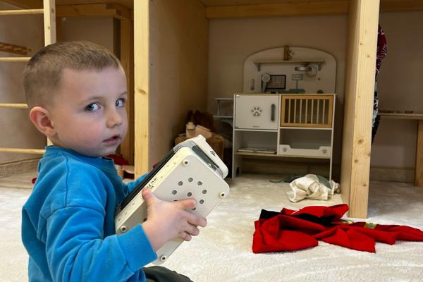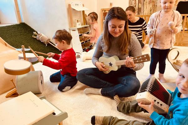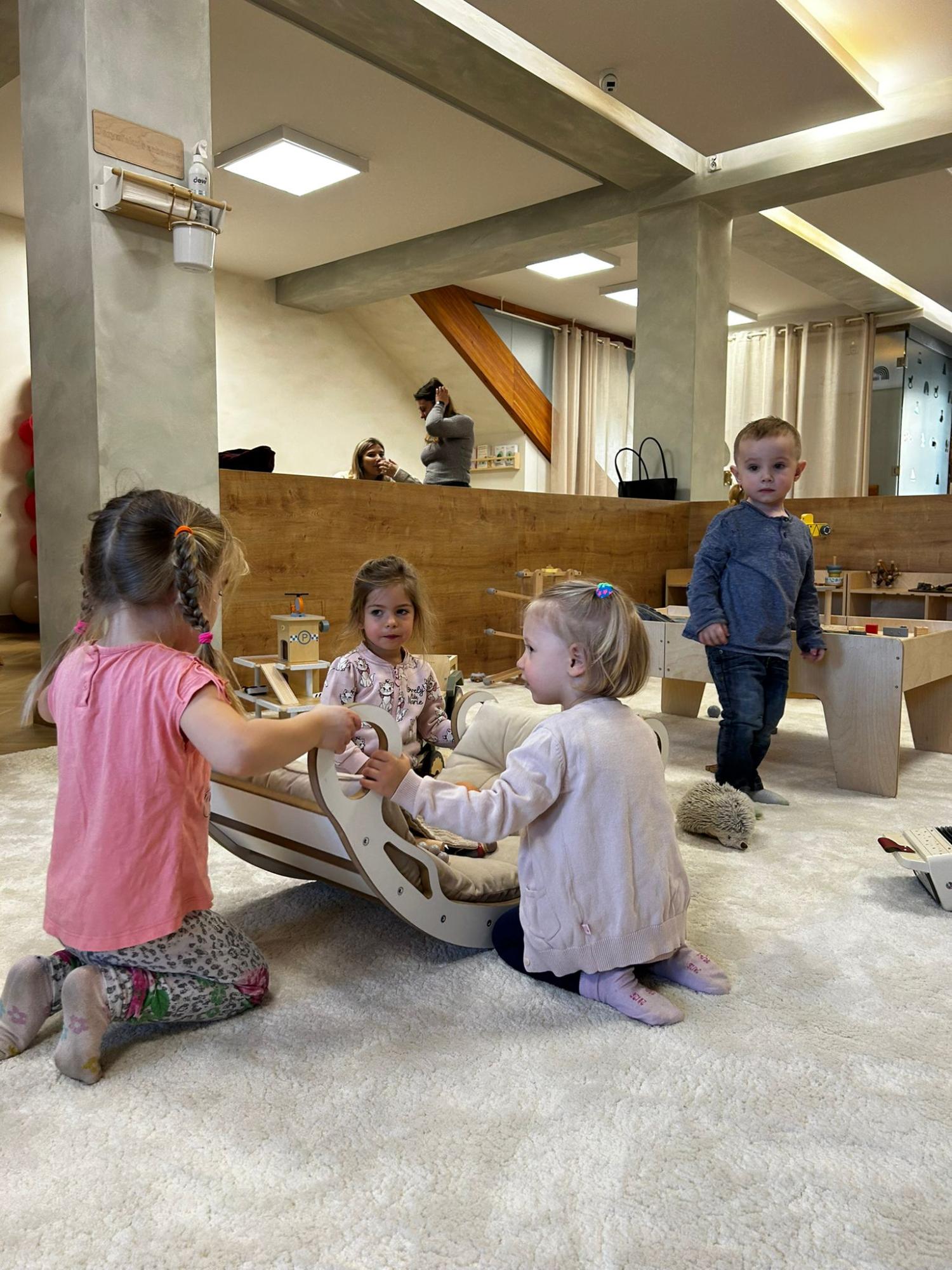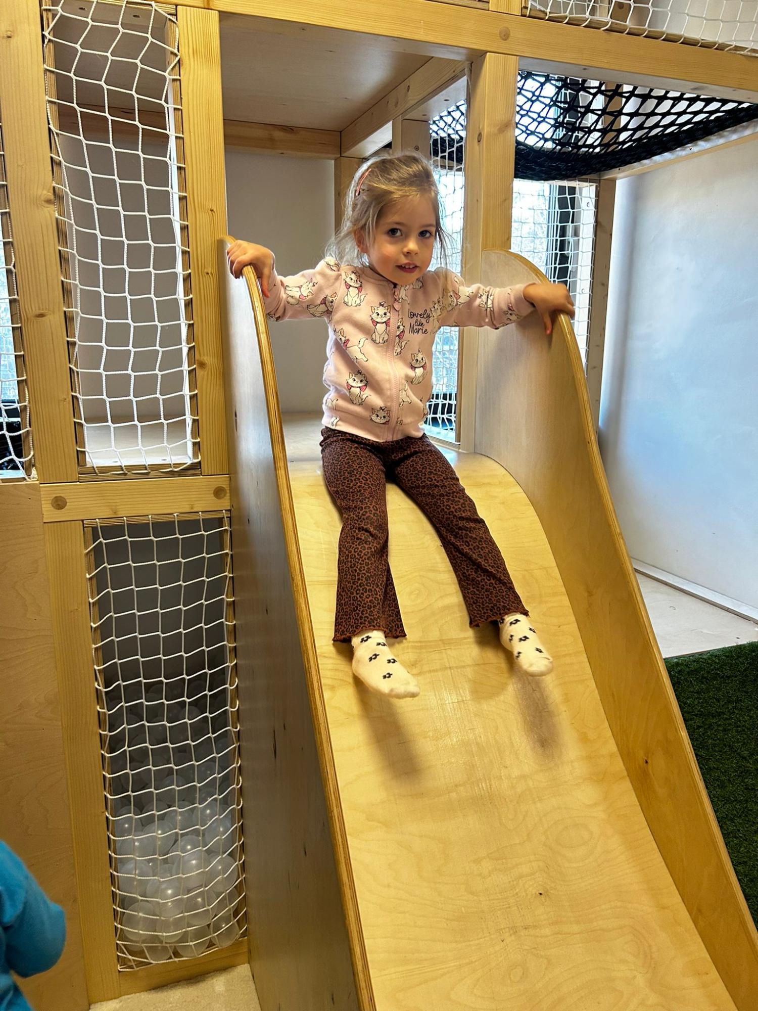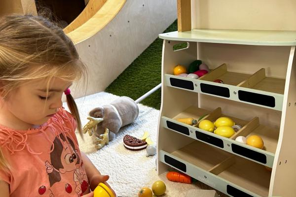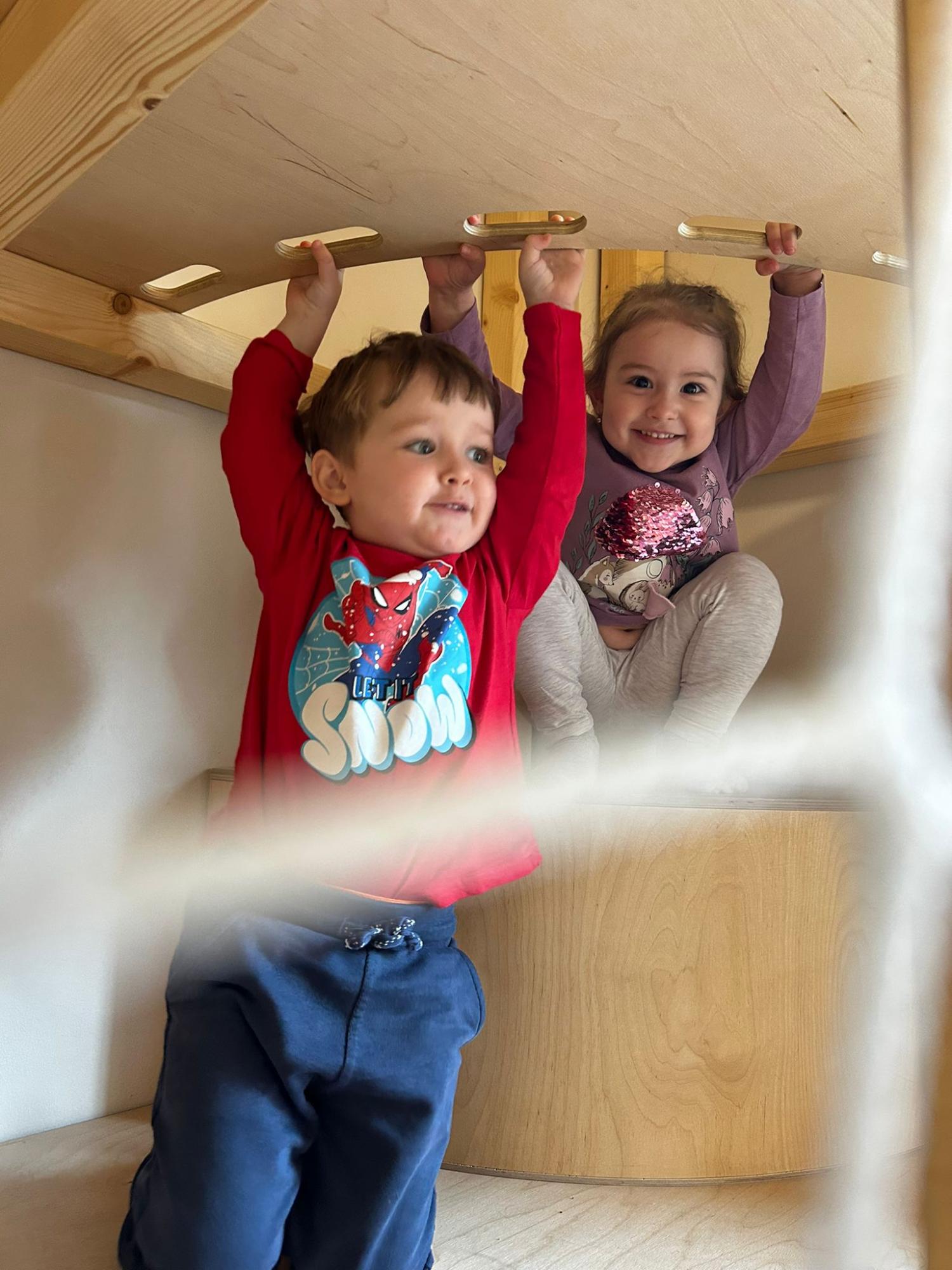 Po zajęciach przyszedł czas na swobodną zabawę. Dzieci mogły wcielać się w różne zawody dzięki licznym atrybutom, korzystać z zabawek sensorycznych, tablic manipulacyjnych, zjeżdżalni, autek, kącika z książkami oraz oczywiście z uwielbianych kulek. Dużo emocji dostarczyła także konstrukcja do wspinania, która zachęcała do aktywności i pokonywania małych wyzwań.