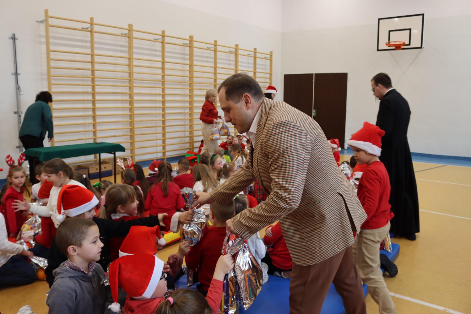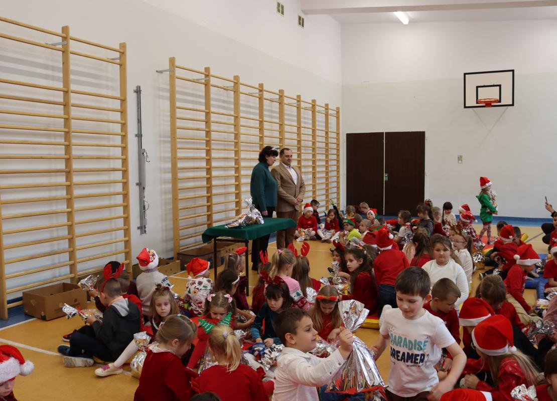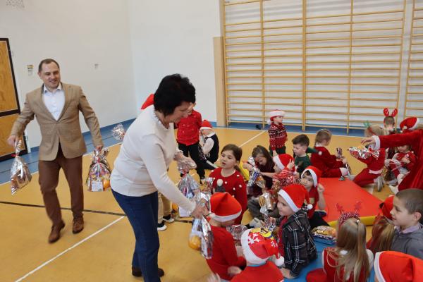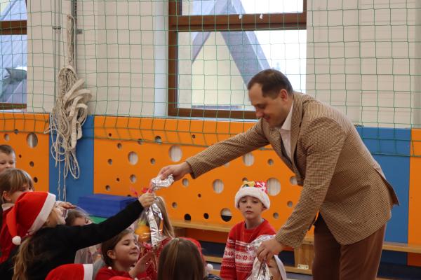 5 grudnia 2025 roku był dla najmłodszych uczniów naszej szkoły dniem pełnym radości i miłych wrażeń. Tego dnia odwiedził nas Wójt Gminy Bukowina Tatrzańska – pan Andrzej Pietrzyk. Jak co roku, obdarował on wszystkich przedszkolaków oraz uczniów klas pierwszych paczkami mikołajkowymi, a także złożył serdeczne życzenia bożonarodzeniowe.