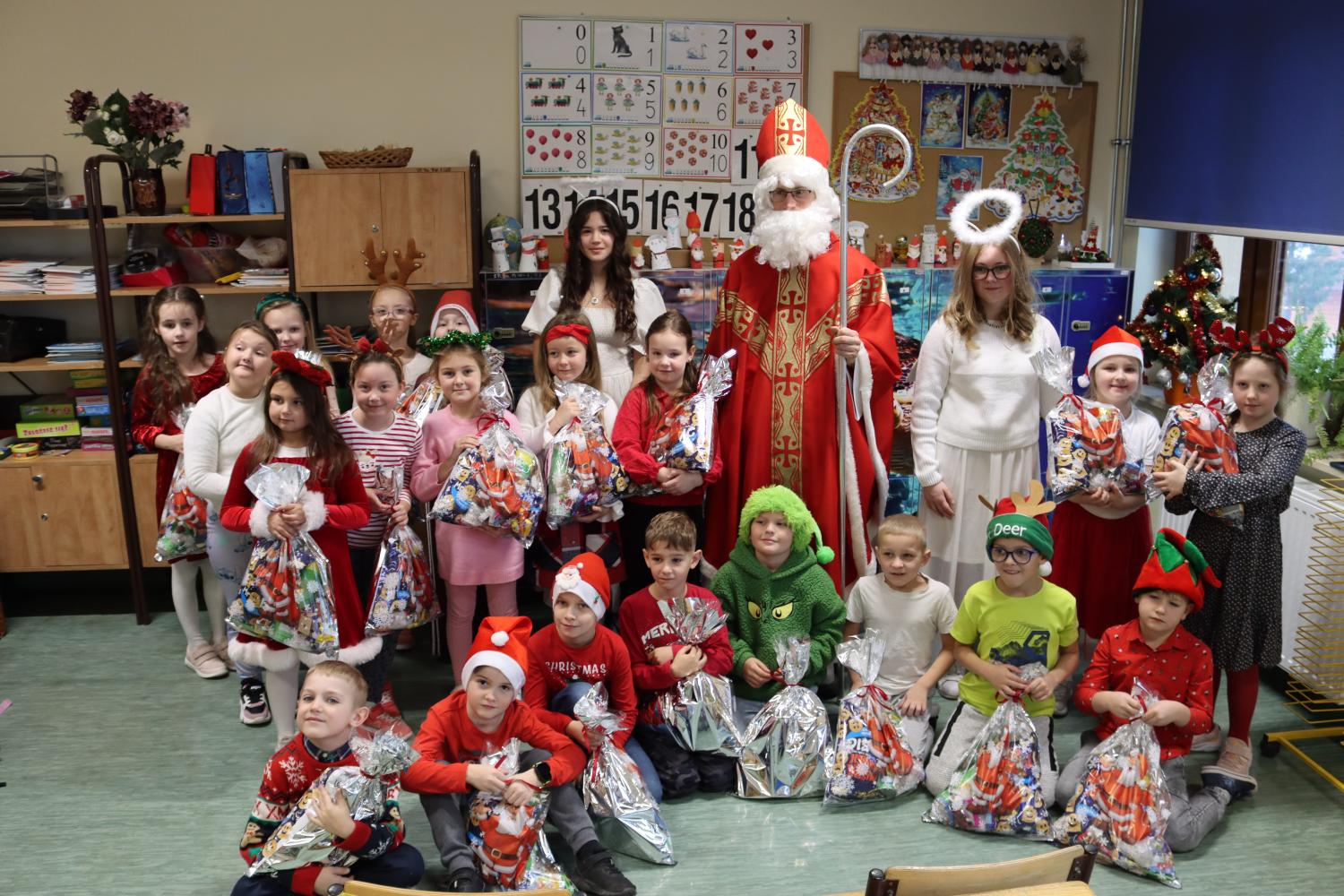 Mikołajki były doskonałą okazją do integracji klasowej, wspólnej zabawy i wprowadzenia najmłodszych w magiczny, bożonarodzeniowy nastrój.