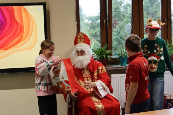 Największą atrakcją były oczywiście upominki od Mikołaja, które sprawiły uczniom ogromną radość. Każdy mógł poczuć wyjątkowy, świąteczny klimat i cieszyć się z otrzymanych niespodzianek.