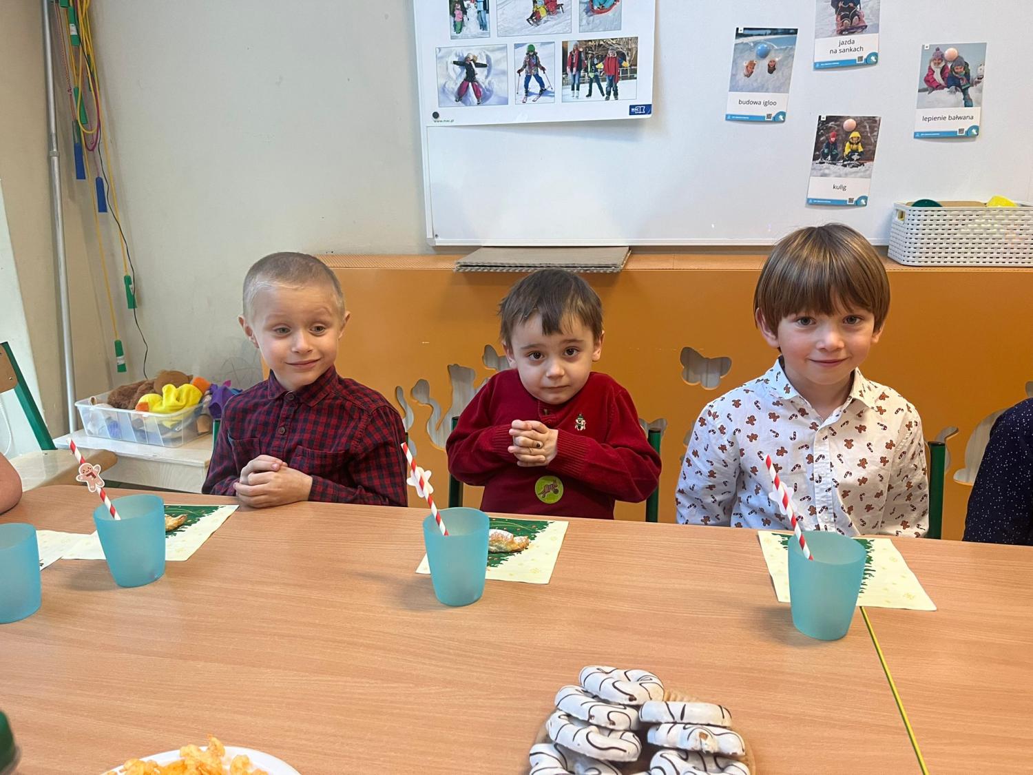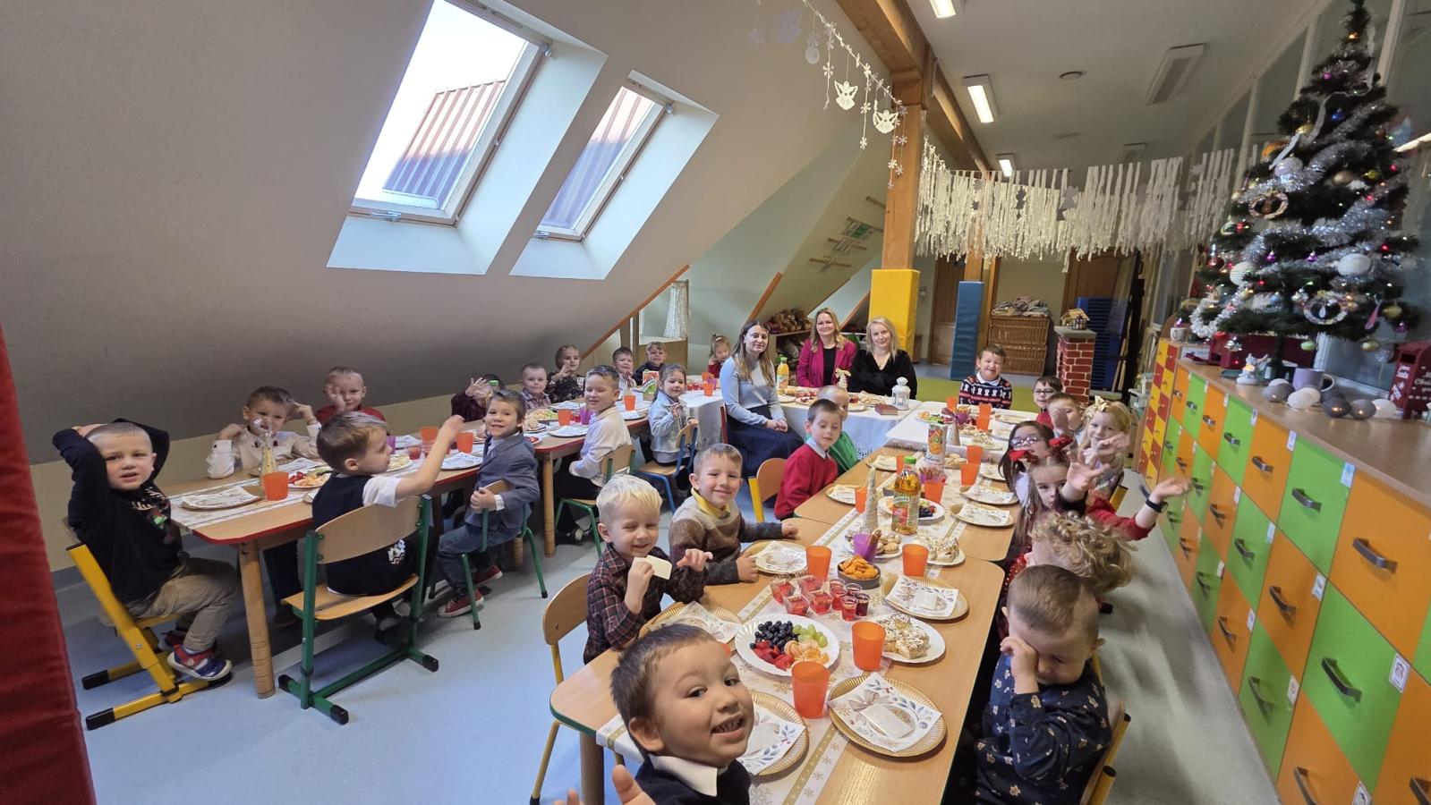 Dzieci dzieliły się opłatkiem, składały sobie świąteczne życzenia oraz kolędowały, wprowadzając wszystkich w magiczny nastrój nadchodzących Świąt Bożego Narodzenia. Nie zabrakło również uroczystego, wigilijnego poczęstunku oraz rozmów o świątecznych tradycjach. Był to czas wspólnego bycia razem, budowania więzi i kultywowania pięknych polskich zwyczajów.