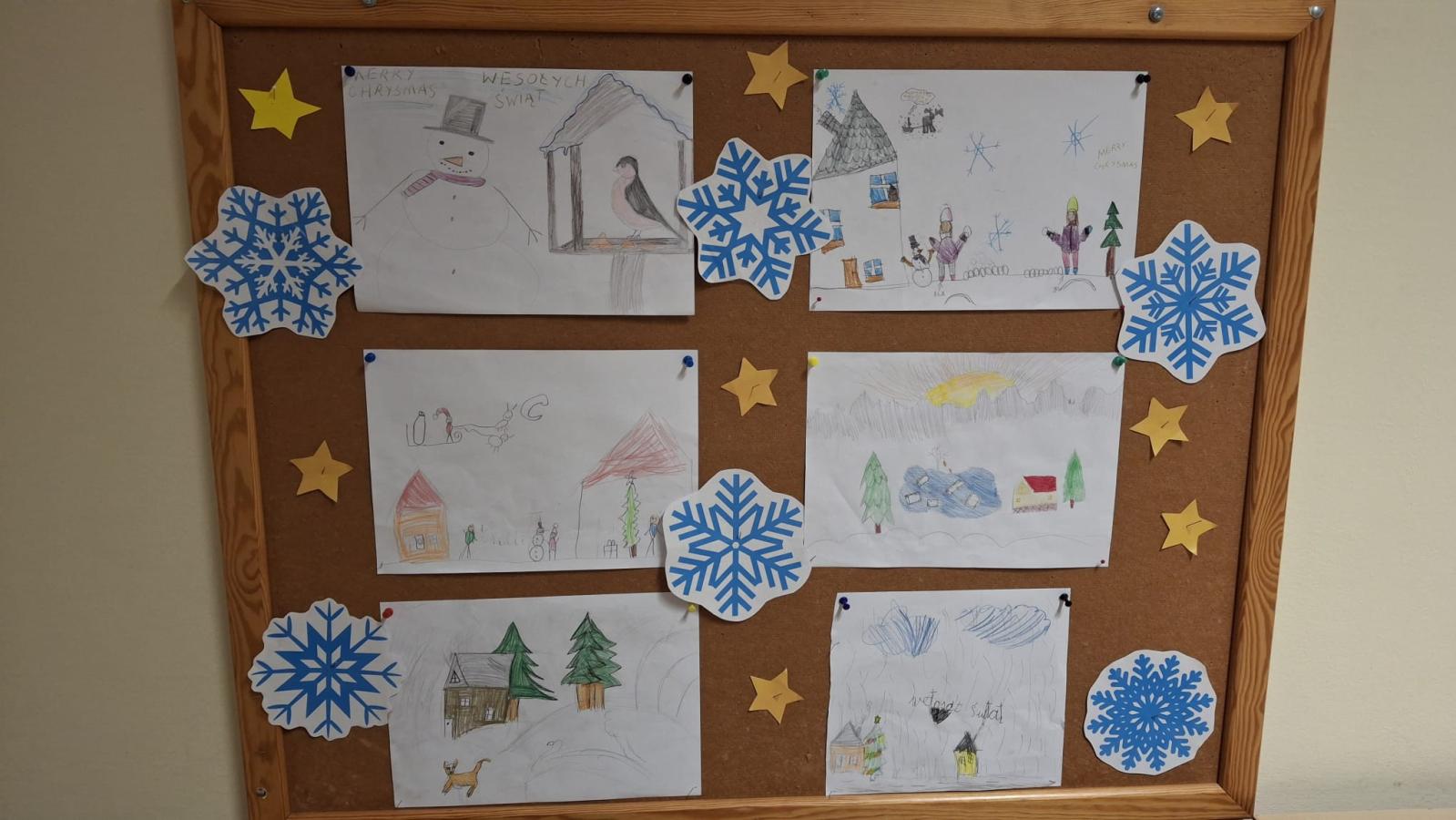 Powstałe prace zostały zaprezentowane na świetlicowej wystawie i wprowadziły zimowy klimat do szkolnej przestrzeni. Zadanie styczniowe sprawiło dzieciom wiele radości i było wartościowym połączeniem nauki, twórczości i dobrej zabawy.