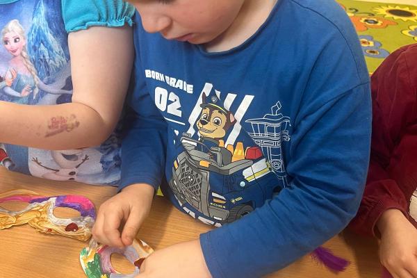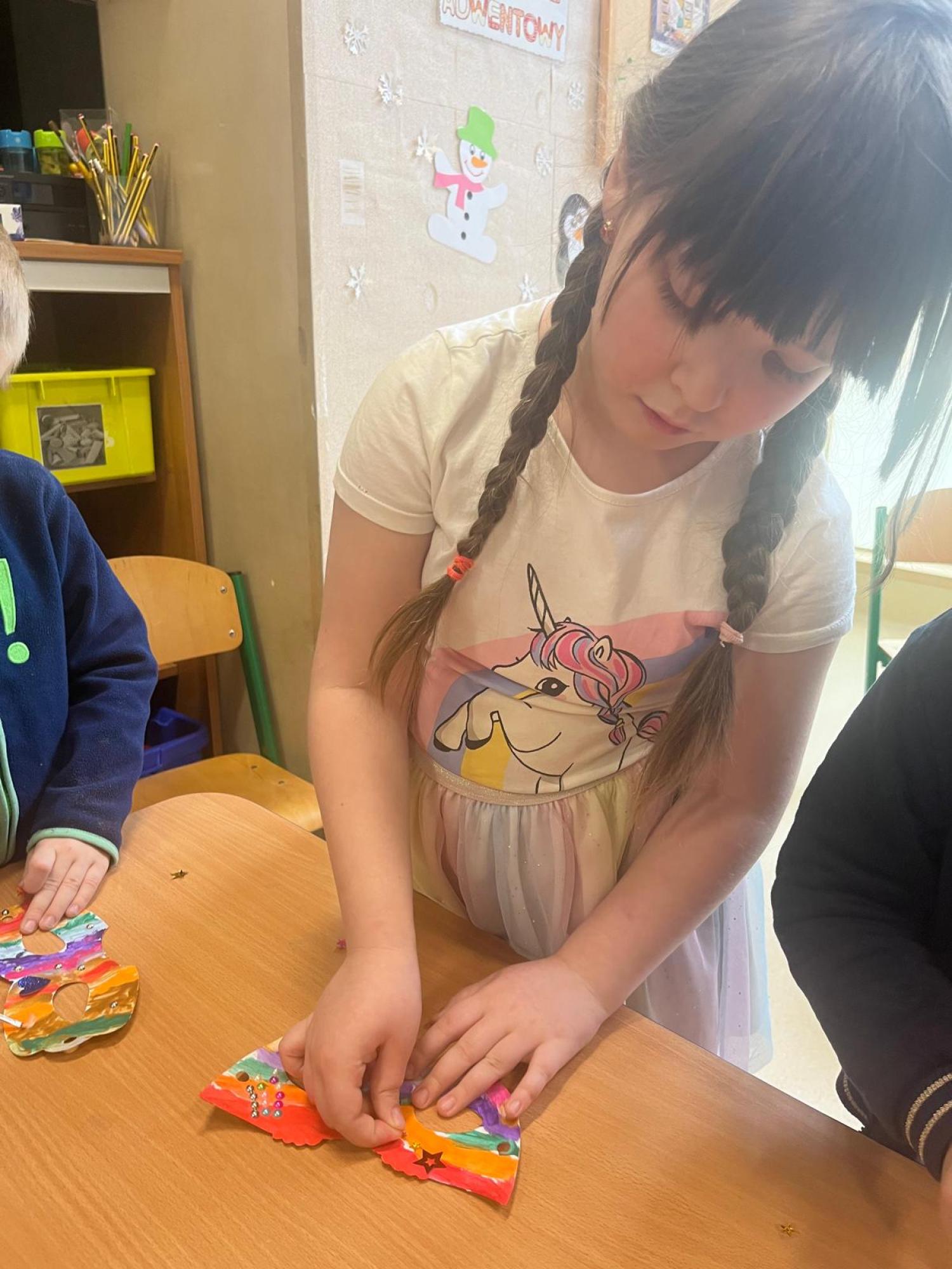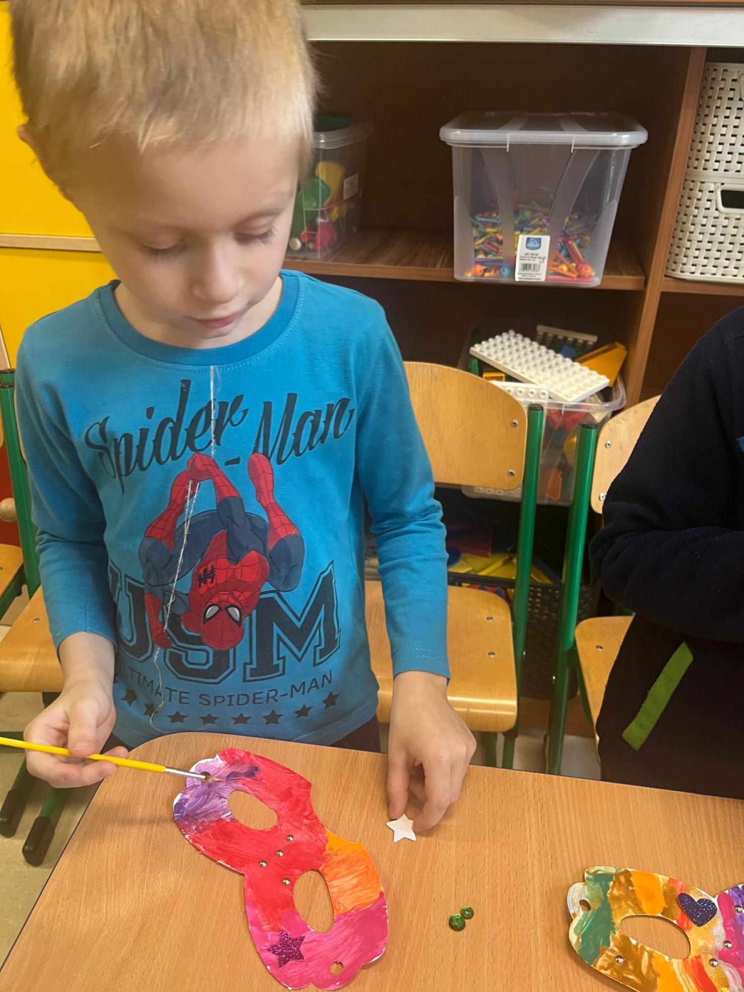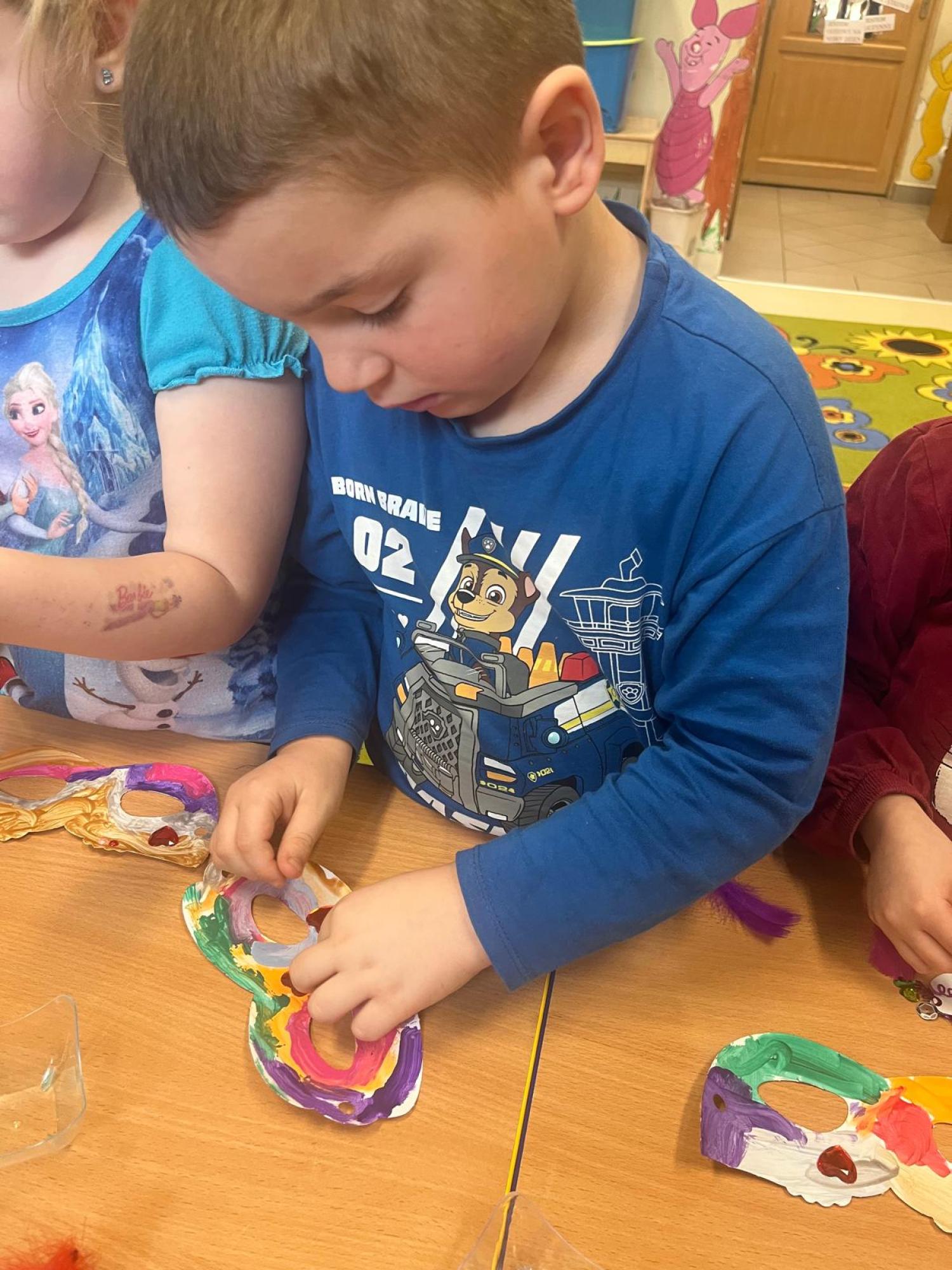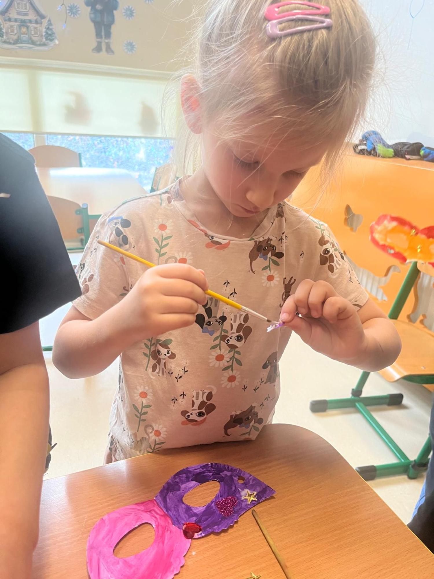 Podczas zajęć karnawałowych dzieci z grupy Wirki Ciekawości z radością tworzyły barwne maski karnawałowe, rozwijając swoją kreatywność i zdolności plastyczne.