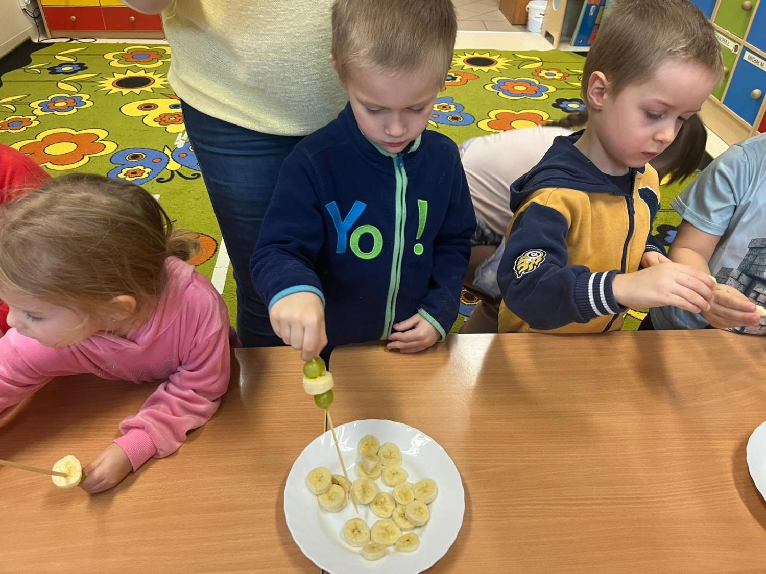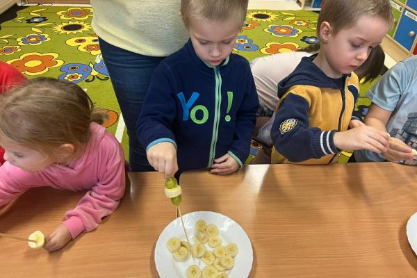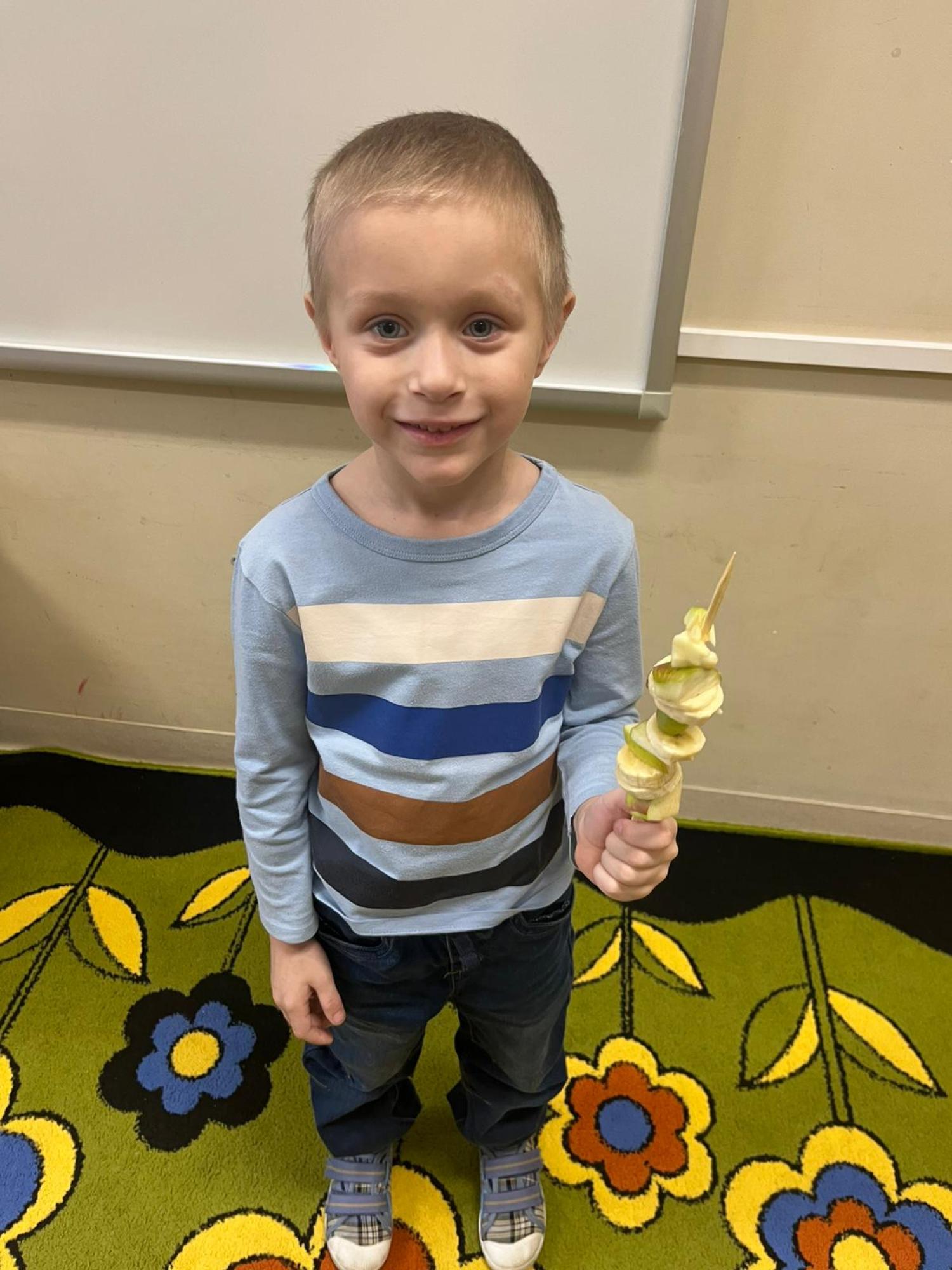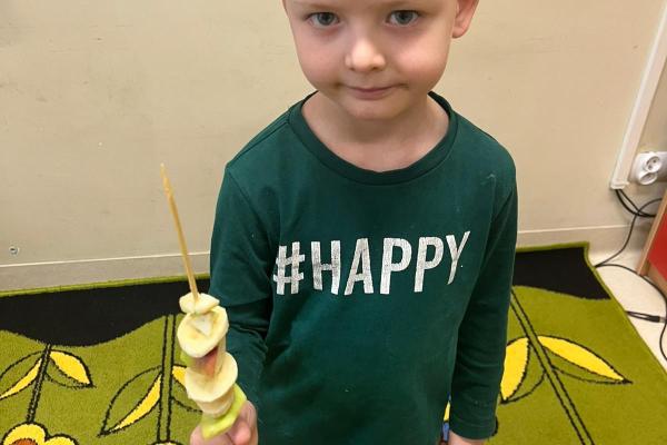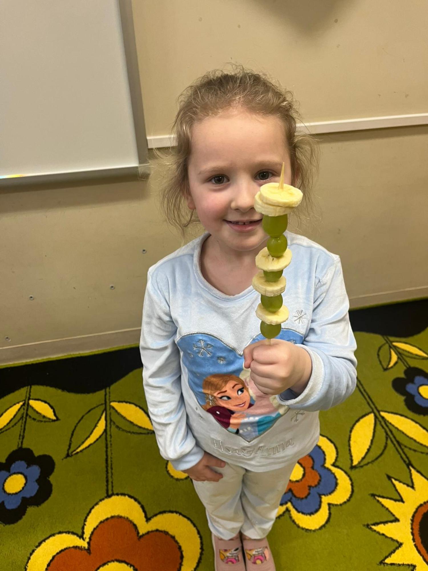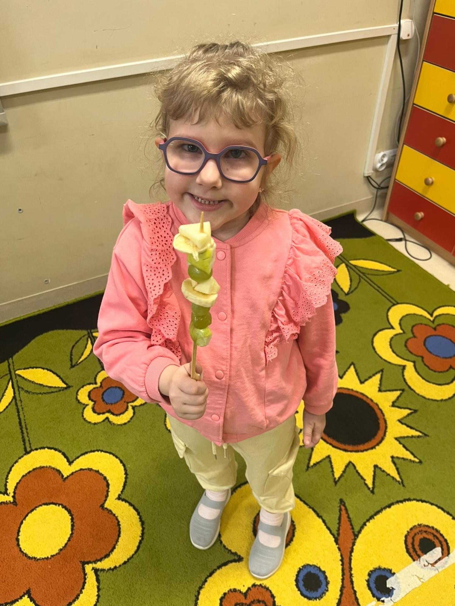 Dzieci przygotowały zdrową przekąskę na bal – kolorowe, owocowe szaszłyki, ucząc się zasad zdrowego odżywiania i współpracy. Zajęcia upłynęły w radosnej, karnawałowej atmosferze i były doskonałym połączeniem zabawy oraz nauki.