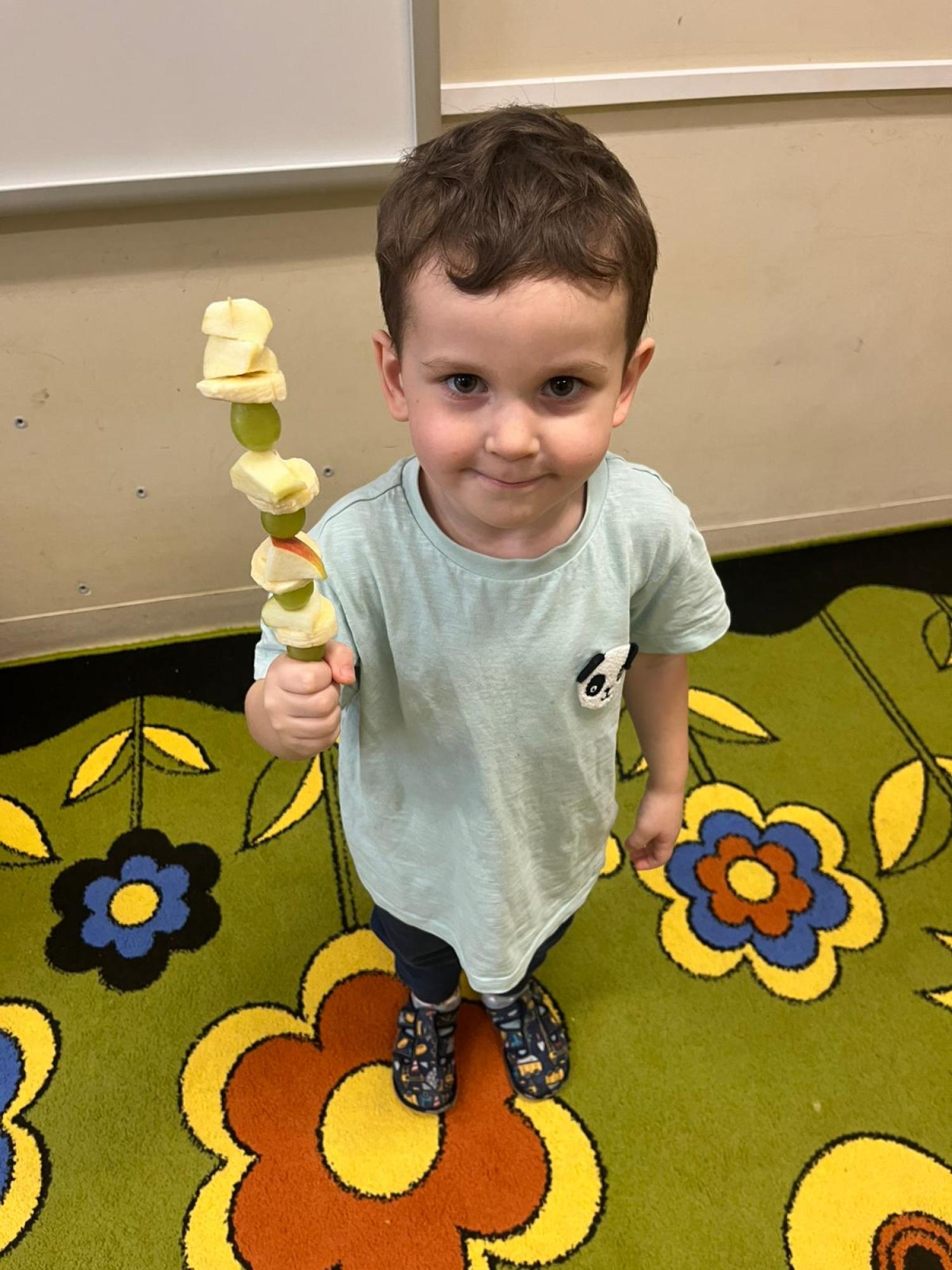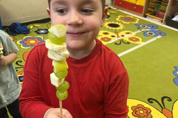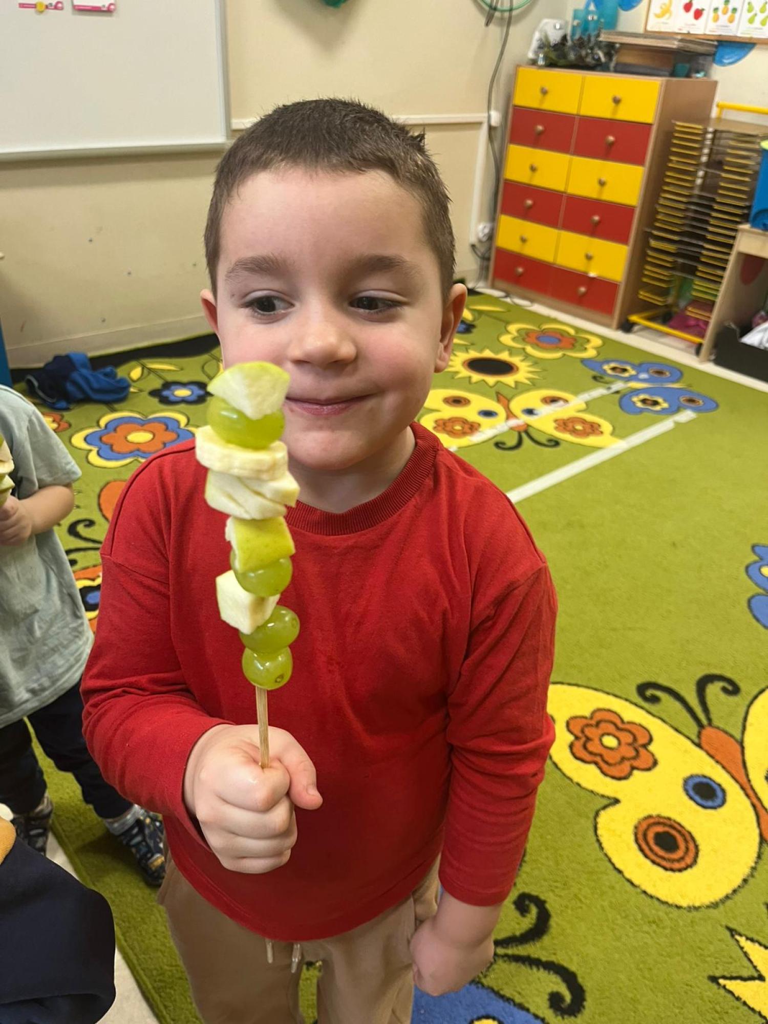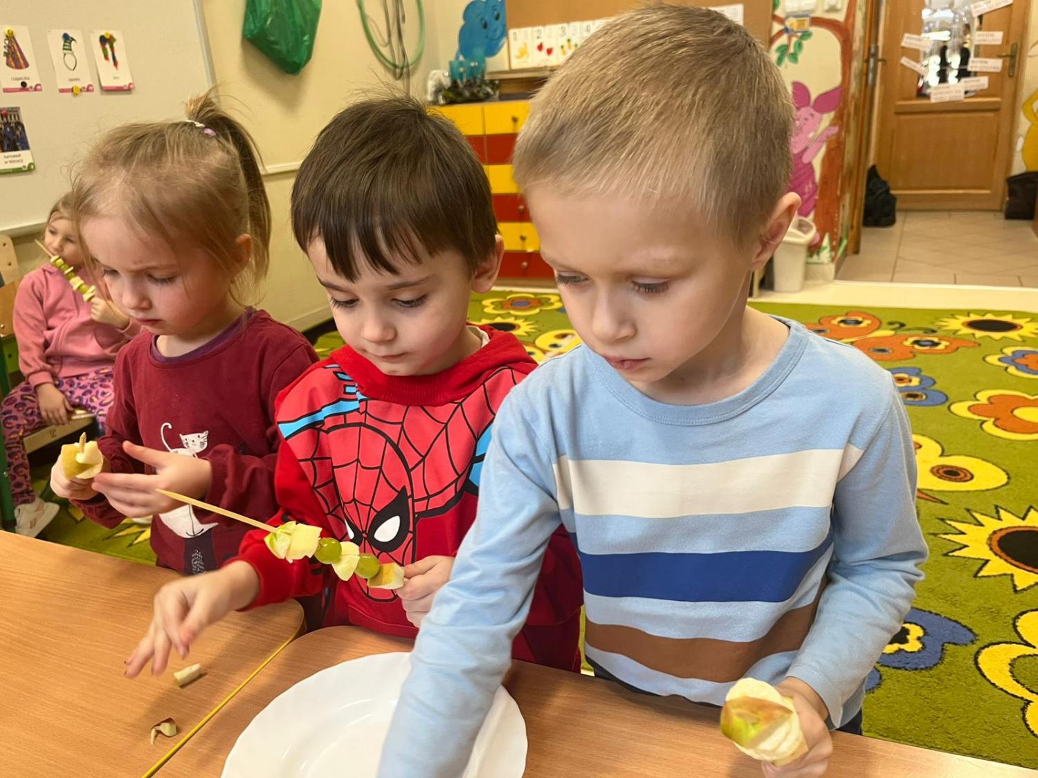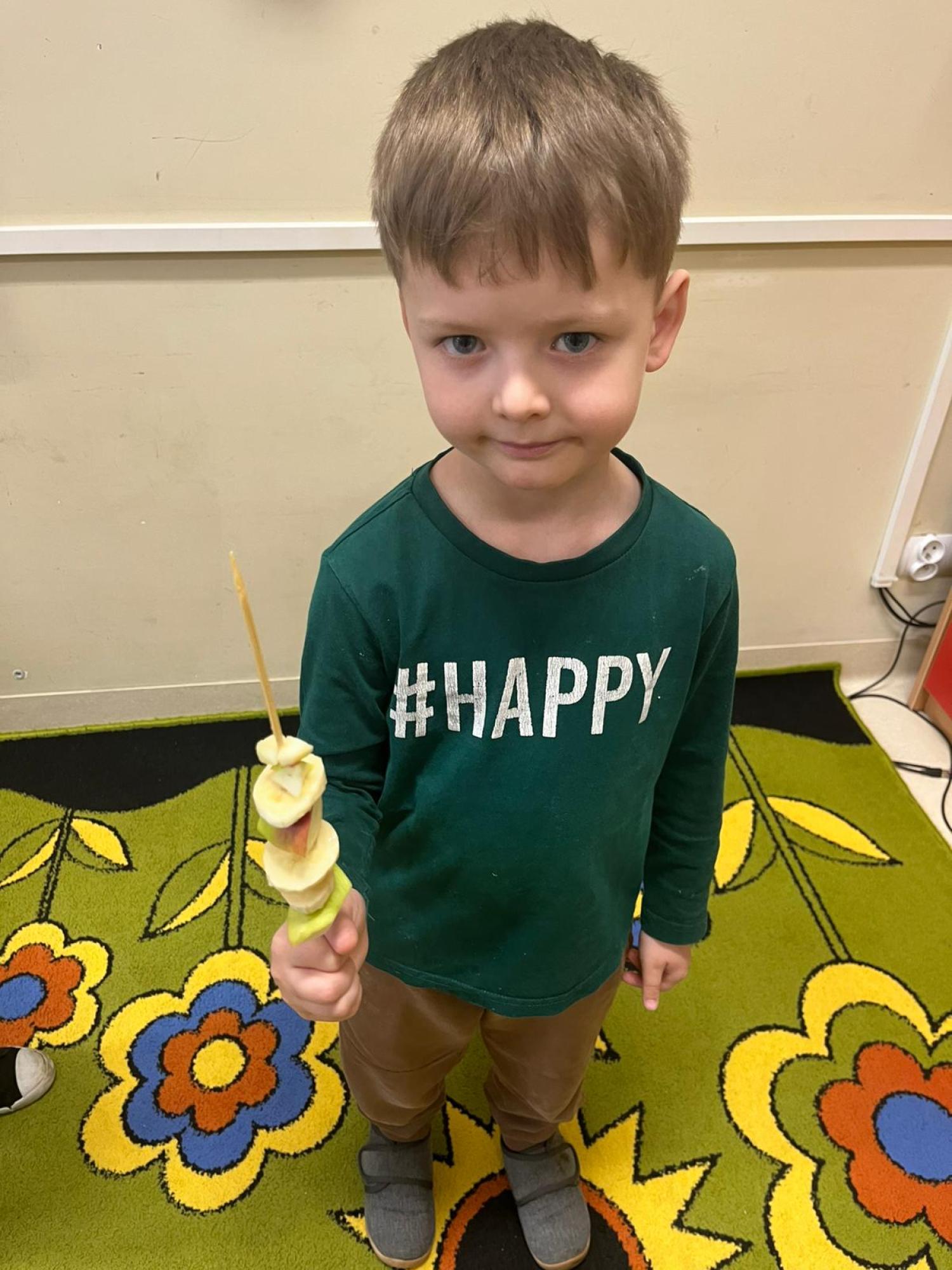 Dzieci przygotowały zdrową przekąskę na bal – kolorowe, owocowe szaszłyki, ucząc się zasad zdrowego odżywiania i współpracy. Zajęcia upłynęły w radosnej, karnawałowej atmosferze i były doskonałym połączeniem zabawy oraz nauki.