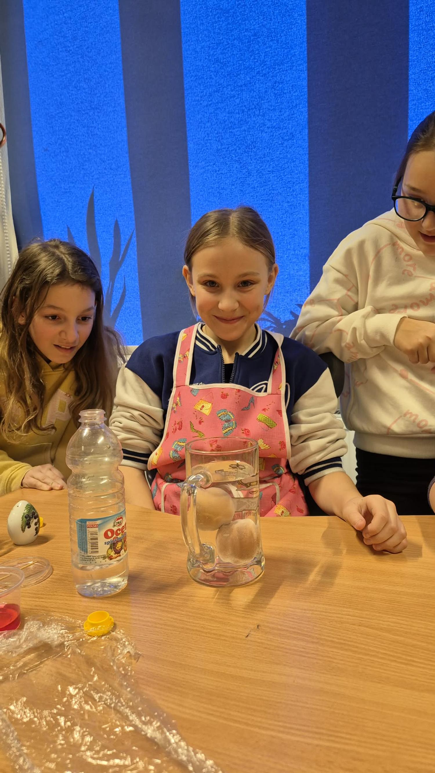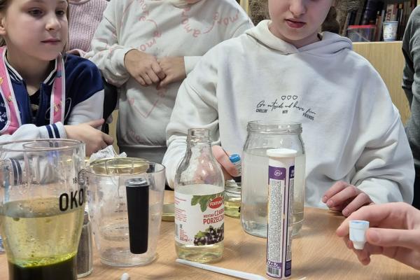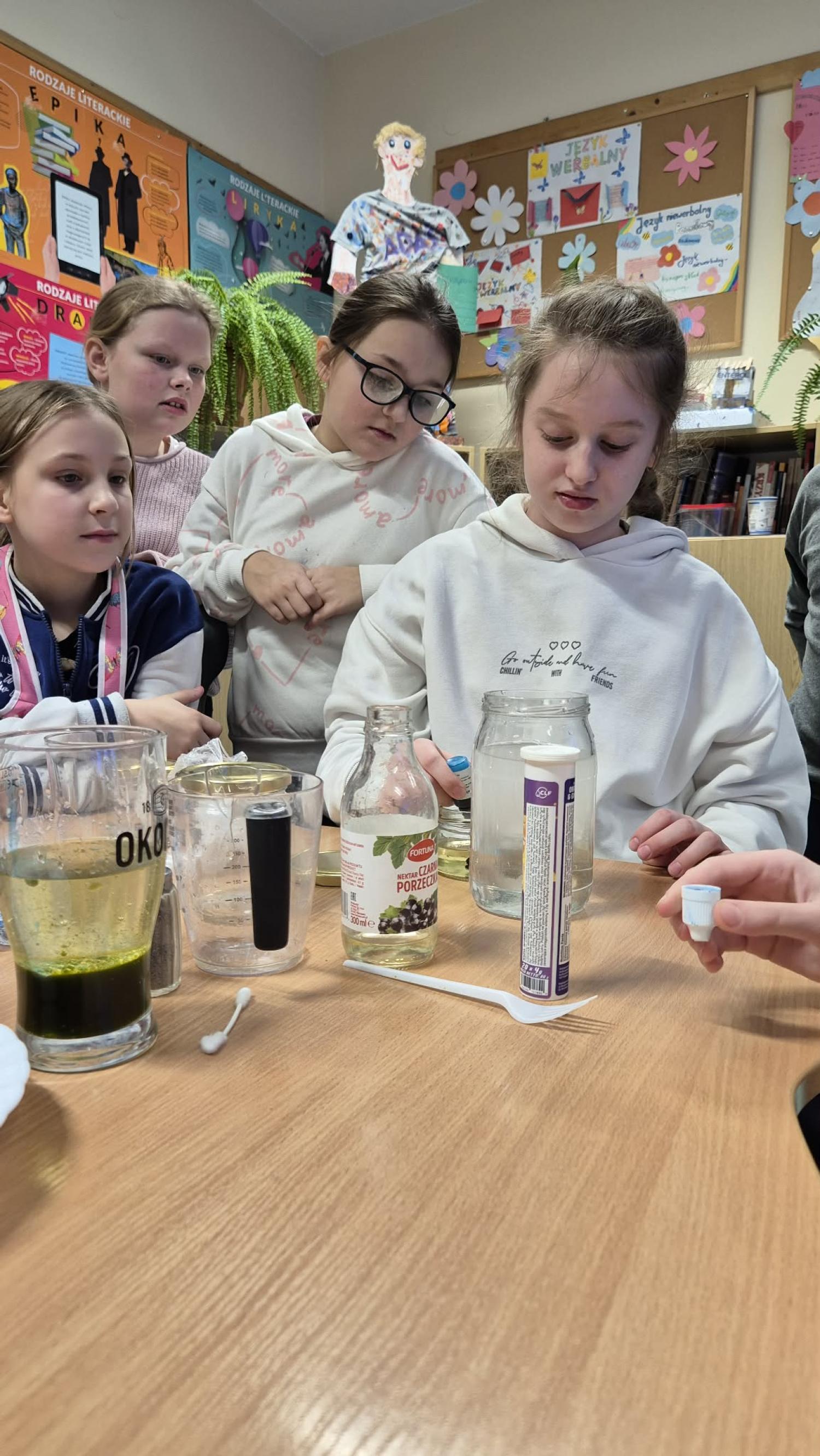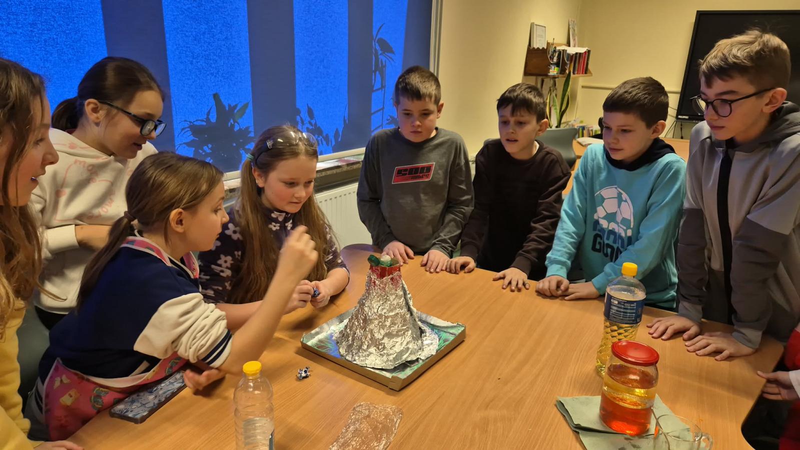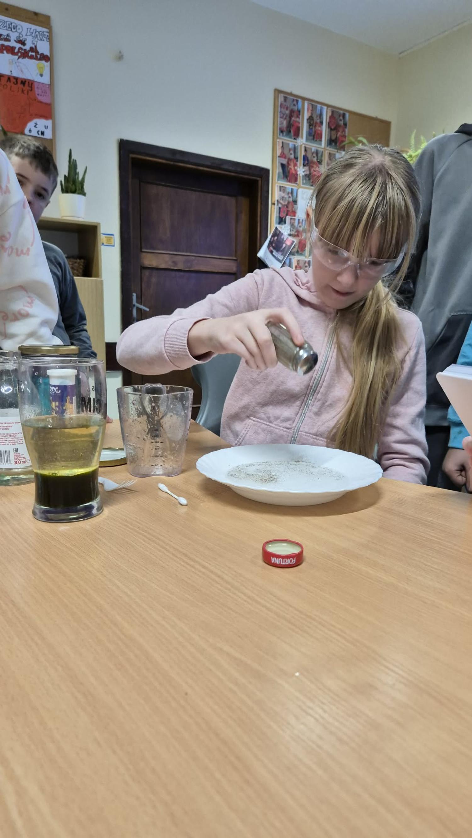 Czwartoklasiści samodzielnie przygotowali w domu różnorodne doświadczenia, a następnie zaprezentowali je swoim koleżankom i kolegom w klasie. Wśród pokazów znalazły się m.in. eksperymenty z wodą i olejem, wybuchający wulkan z sody i octu, hodowla kryształów soli, a także doświadczenia pokazujące właściwości powietrza i magnesów.