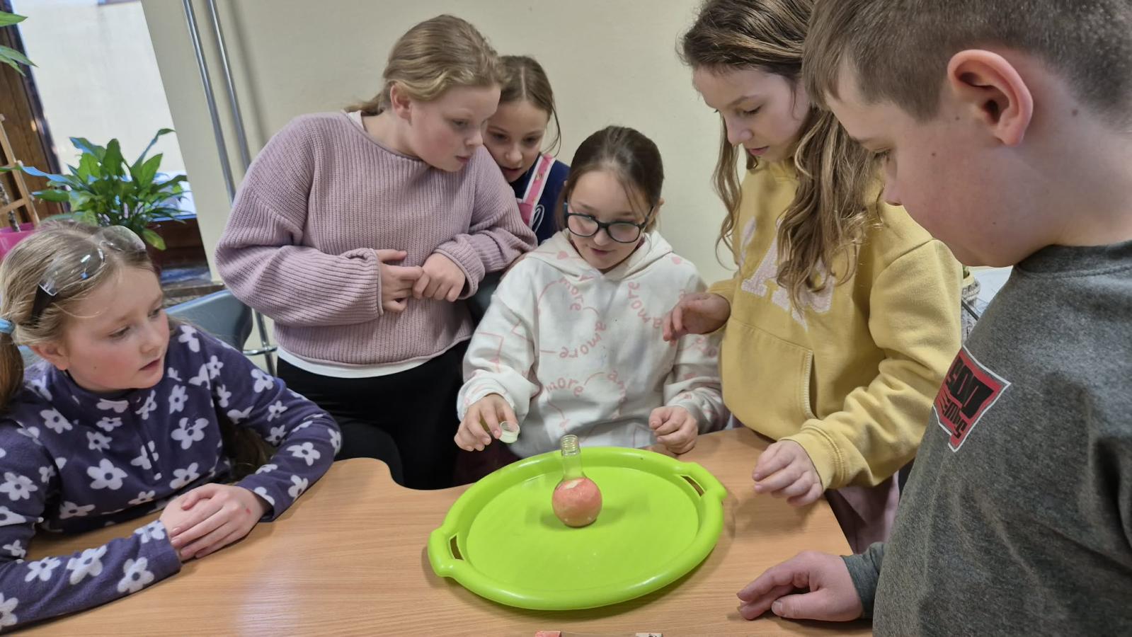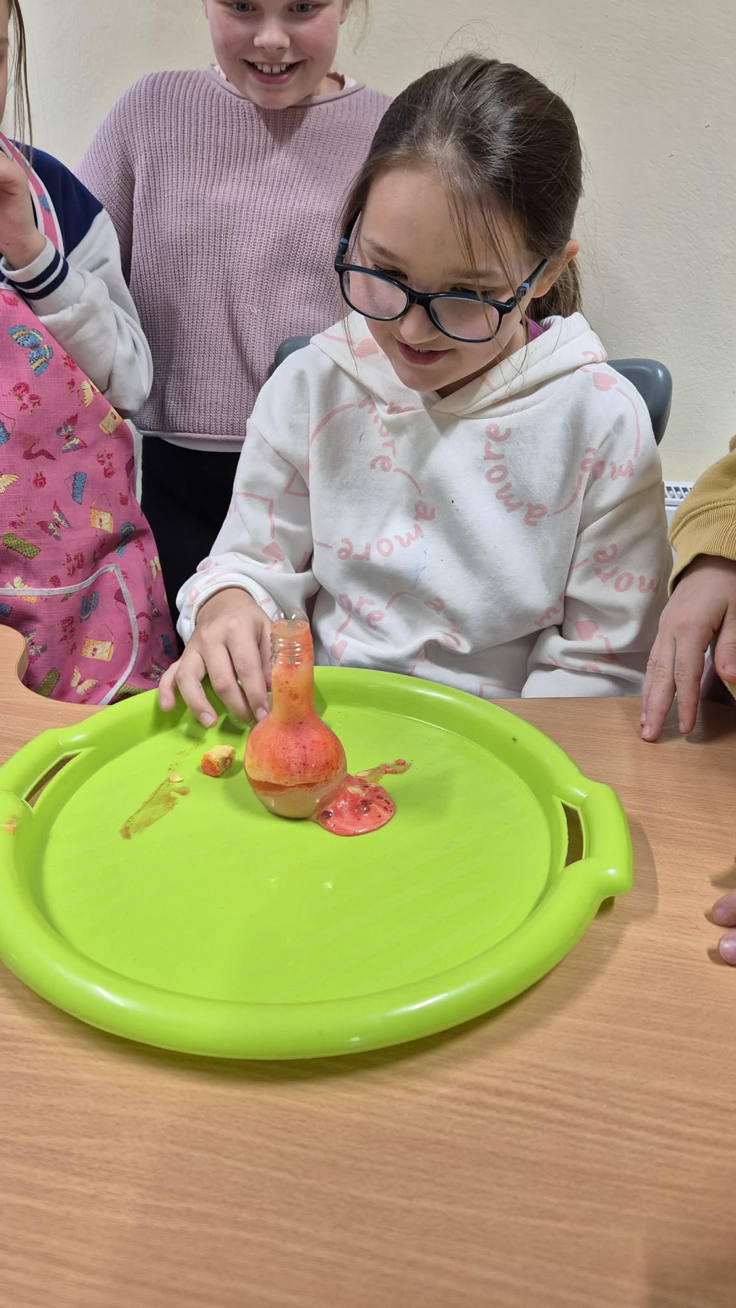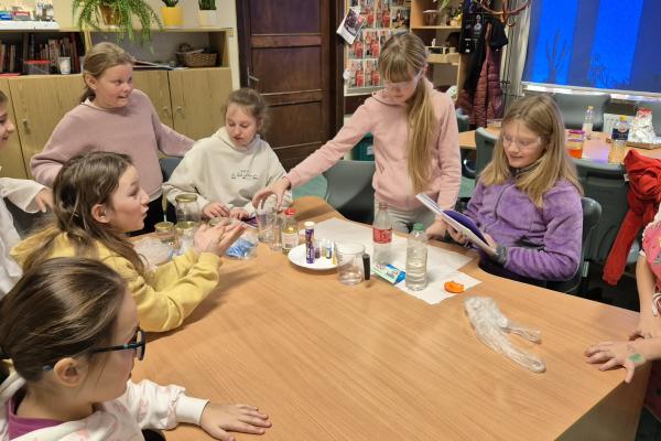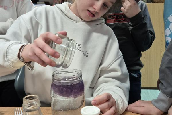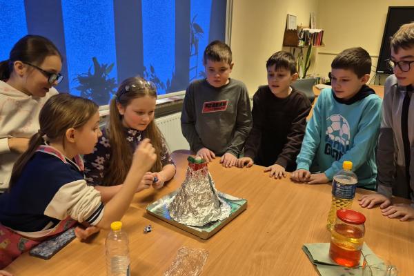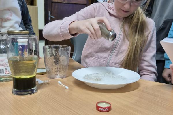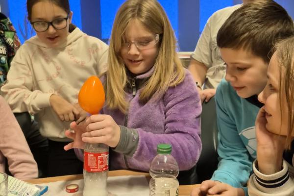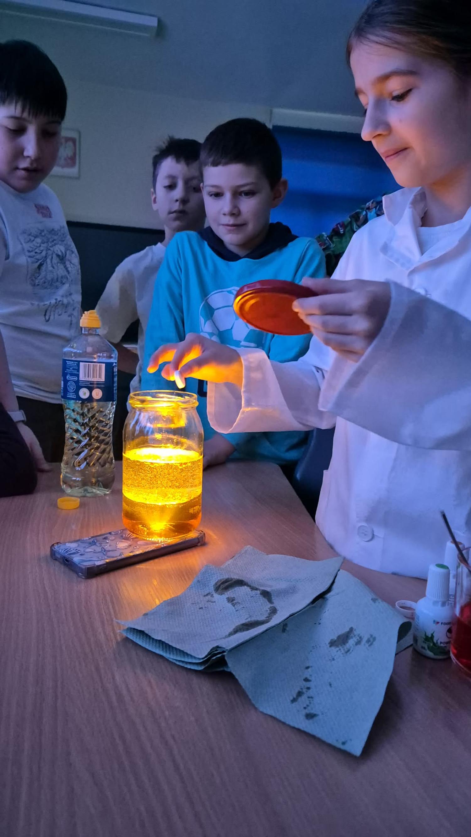 Czwartoklasiści samodzielnie przygotowali w domu różnorodne doświadczenia, a następnie zaprezentowali je swoim koleżankom i kolegom w klasie. Wśród pokazów znalazły się m.in. eksperymenty z wodą i olejem, wybuchający wulkan z sody i octu, hodowla kryształów soli, a także doświadczenia pokazujące właściwości powietrza i magnesów.