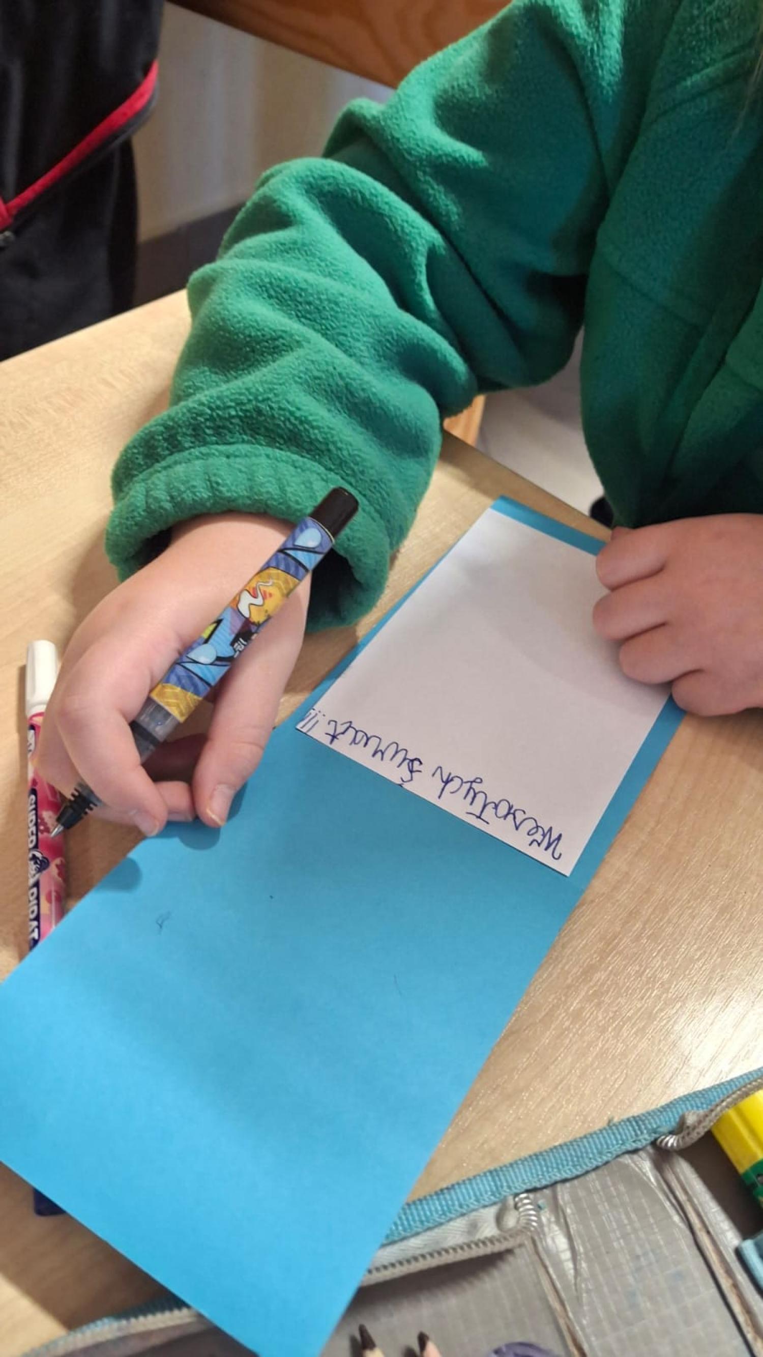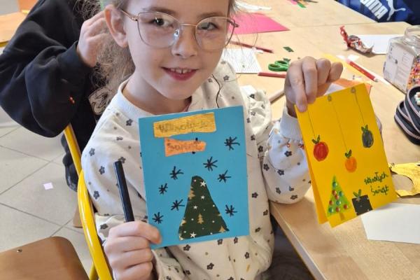 Podczas zajęć rozmawialiśmy o tradycjach Bożego Narodzenia, a uczniowie chętnie dzielili się zwyczajami panującymi w ich domach. Gotowe kartki zostały zapakowane i wysłane do zaprzyjaźnionej świetlicy w Szkole Podstawowej nr 10 w Dębicy, sprawiając radość rówieśnikom i wzmacniając międzyszkolną współpracę.