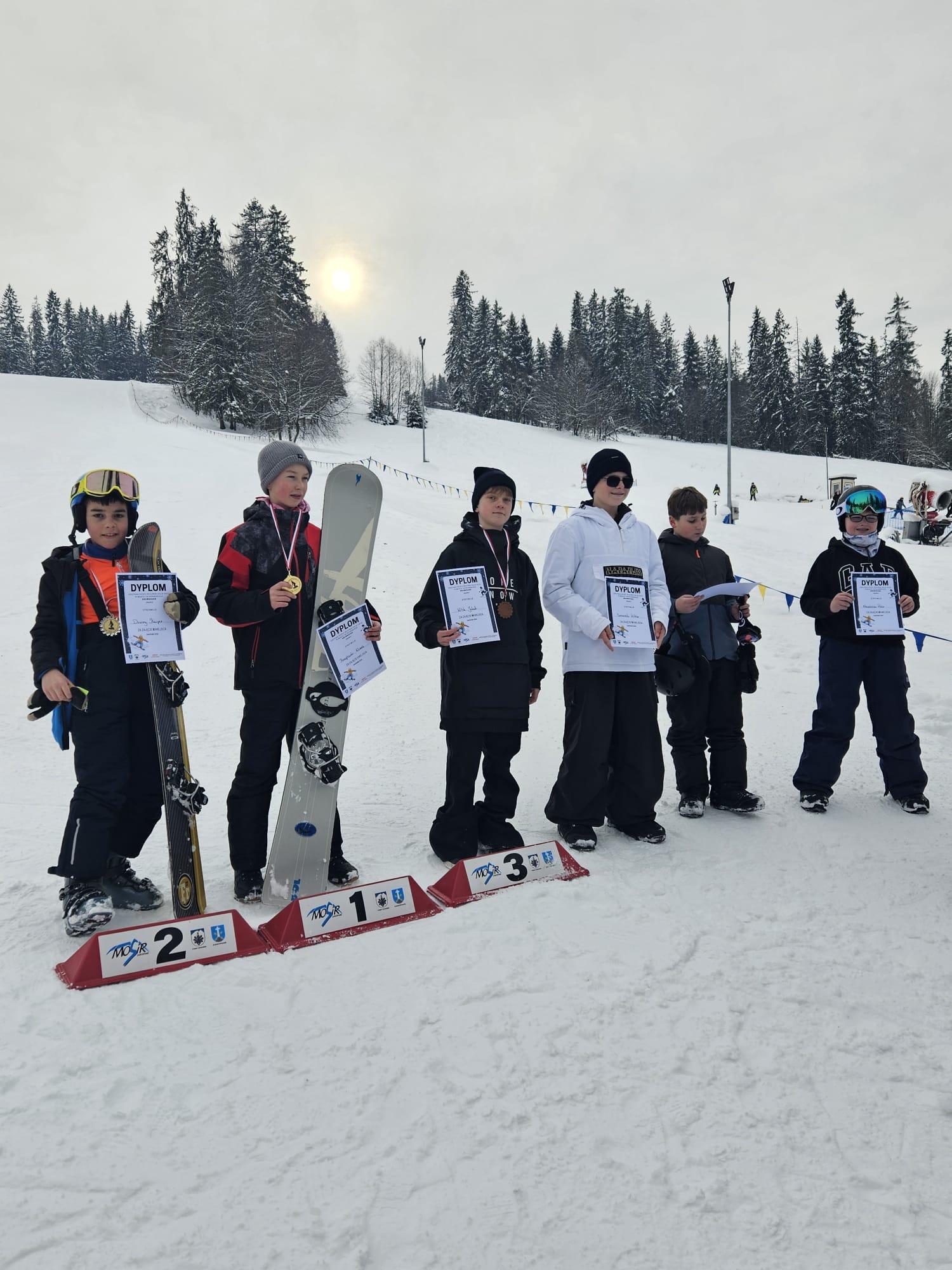 Niestety w zawodach nie mogli uczestniczyć uczniowie klas ósmych, ponieważ termin pokrył się z próbnym egzaminem. Warto zaznaczyć, że w latach poprzednich wielokrotnie stawali na podium powiatowych i wojewódzkich zmagań snowboardowych. Siła wyższa, również spędzili czas owocnie. Życzymy im powodzenia na egzaminach i dalszych sukcesów sportowych.