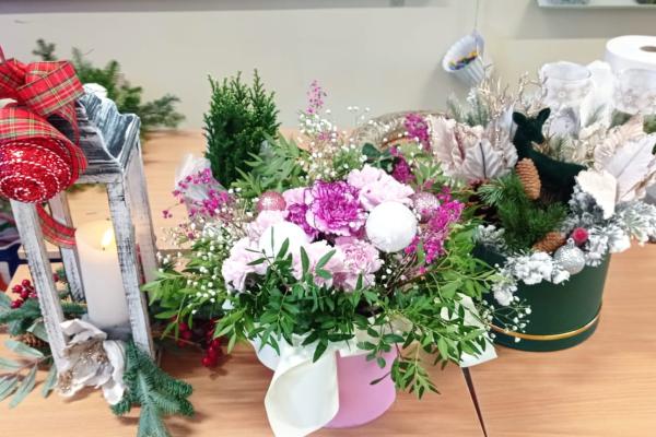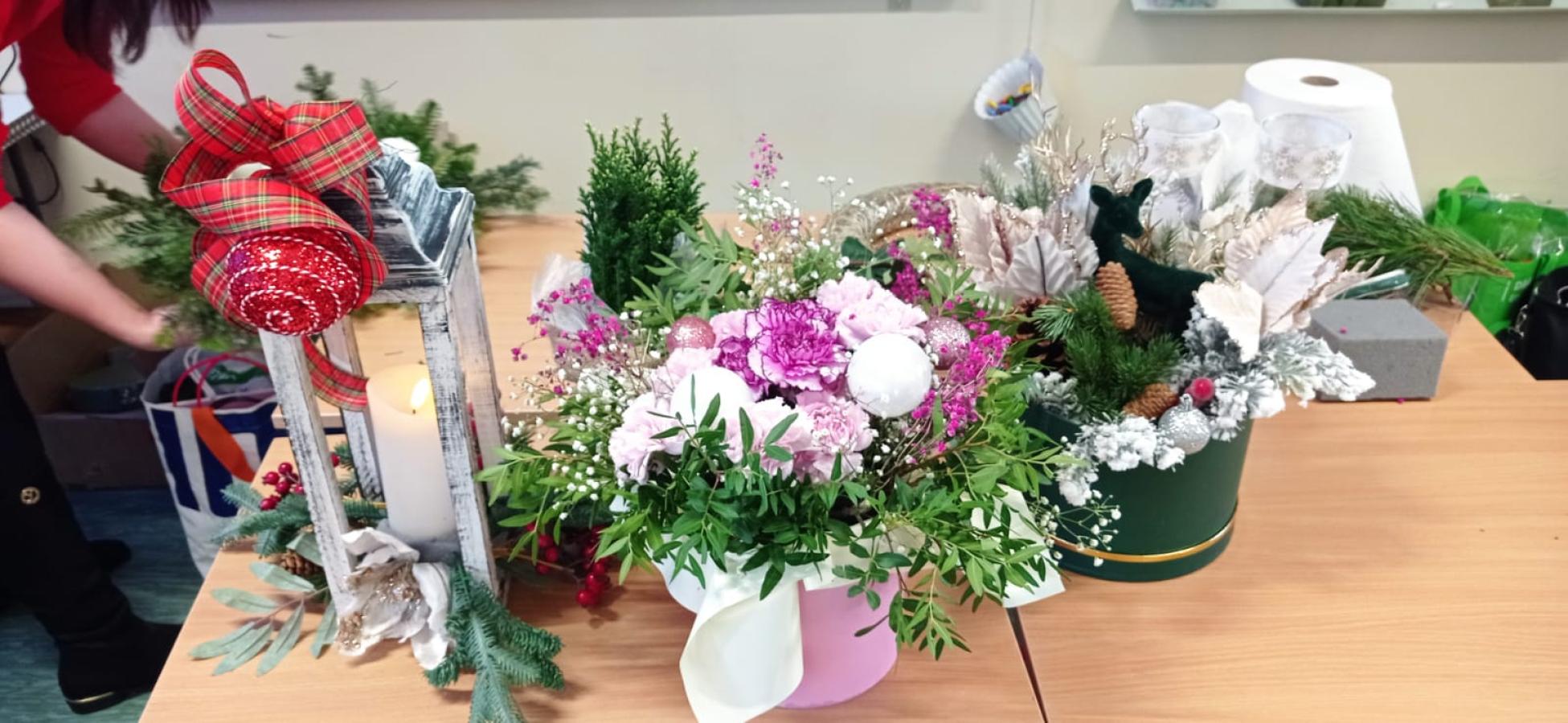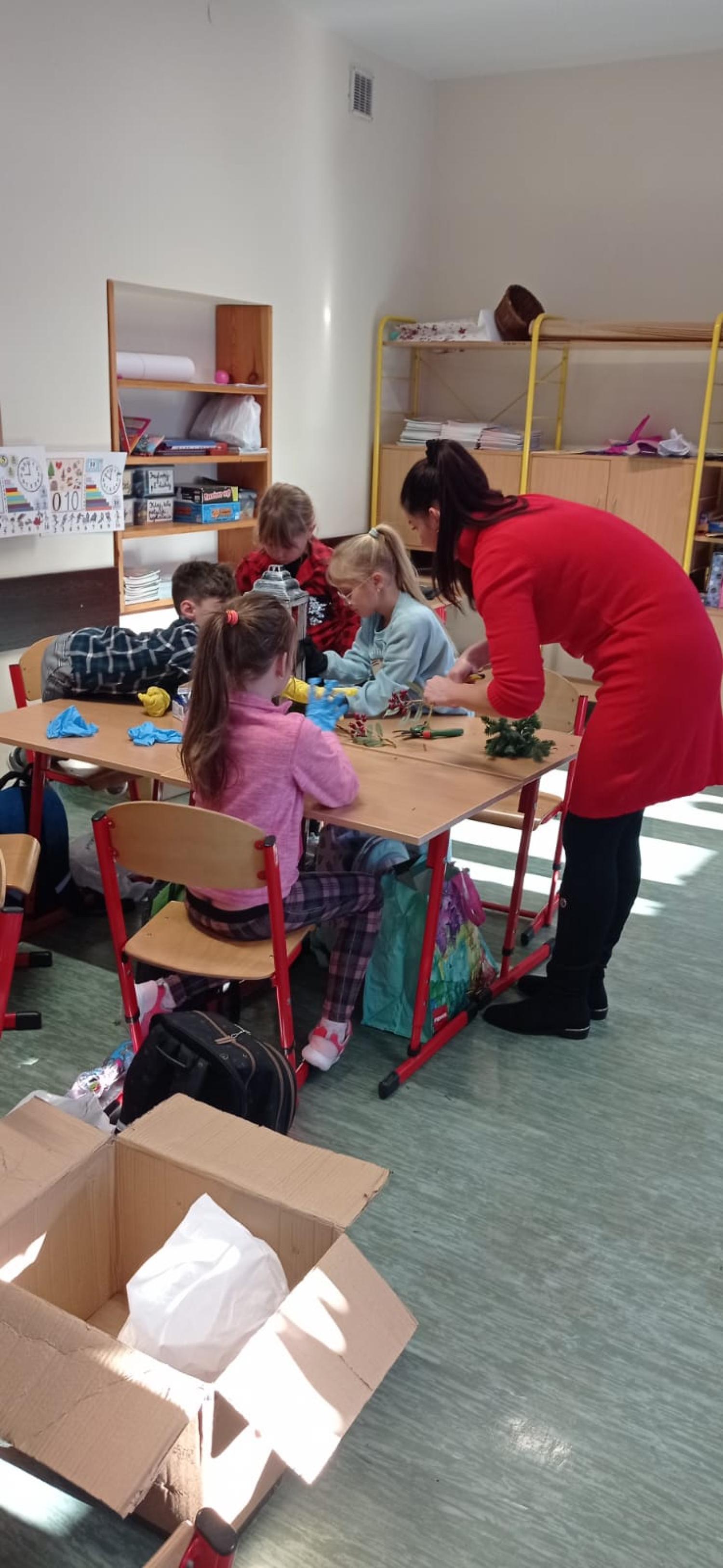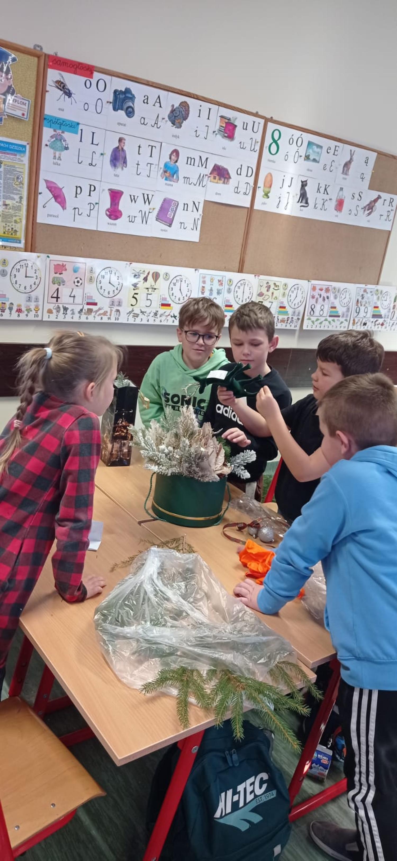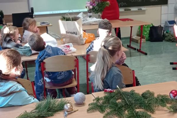 Pani Basia opowiedziała uczniom o swojej pracy, pasji do roślin oraz o tym, jak tworzy się różnorodne kompozycje kwiatowe. Największą atrakcją były warsztaty praktyczne. Pod okiem pani Basi uczniowie tworzyli świąteczne dekoracje, ucząc się dobierania elementów, układania gałązek i komponowania spójnych ozdób.