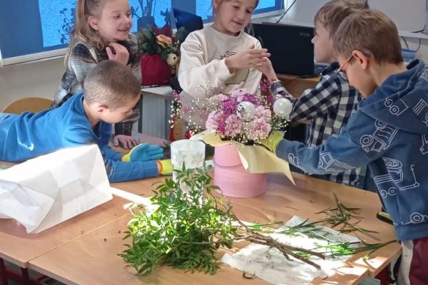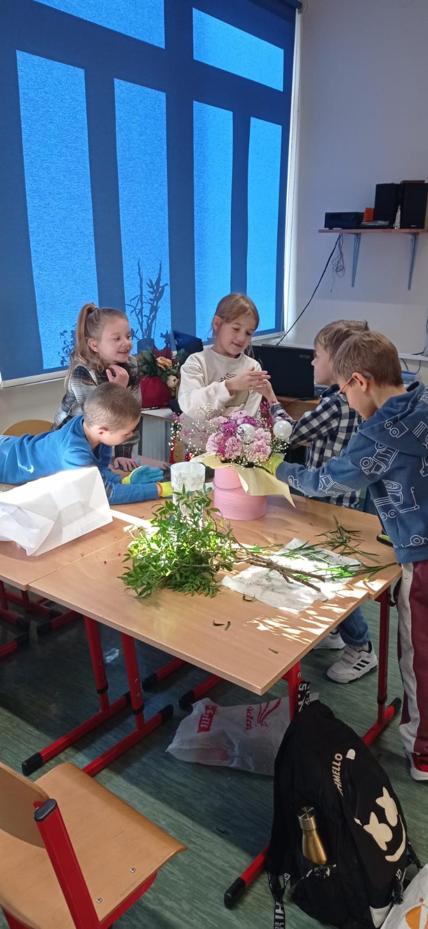 W klasie panowała radosna, twórcza atmosfera, a uczniowie byli dumni ze swoich prac. Spotkanie z panią Basią okazało się nie tylko inspirującą lekcją o zawodzie florysty, lecz także świetną okazją do rozwijania kreatywności i lepszego poznania mamy swojego kolegi. Wydarzenie na długo pozostanie w pamięci całej klasy. Dziękujemy!