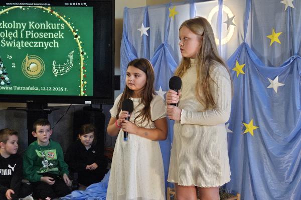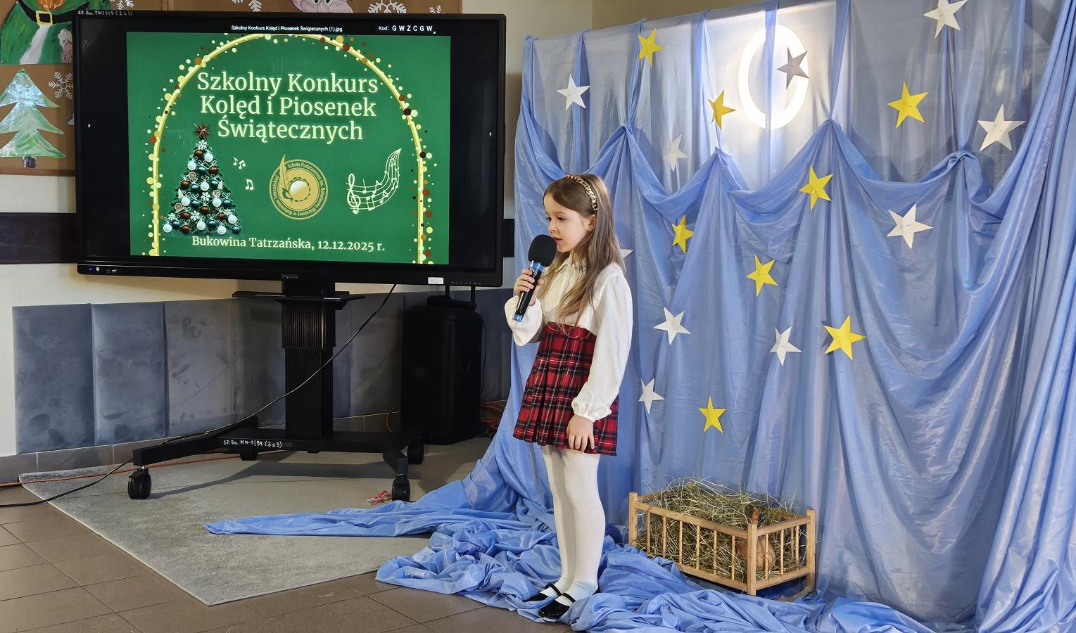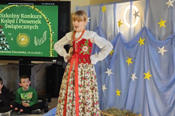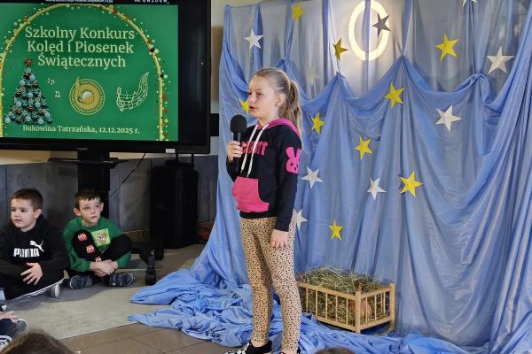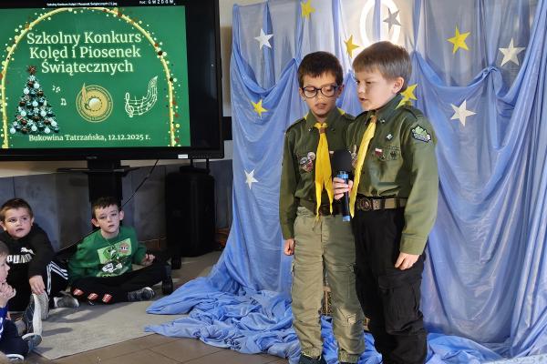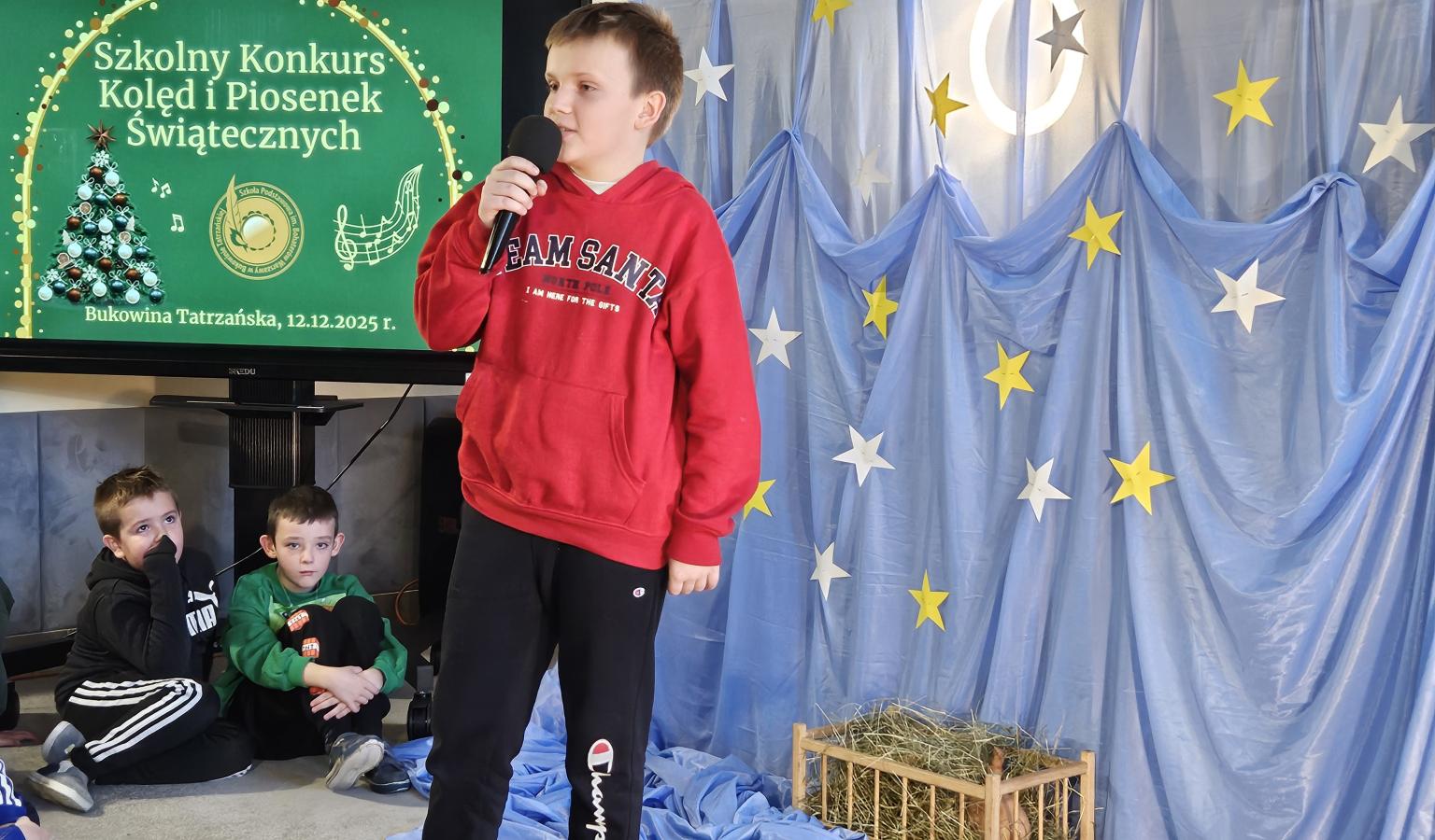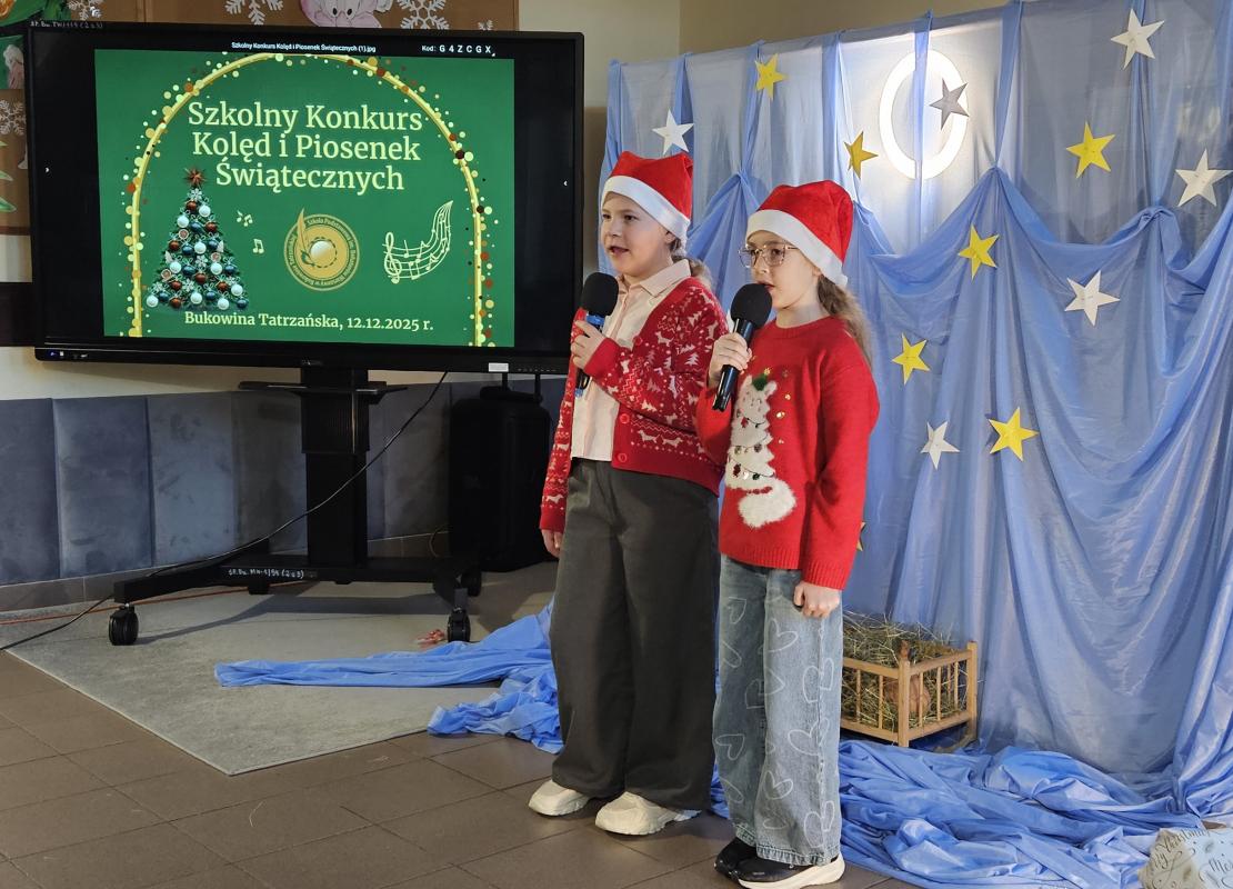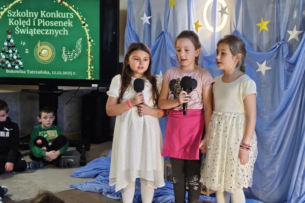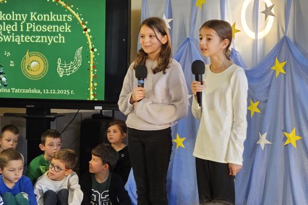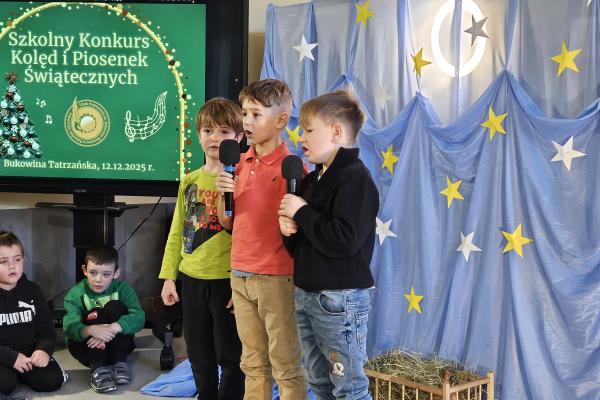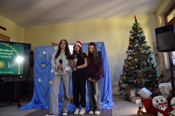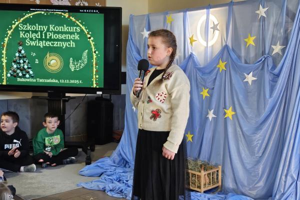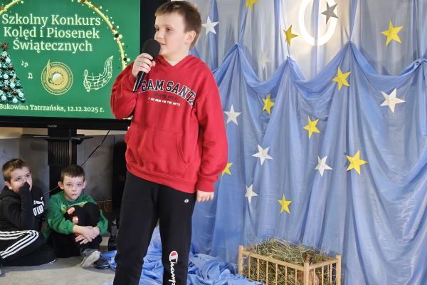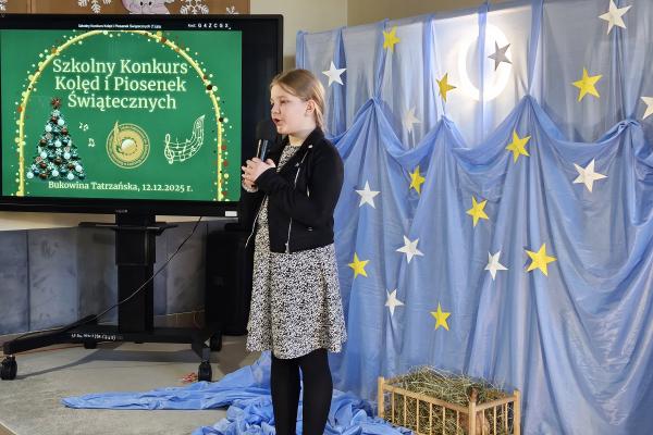 12 grudnia 2025 roku w naszej szkole odbył się Szkolny Konkurs Kolęd i Piosenek Świątecznych, który wprowadził całą społeczność szkolną w radosny, bożonarodzeniowy nastrój. W wydarzeniu wzięli udział uczestnicy od przedszkolaków z klas 0, aż po uczniów klasy VIII, prezentując swoje umiejętności wokalne i muzyczne.