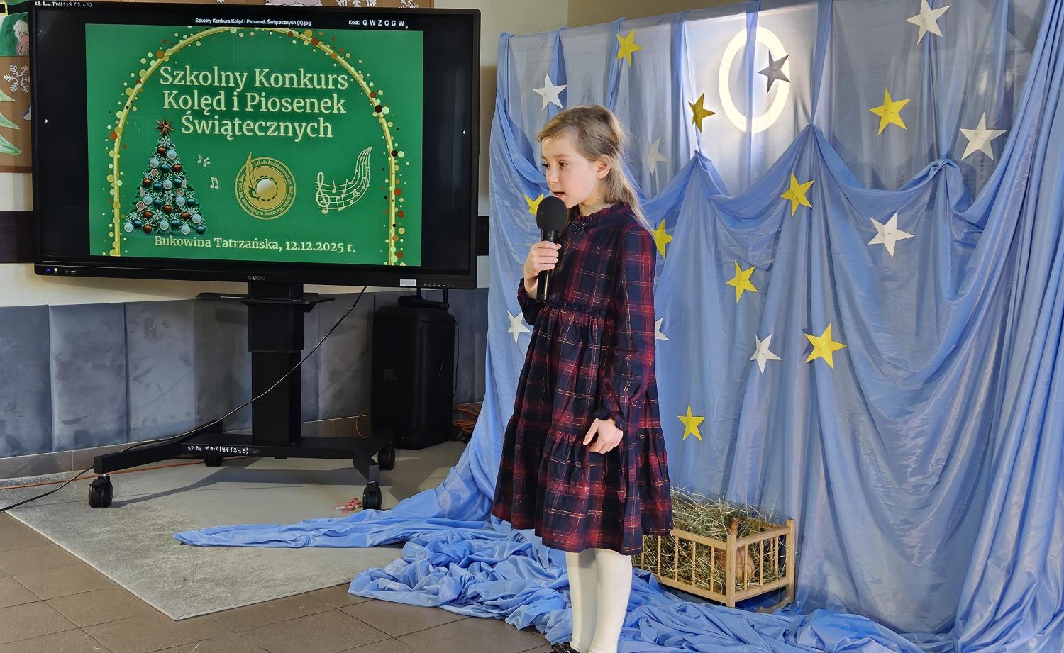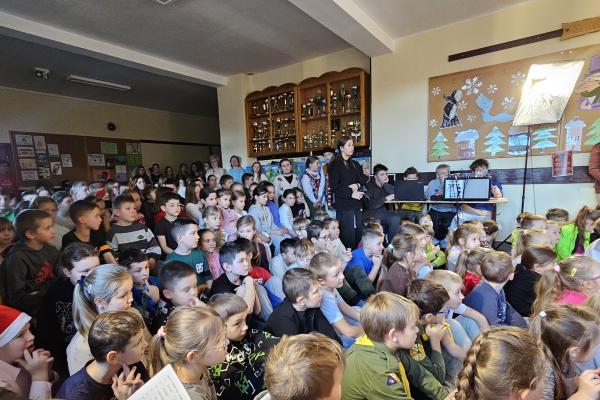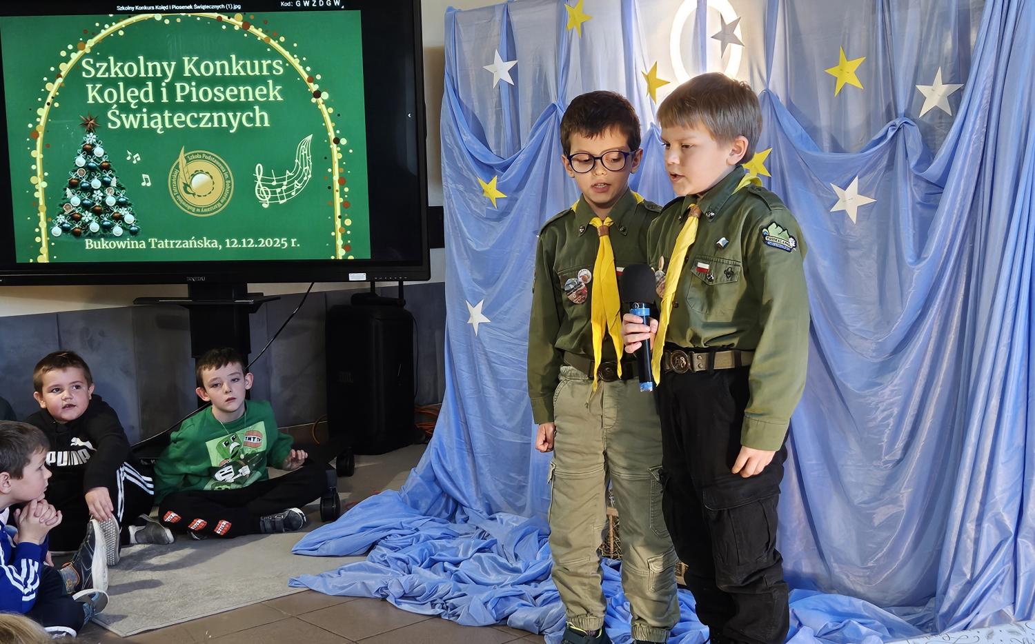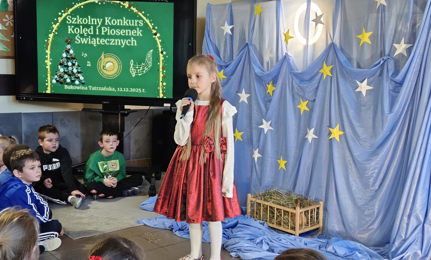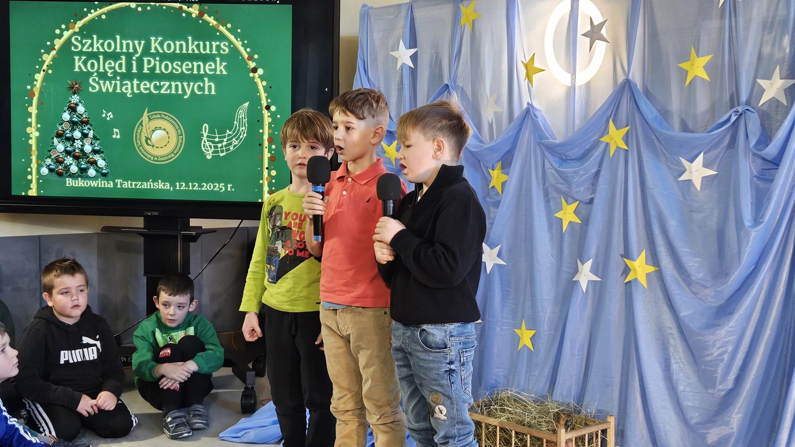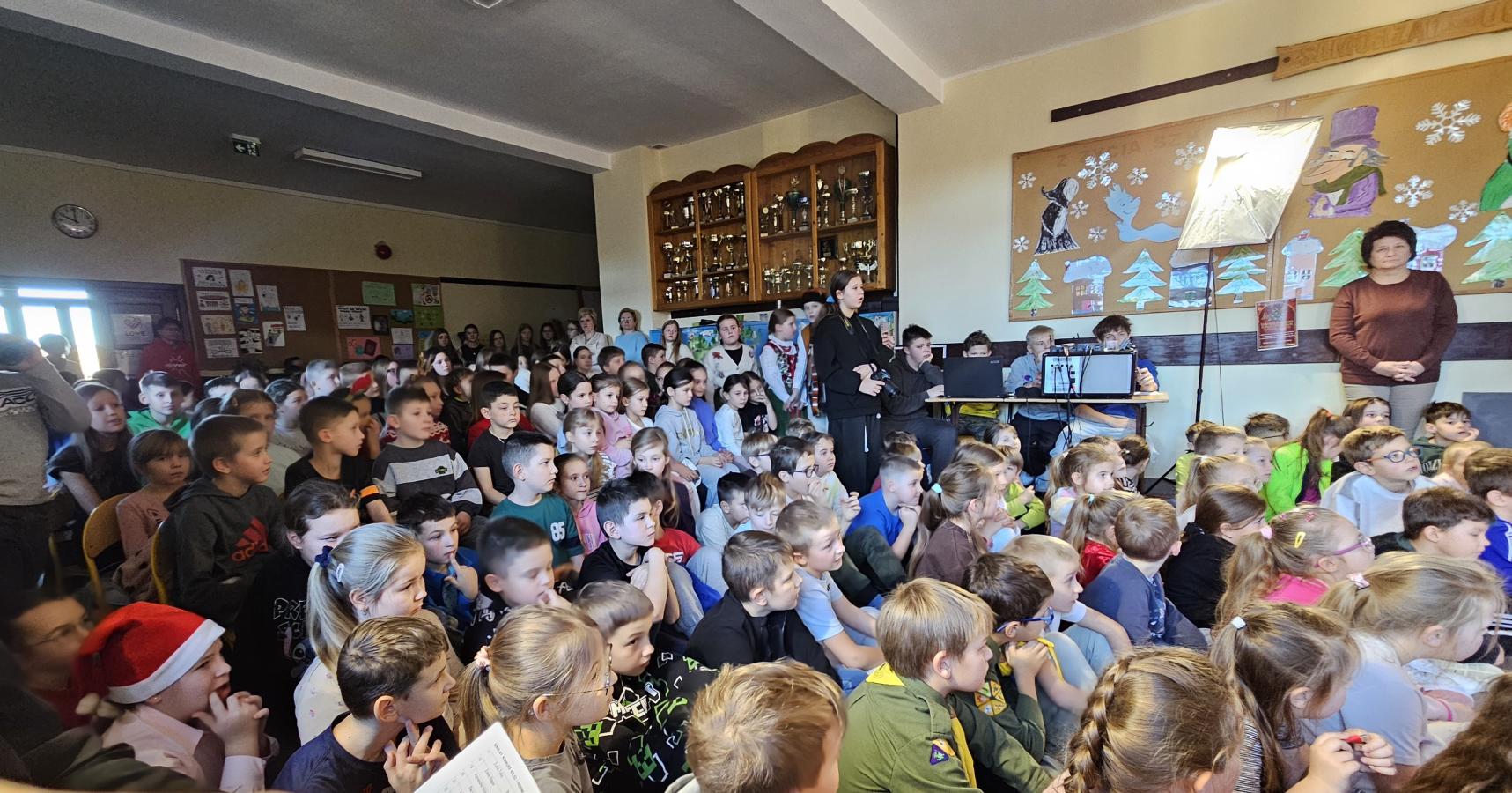 12 grudnia 2025 roku w naszej szkole odbył się Szkolny Konkurs Kolęd i Piosenek Świątecznych, który wprowadził całą społeczność szkolną w radosny, bożonarodzeniowy nastrój. W wydarzeniu wzięli udział uczestnicy od przedszkolaków z klas 0, aż po uczniów klasy VIII, prezentując swoje umiejętności wokalne i muzyczne.