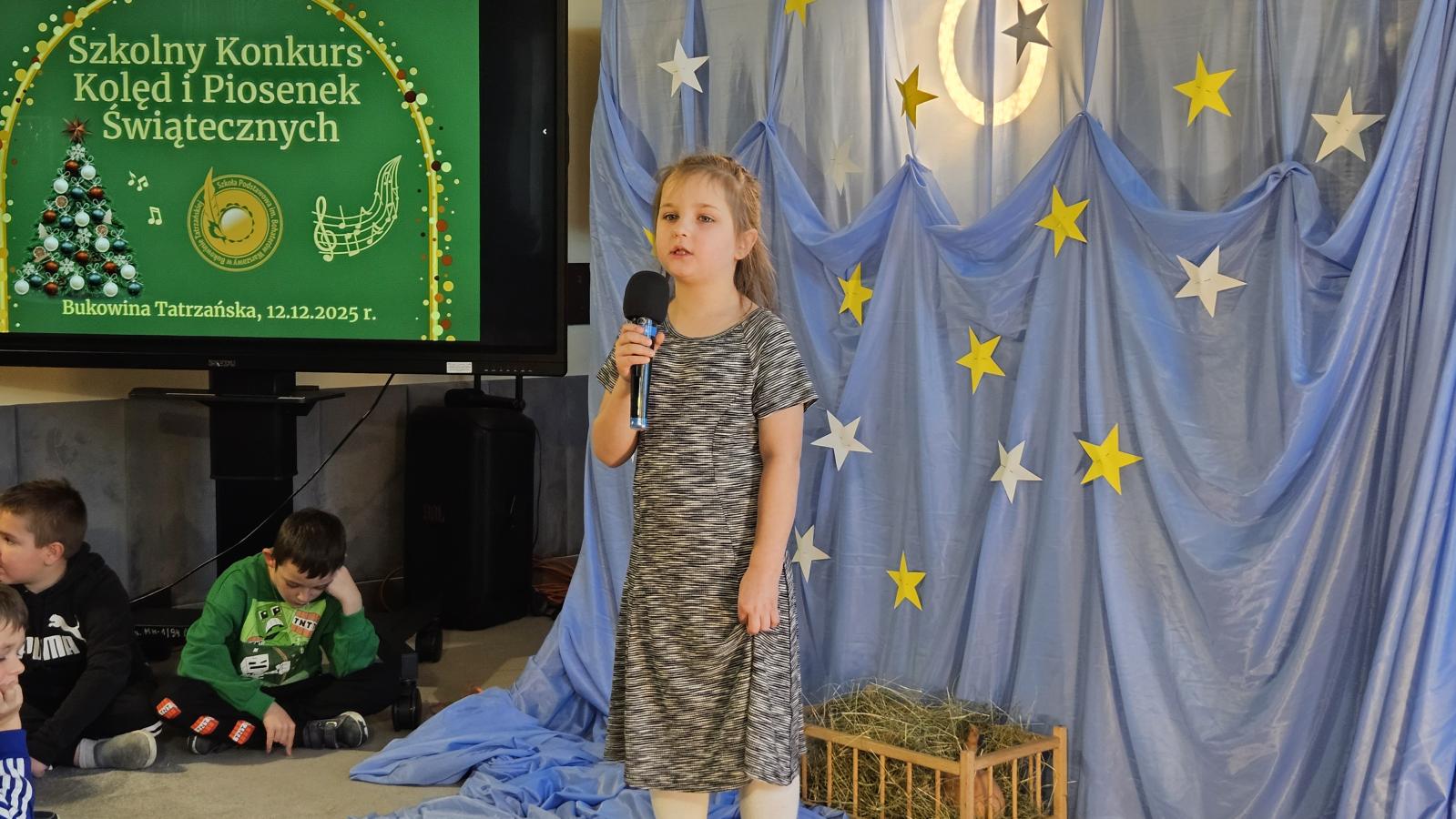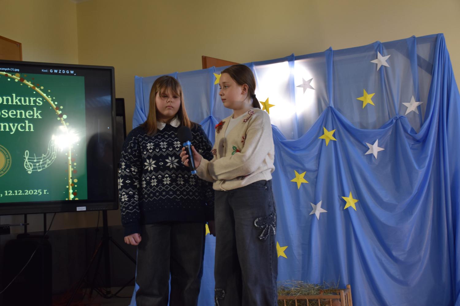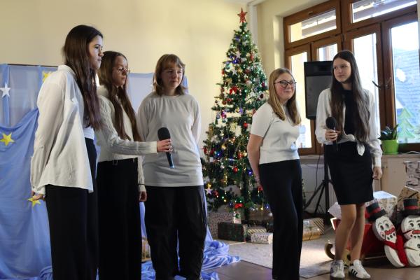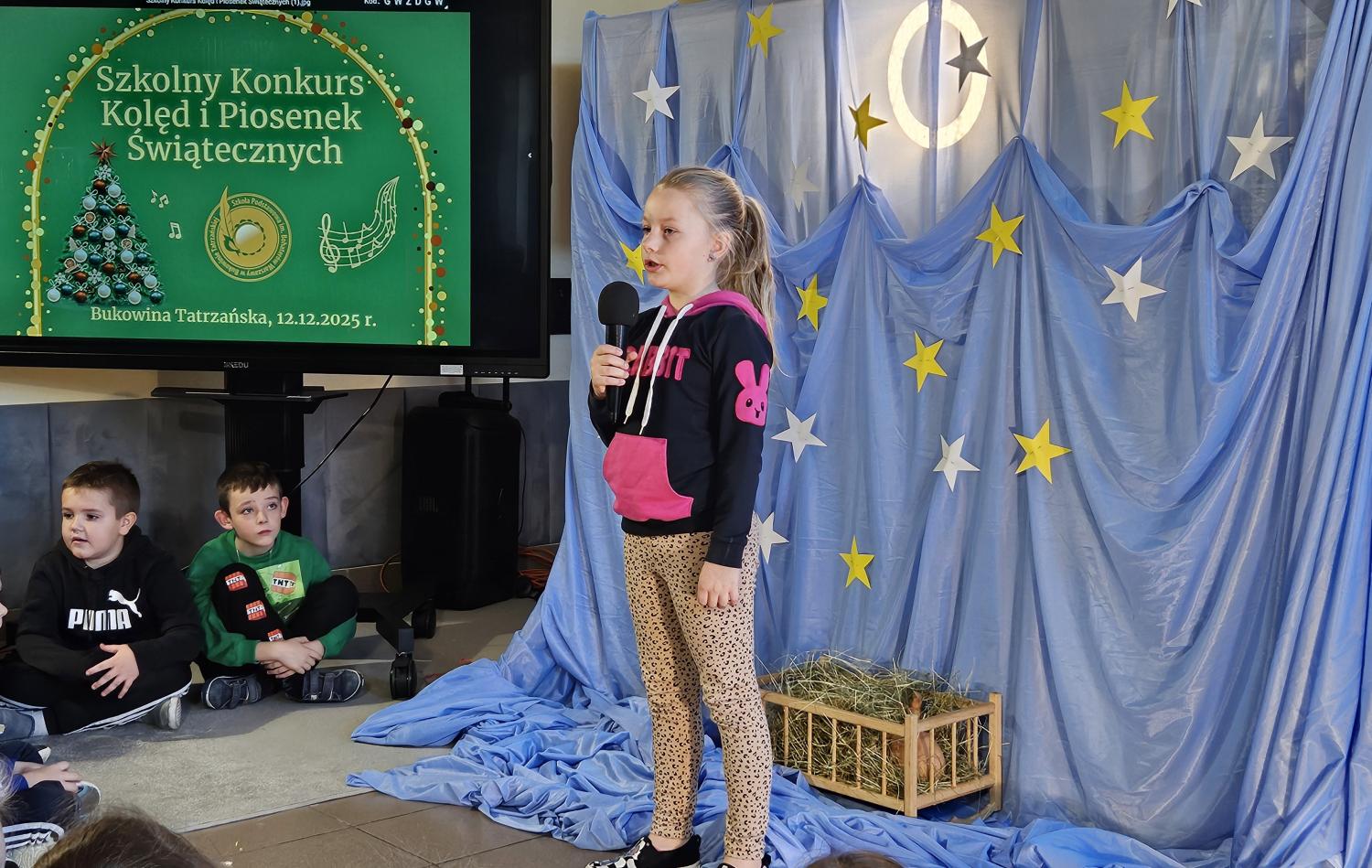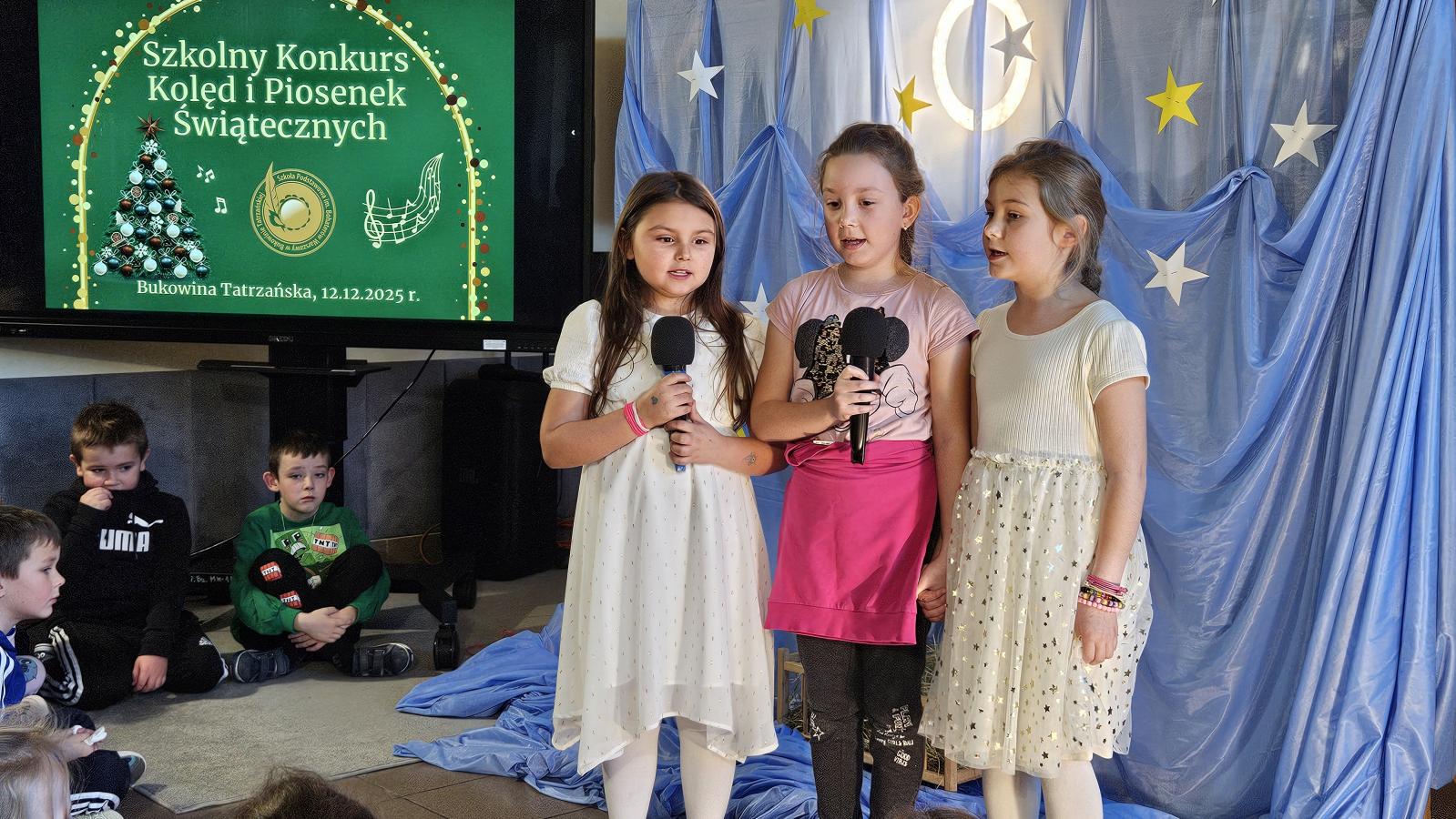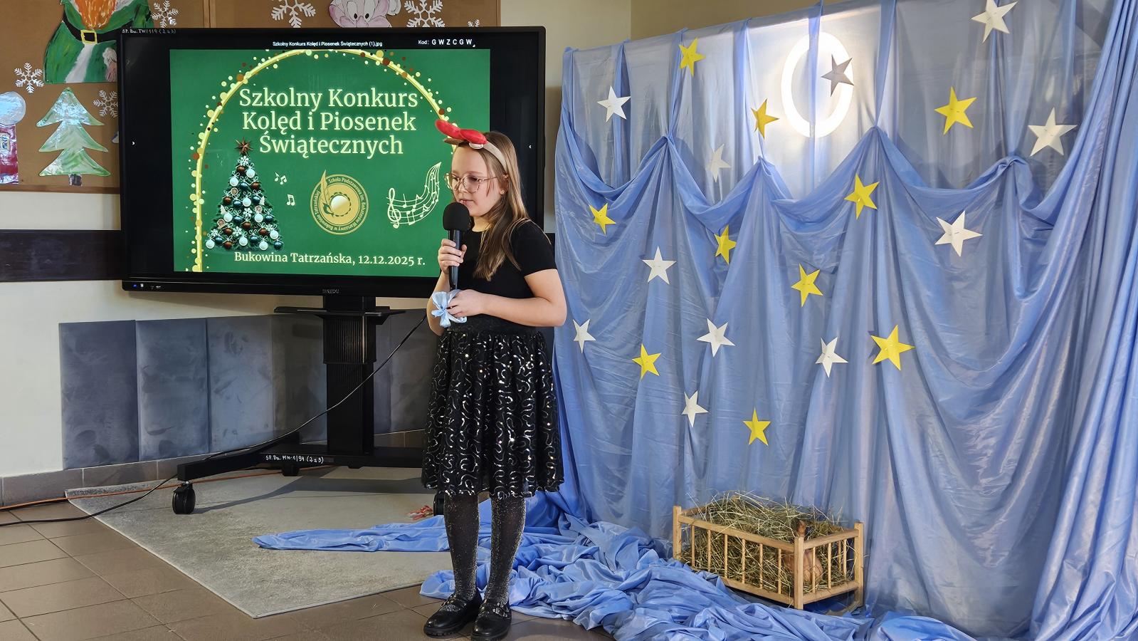 12 grudnia 2025 roku w naszej szkole odbył się Szkolny Konkurs Kolęd i Piosenek Świątecznych, który wprowadził całą społeczność szkolną w radosny, bożonarodzeniowy nastrój. W wydarzeniu wzięli udział uczestnicy od przedszkolaków z klas 0, aż po uczniów klasy VIII, prezentując swoje umiejętności wokalne i muzyczne.