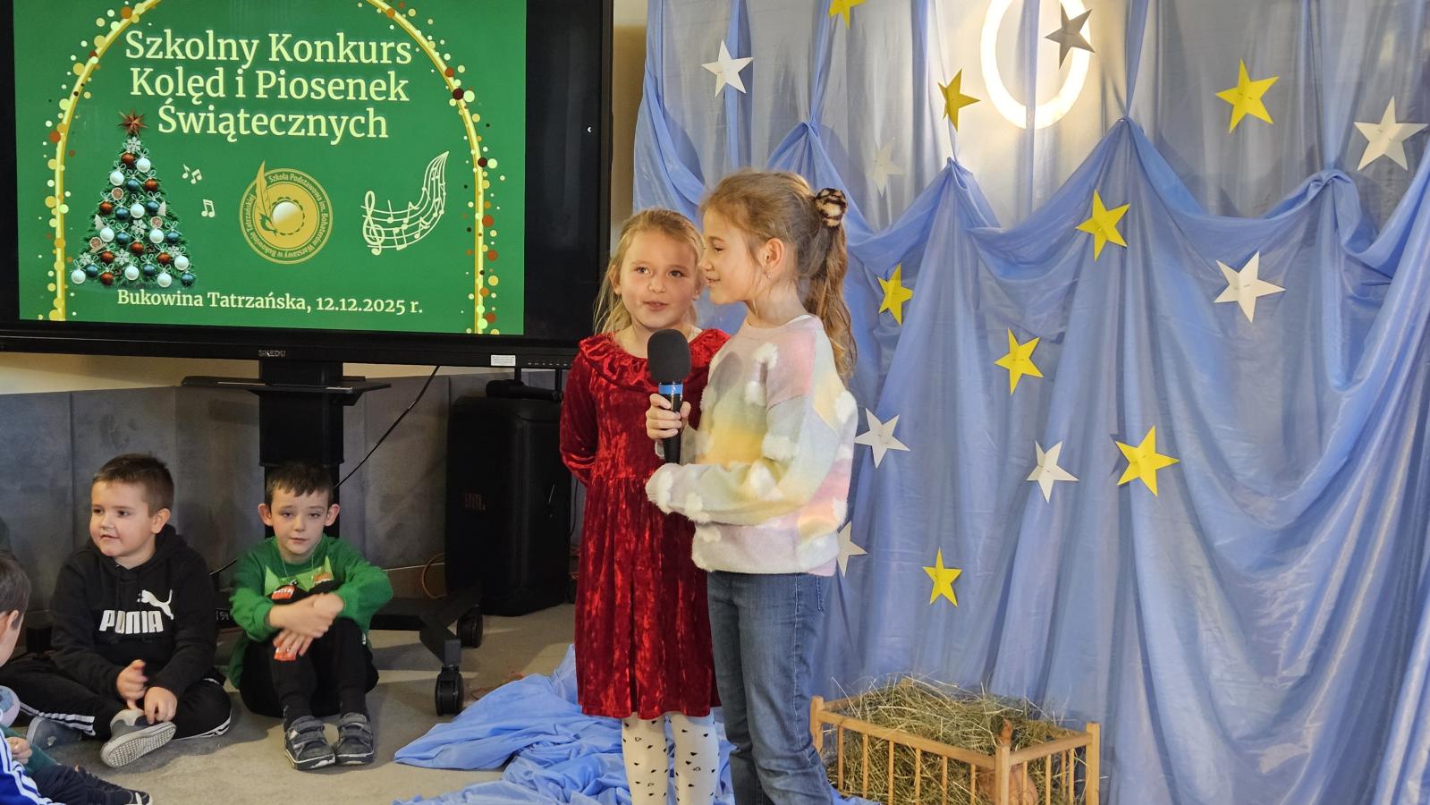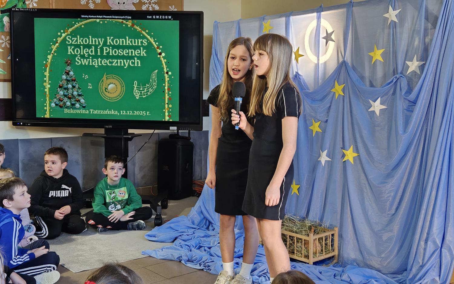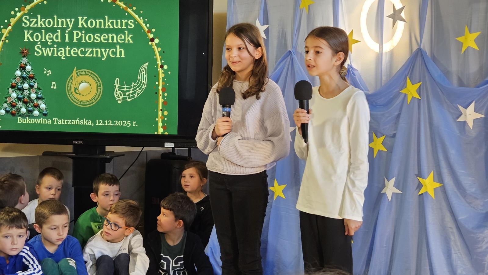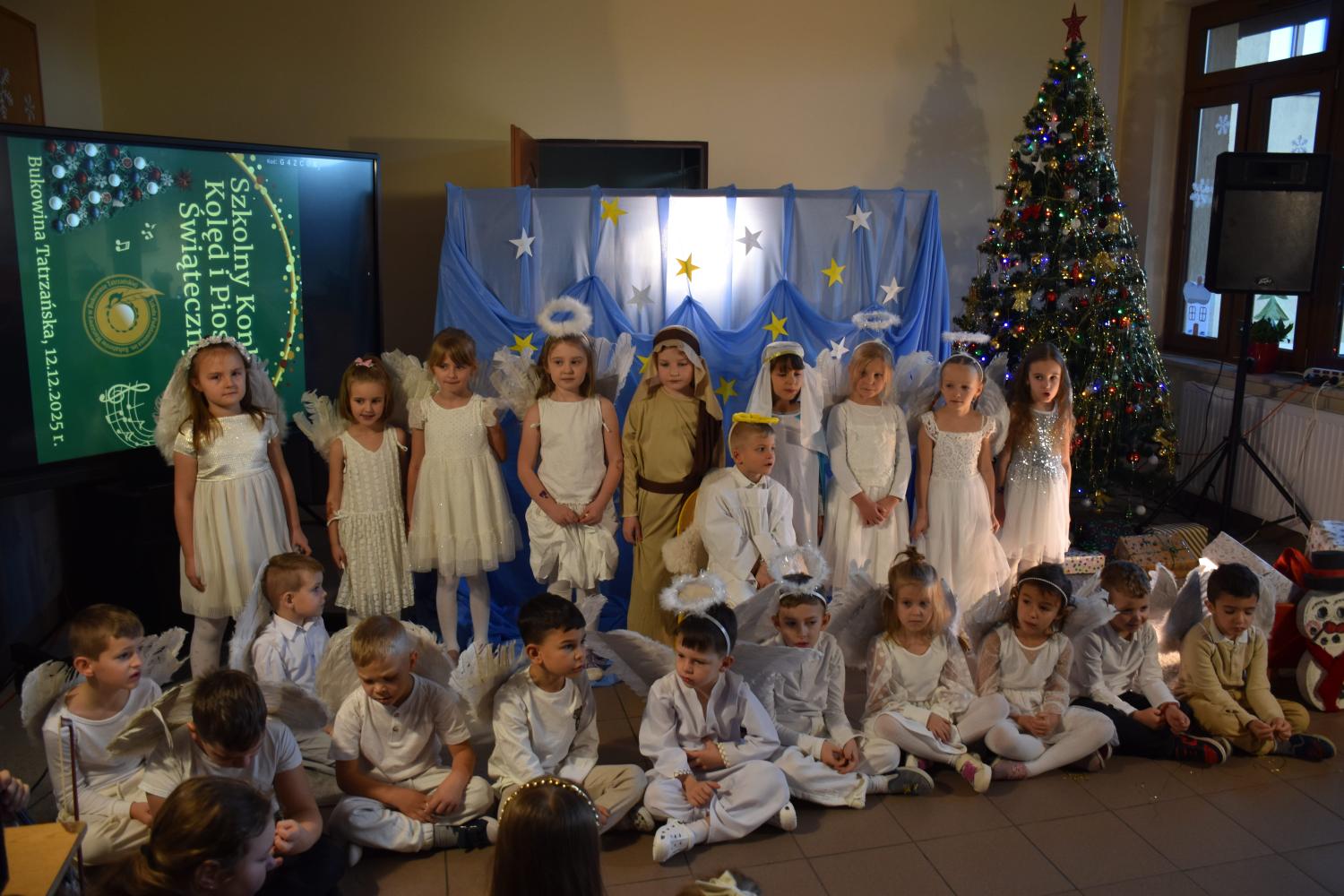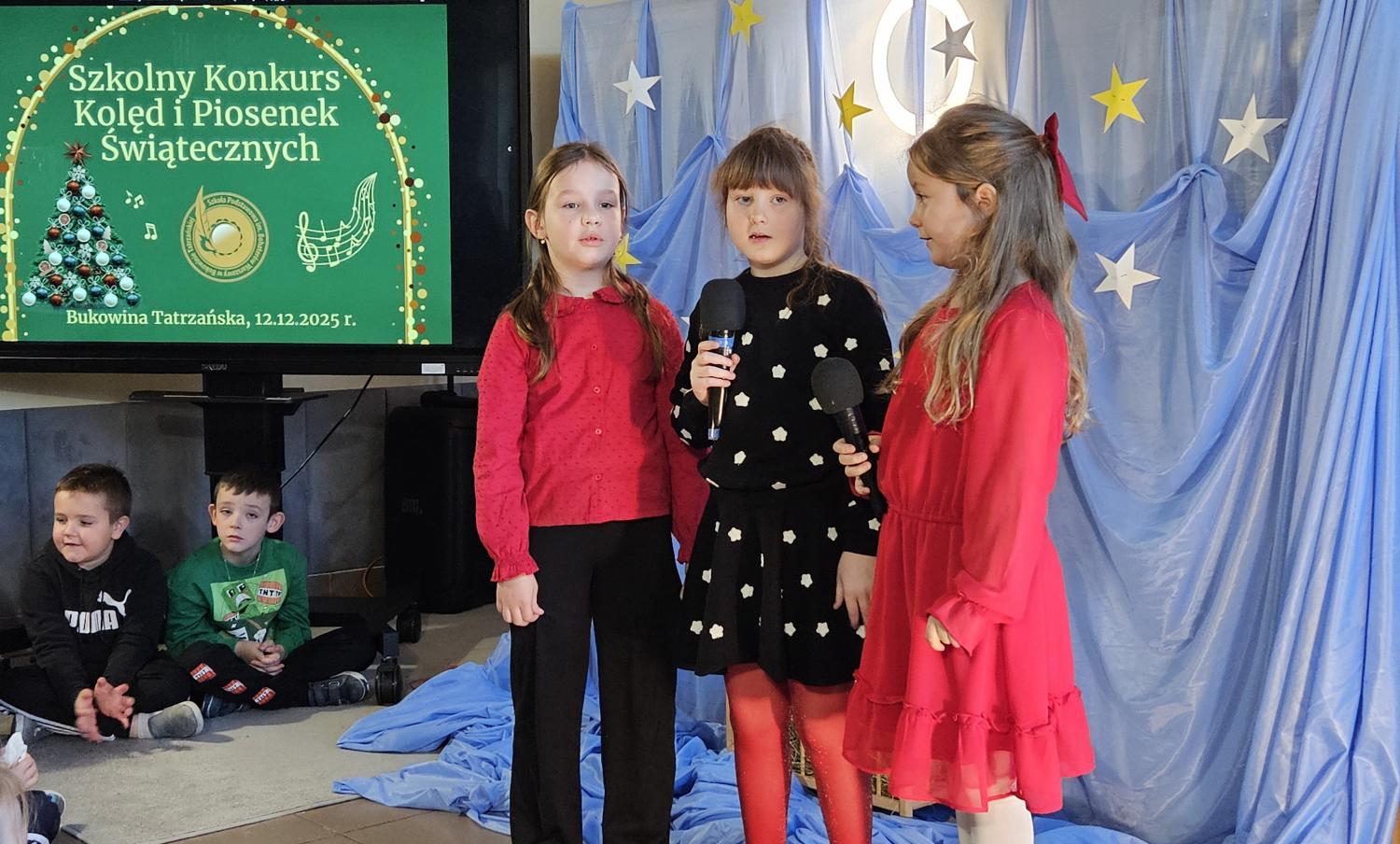 12 grudnia 2025 roku w naszej szkole odbył się Szkolny Konkurs Kolęd i Piosenek Świątecznych, który wprowadził całą społeczność szkolną w radosny, bożonarodzeniowy nastrój. W wydarzeniu wzięli udział uczestnicy od przedszkolaków z klas 0, aż po uczniów klasy VIII, prezentując swoje umiejętności wokalne i muzyczne.