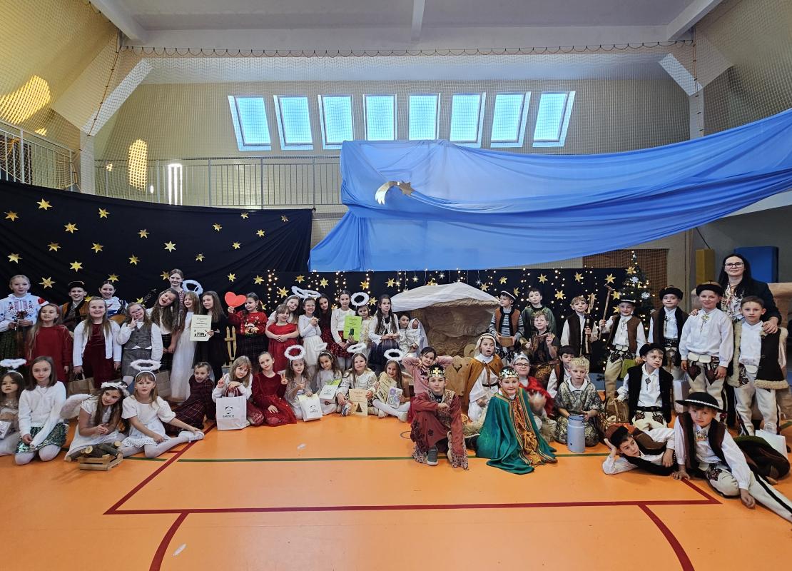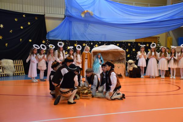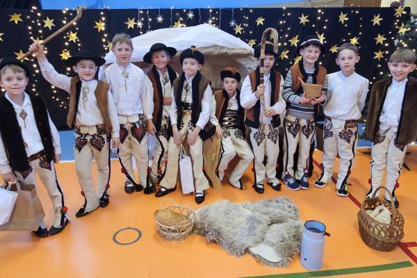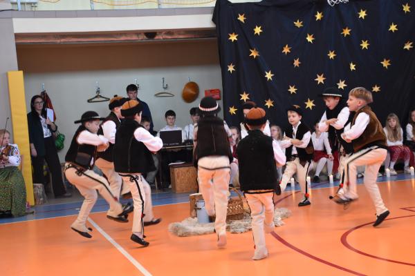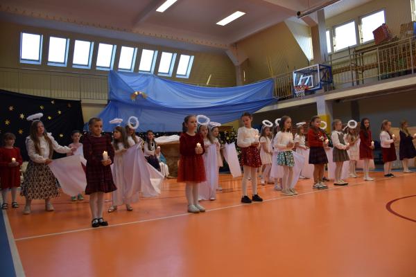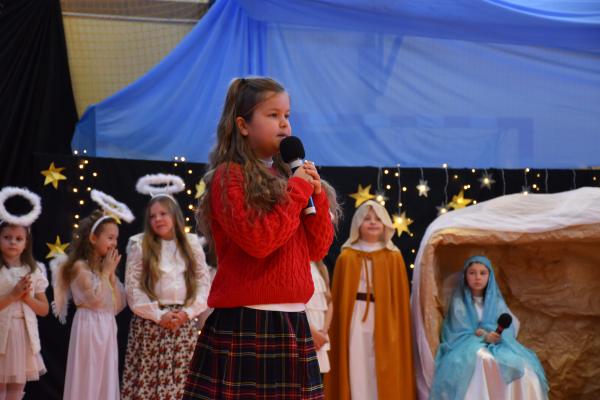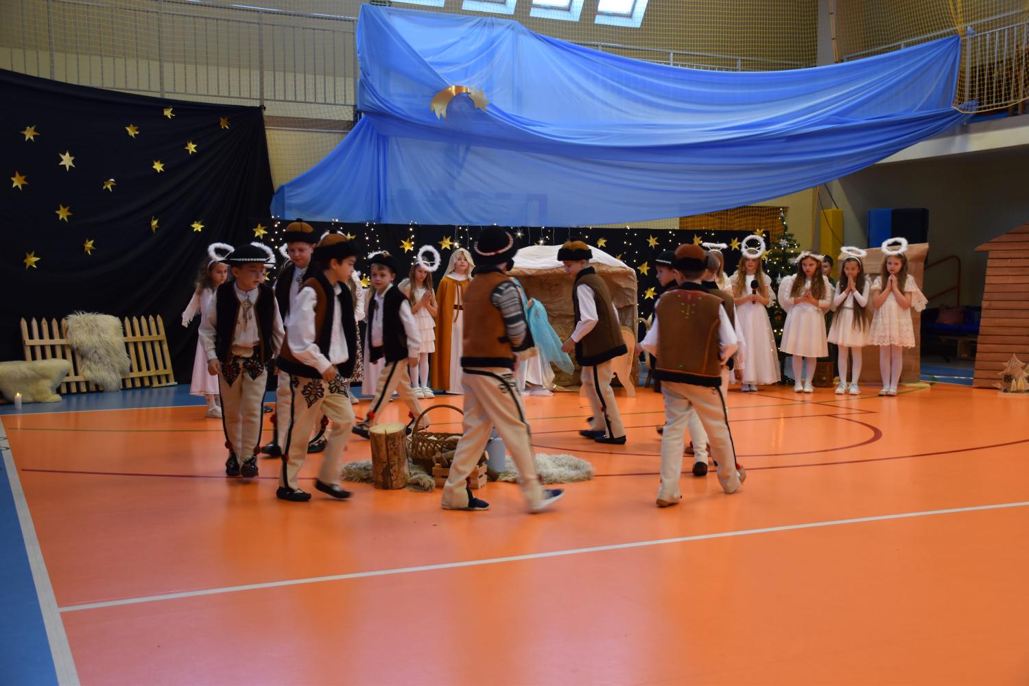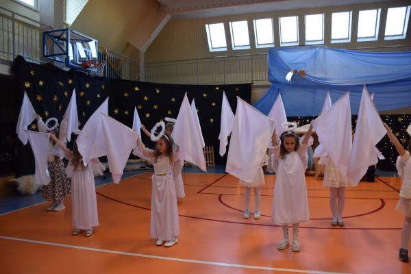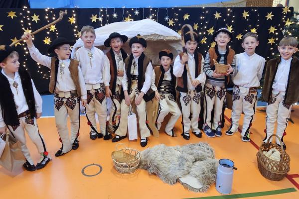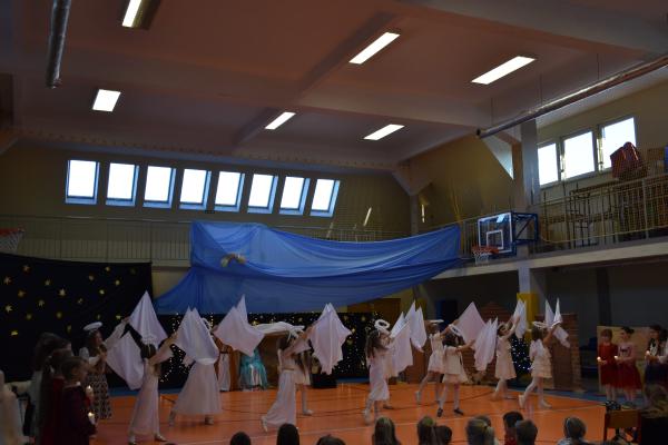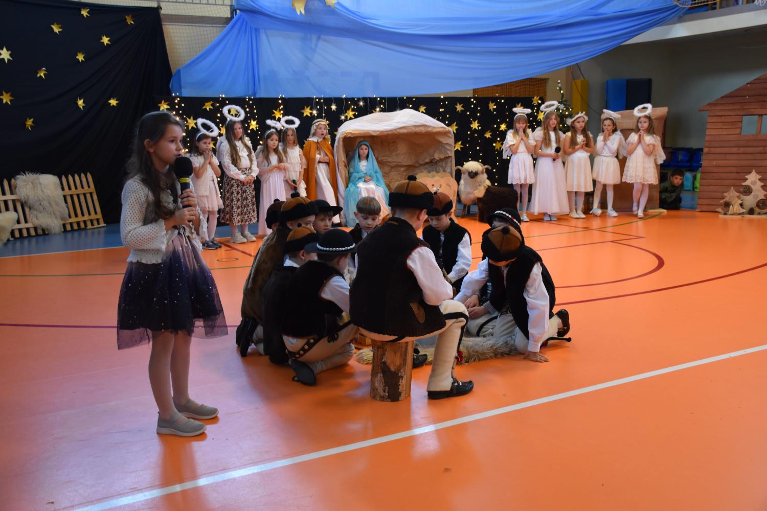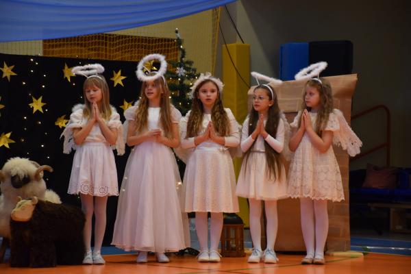 Uczniowie pięknie recytowali swoje kwestie, śpiewali kolędy i pastorałki, a całości dopełniała starannie przygotowana scenografia oraz świąteczne stroje. Aniołki i recytatorki zatańczyły nastrojowy taniec ze świecami, który wprowadził widzów w wyjątkowy, świąteczny nastrój. Z kolei pasterze zaprezentowali energiczny taniec zbójnicki, wzbudzając duży entuzjazm publiczności.