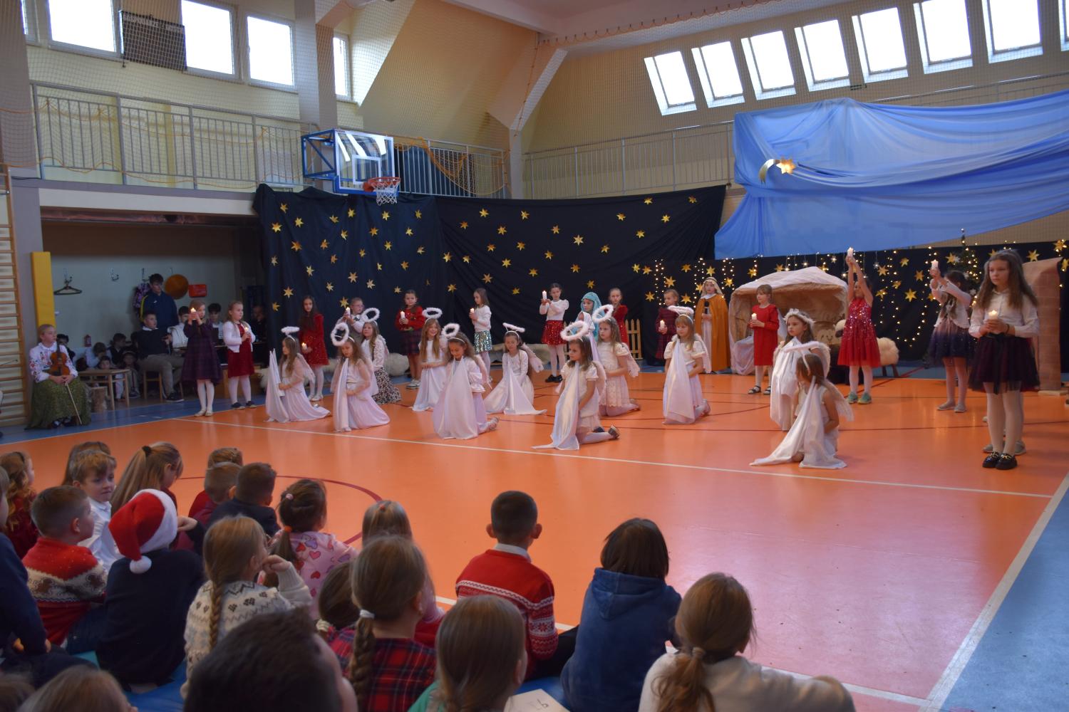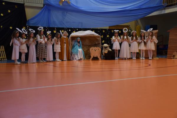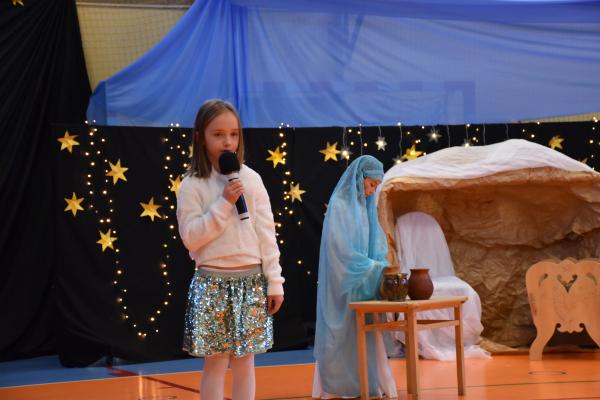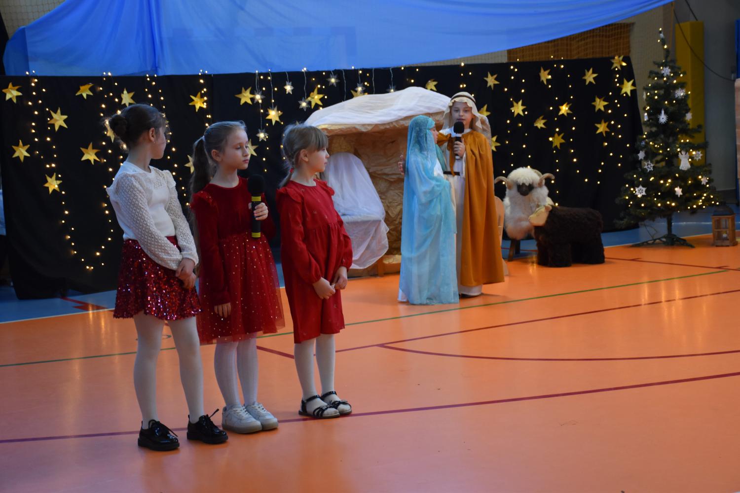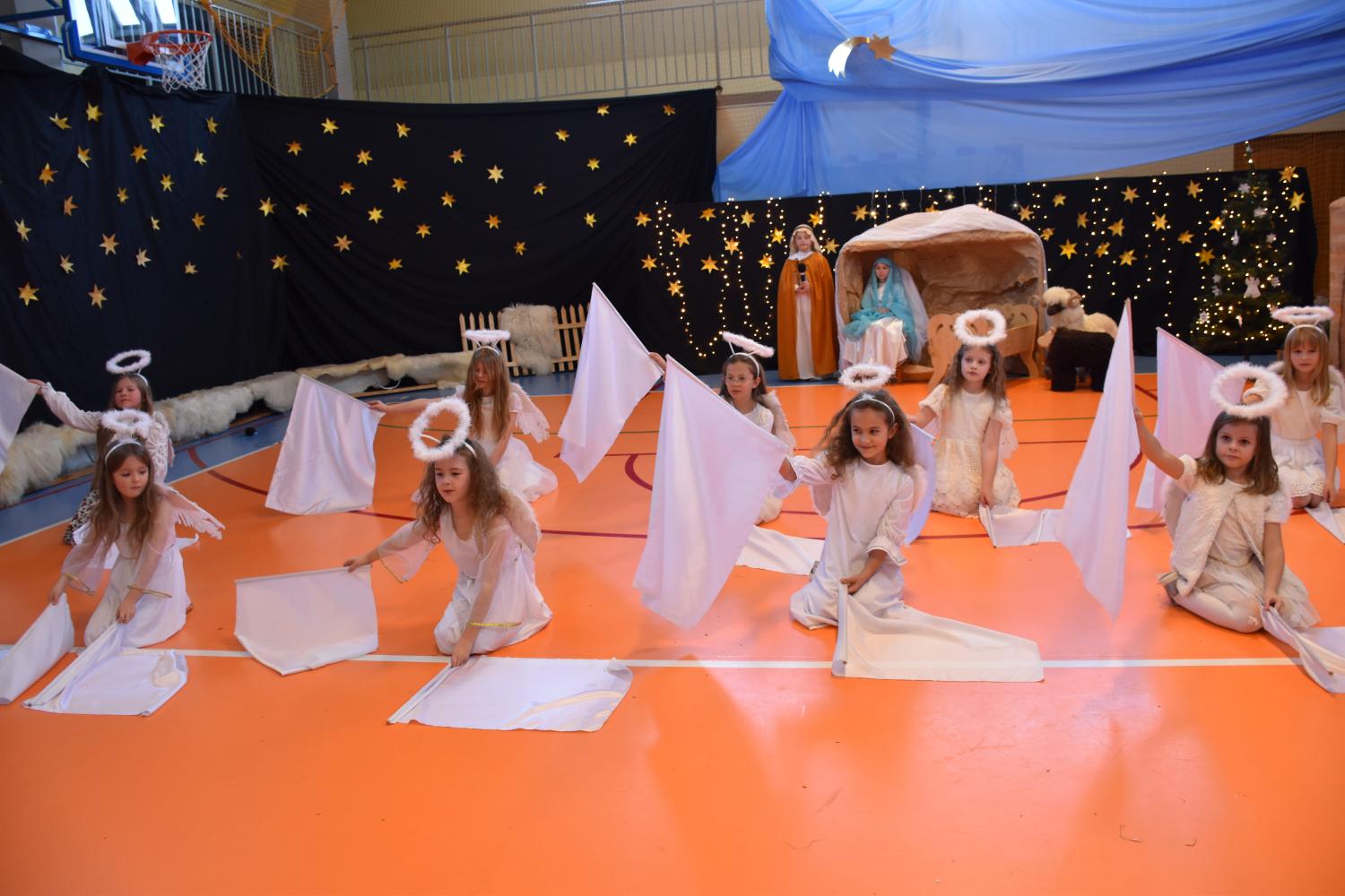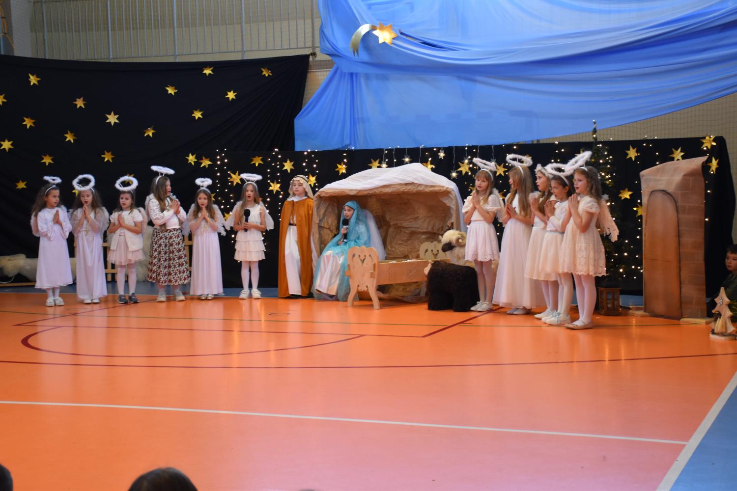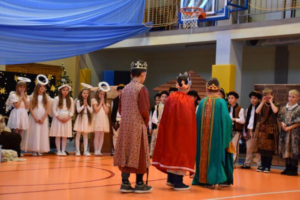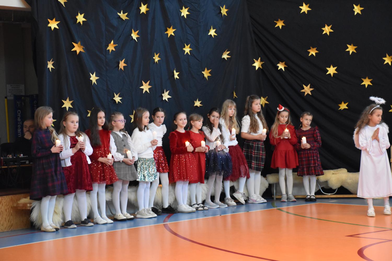 Uczniowie pięknie recytowali swoje kwestie, śpiewali kolędy i pastorałki, a całości dopełniała starannie przygotowana scenografia oraz świąteczne stroje. Aniołki i recytatorki zatańczyły nastrojowy taniec ze świecami, który wprowadził widzów w wyjątkowy, świąteczny nastrój. Z kolei pasterze zaprezentowali energiczny taniec zbójnicki, wzbudzając duży entuzjazm publiczności.
