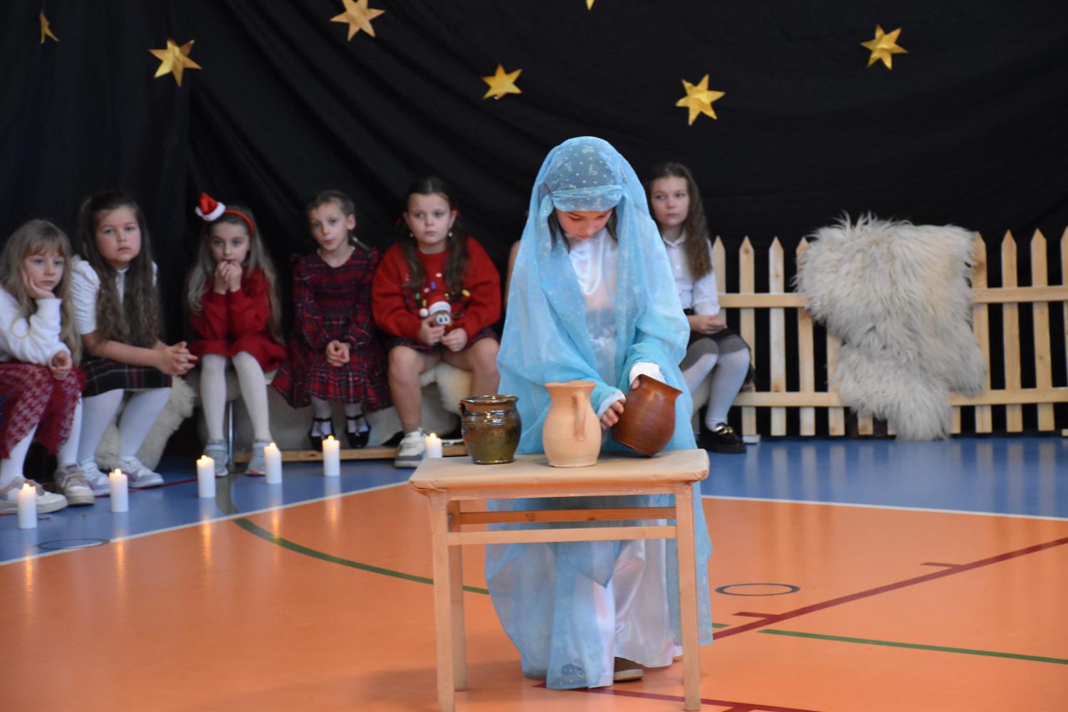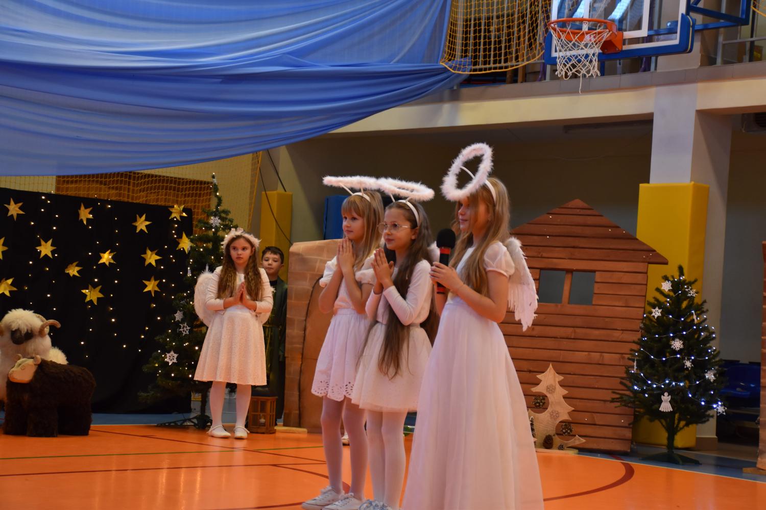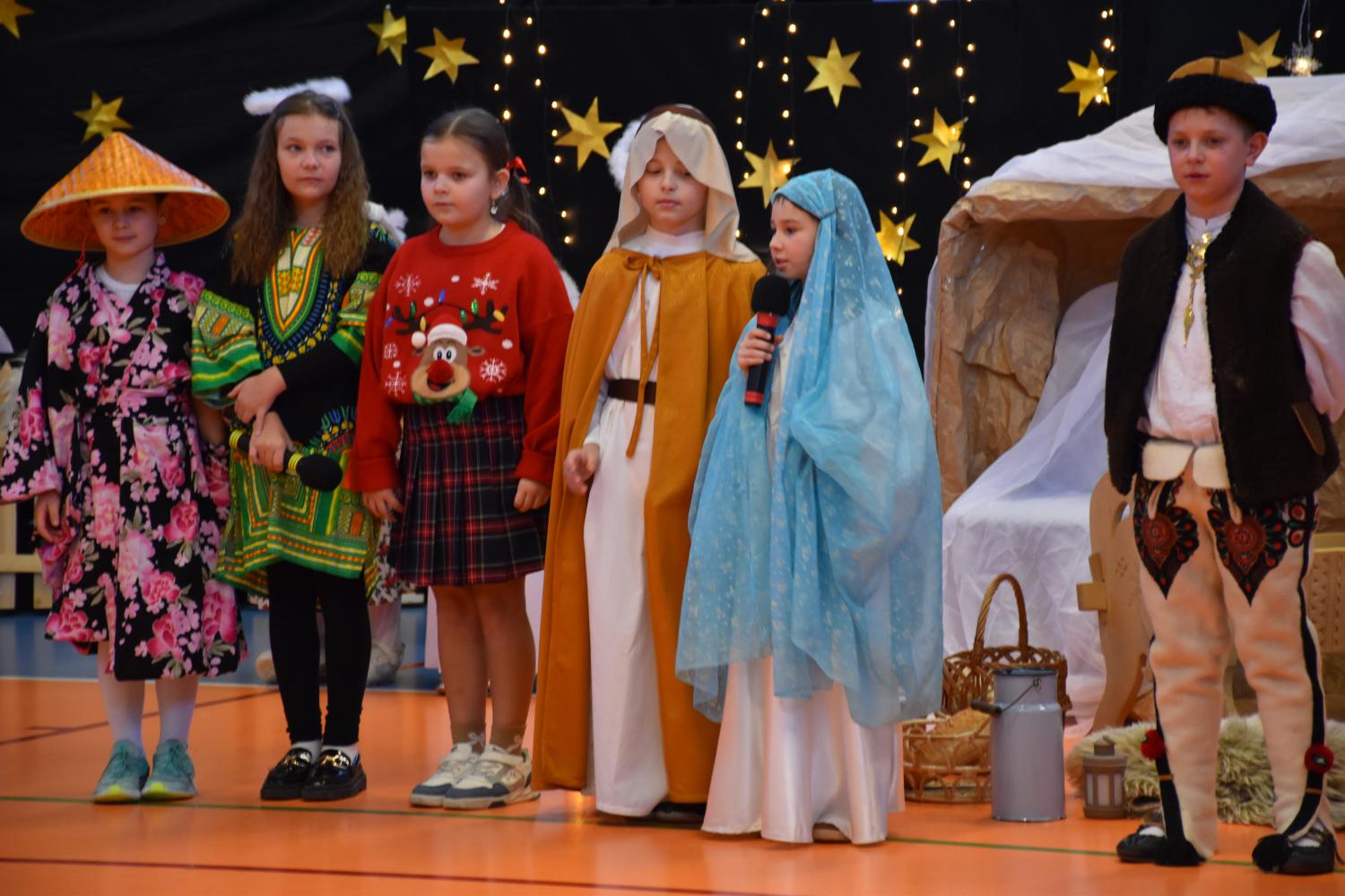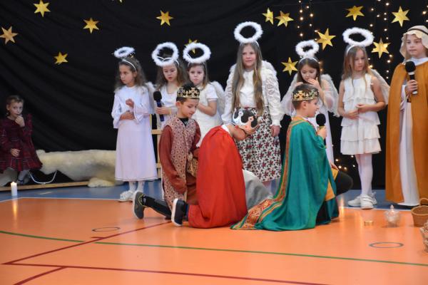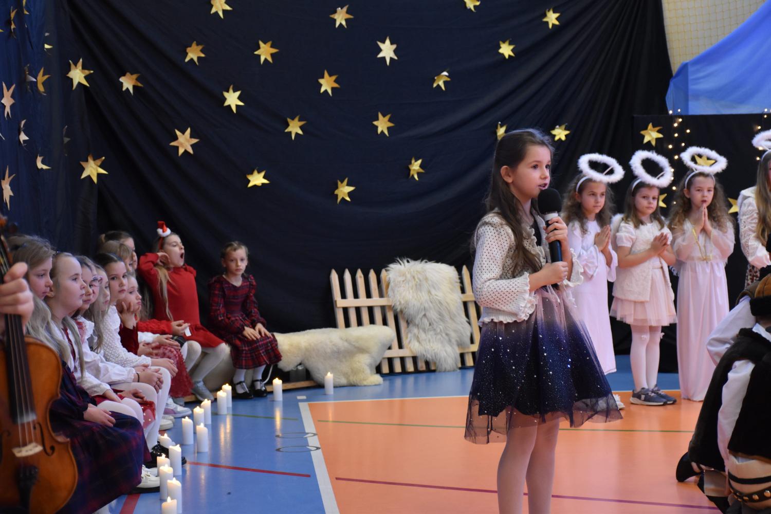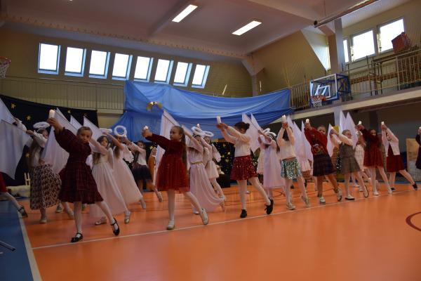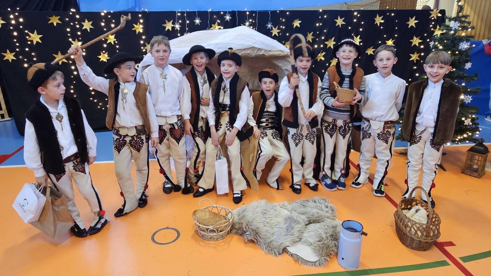 Uczniowie pięknie recytowali swoje kwestie, śpiewali kolędy i pastorałki, a całości dopełniała starannie przygotowana scenografia oraz świąteczne stroje. Aniołki i recytatorki zatańczyły nastrojowy taniec ze świecami, który wprowadził widzów w wyjątkowy, świąteczny nastrój. Z kolei pasterze zaprezentowali energiczny taniec zbójnicki, wzbudzając duży entuzjazm publiczności.